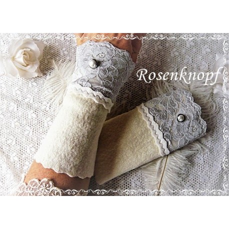 Akzente erhalten die Wollstulpen durch die elastische Spitze in Silbergrau und den Vintage Knopf.