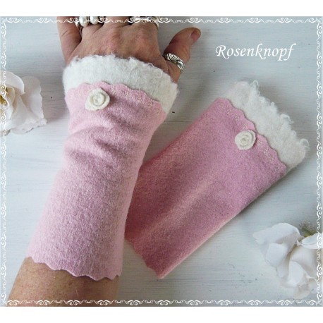 Wunderschöne und wärmende Pulswärmer/Walkstulpen für kühle Tage die aus hochwertigem Walk in zartem Rosa genäht wurden.