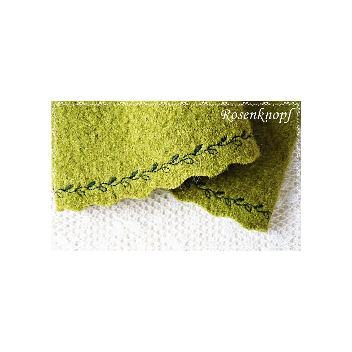 "GRÜNBAY" wurden aus hochwertigem Walk in Hellgrün/Grasgrün gefertigt.