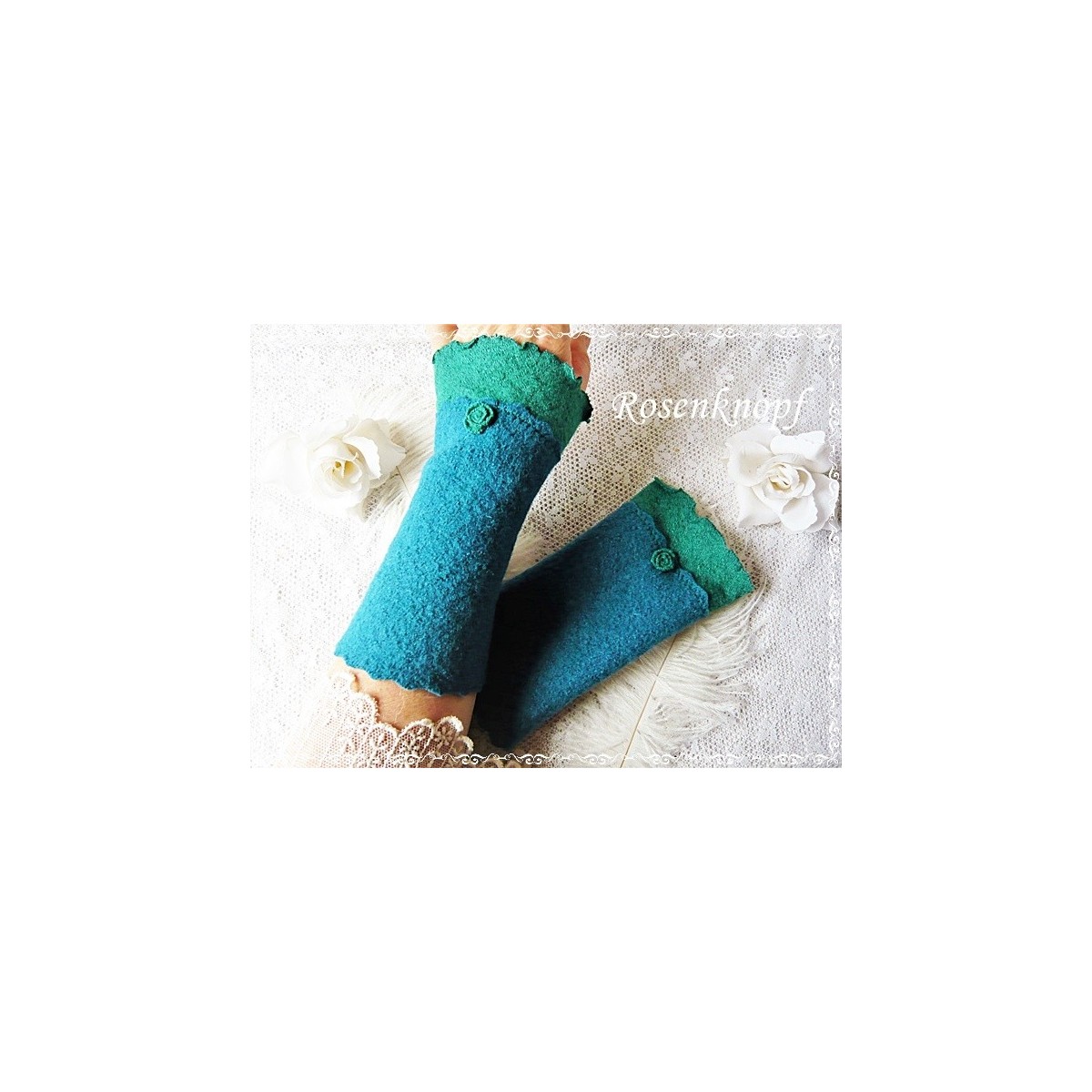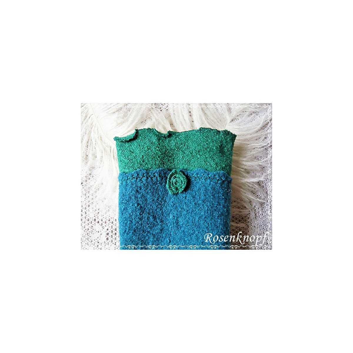 "BLAUPY" wurden aus Walk in dunklem Türkis/Petrol und Smaragdgrün gefertigt und mit einer von mir handgefertigten Walkrose verziert.