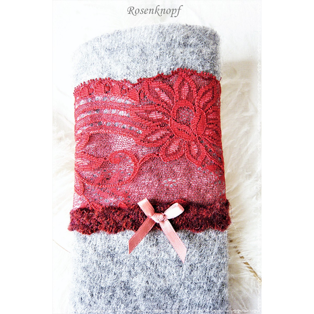 - Material: 100% Wolle, Spitze 92%Polyester, 8%Elasthan, Satinschleife 80%Polyester, 20%Viscose