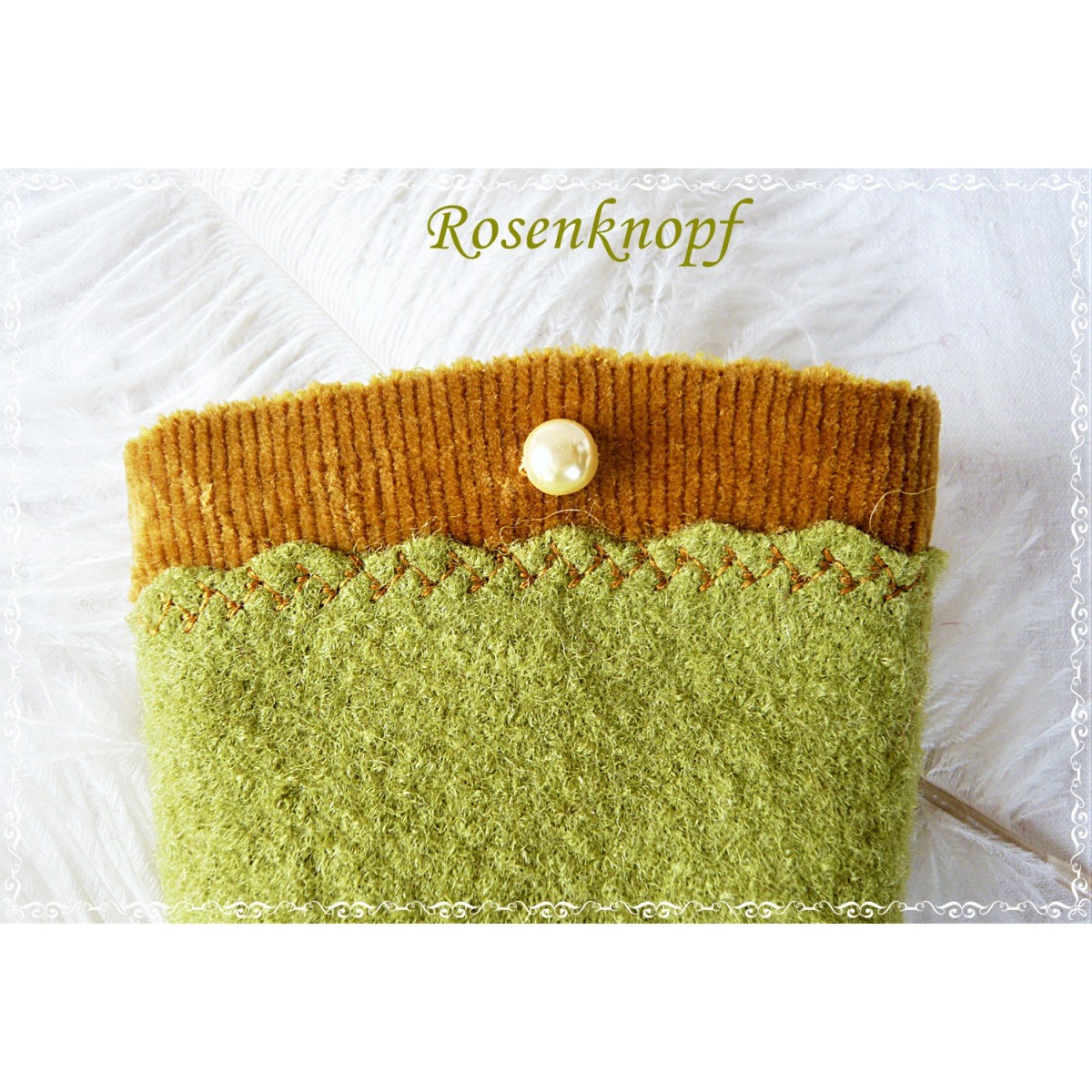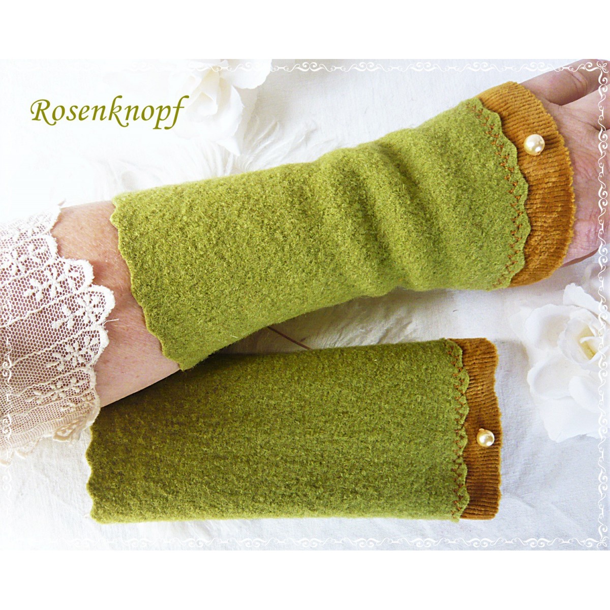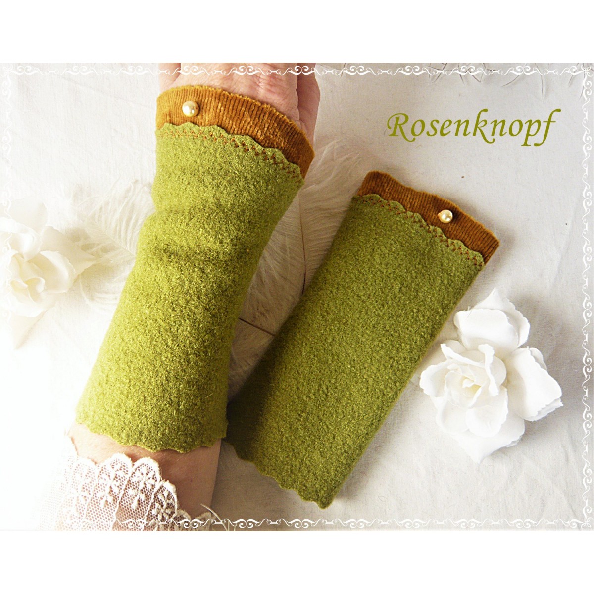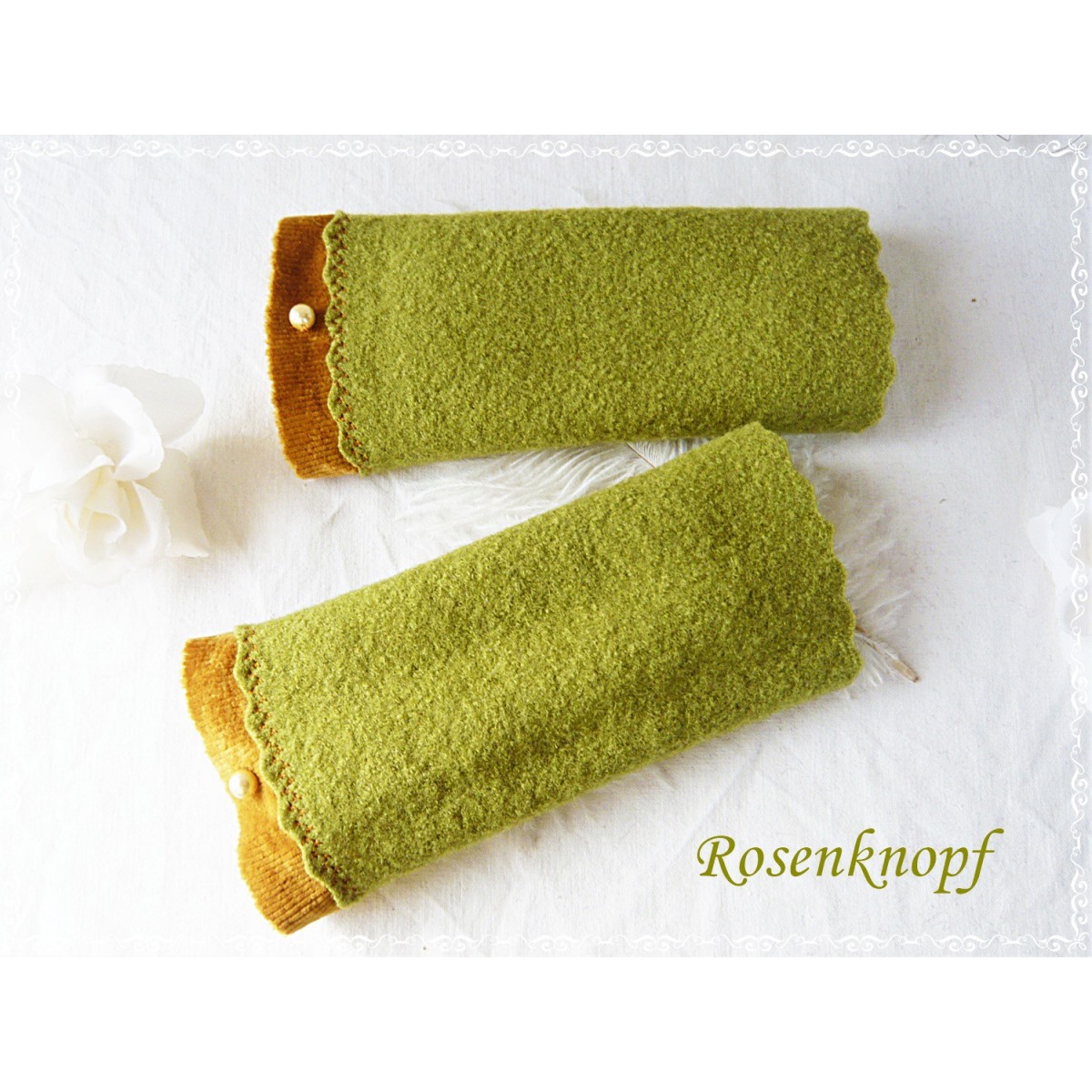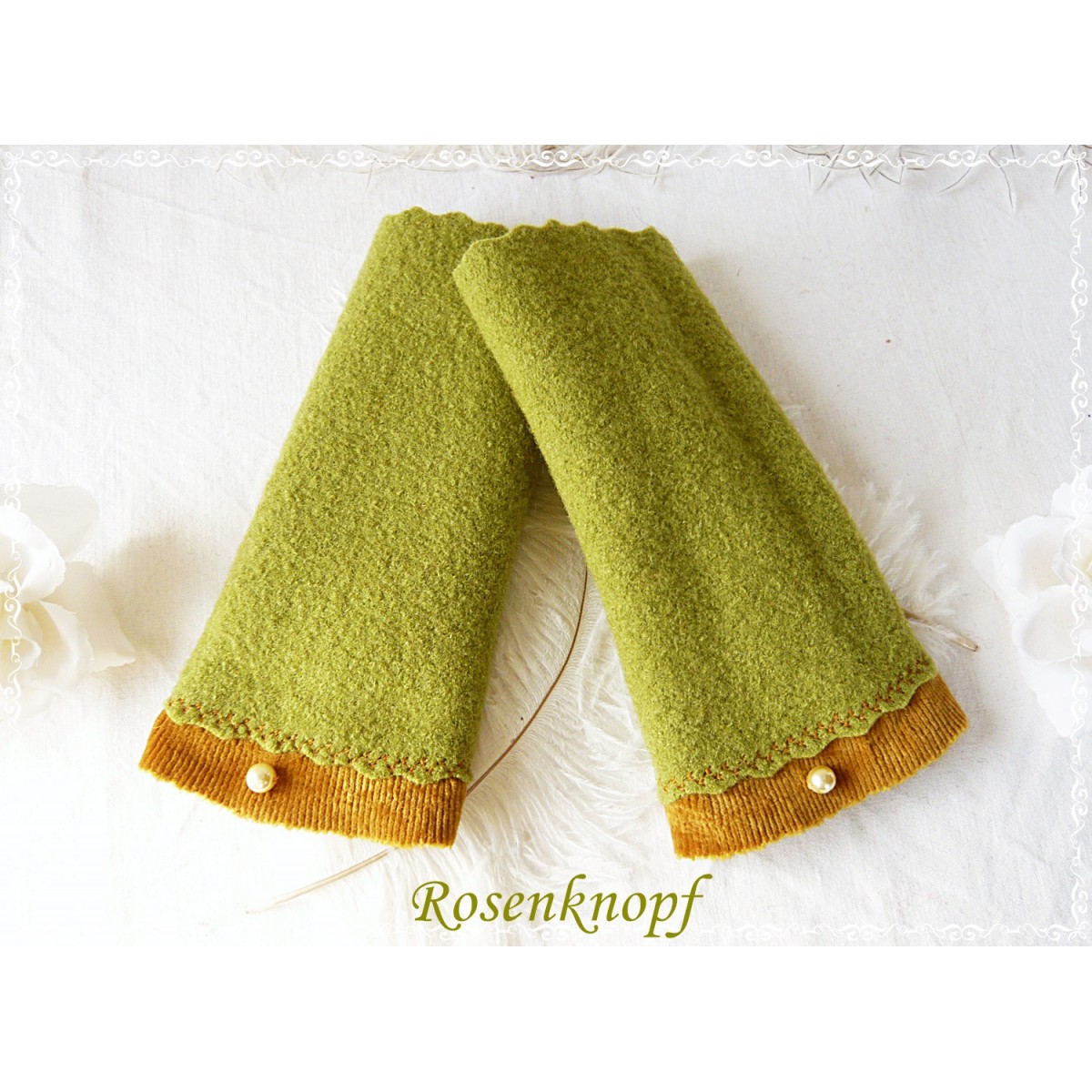 Elegante und wärmende Walkstulpen für kühle Tage und wurden aus hochwertigem Wollwalk in hellem Grün gefertigt.