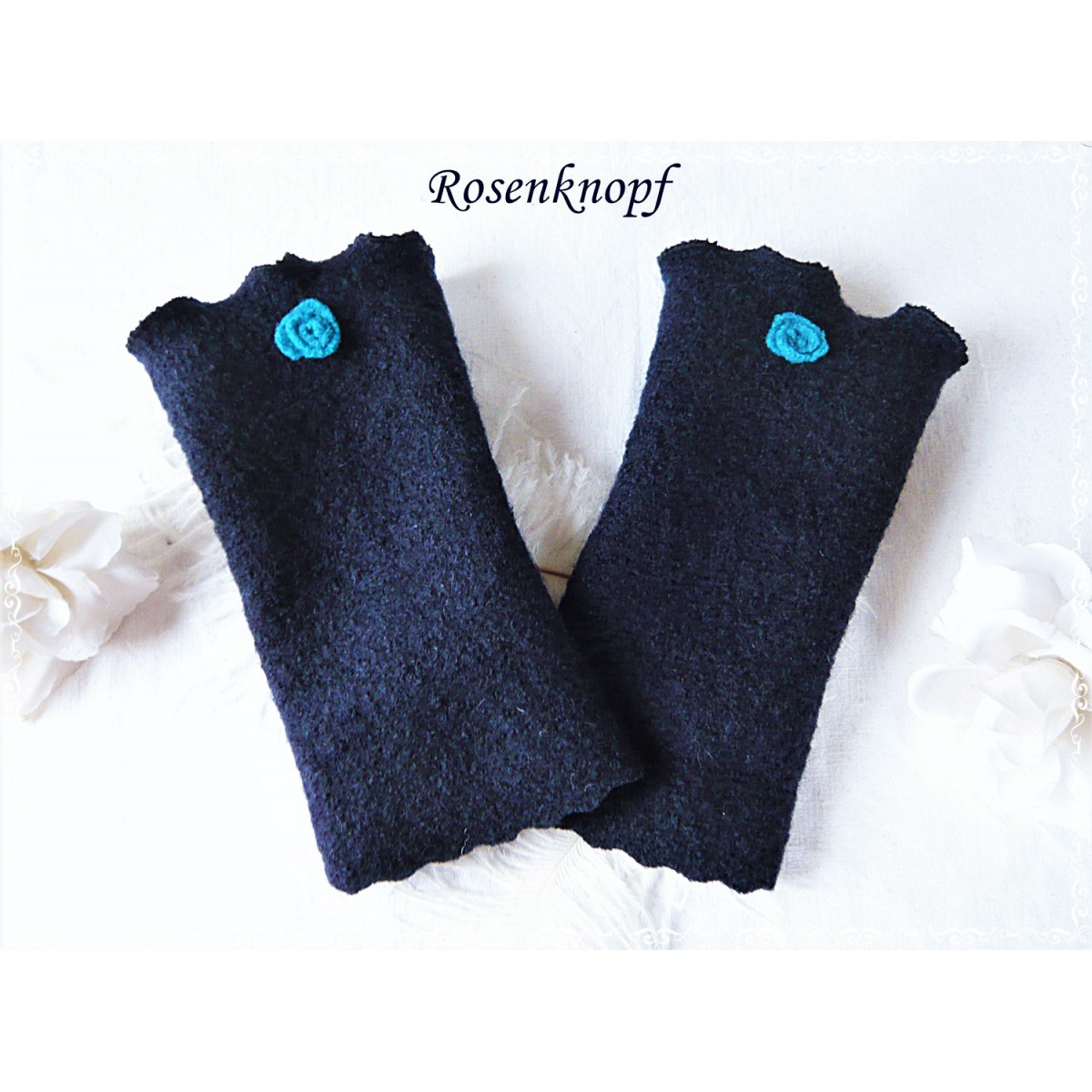 "YOSA" sind elegante Walkstulpen für kühle Tage und wurden aus hochwertigem Walk in Nachtblau gefertigt.