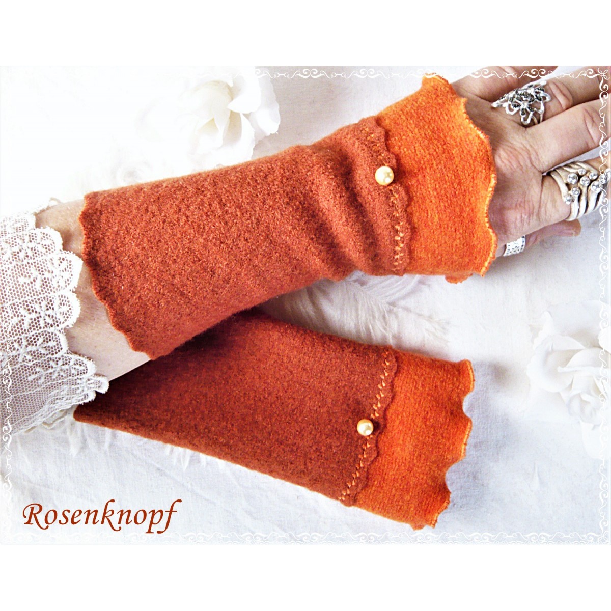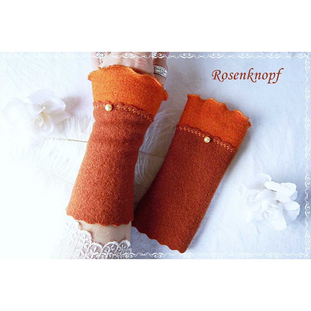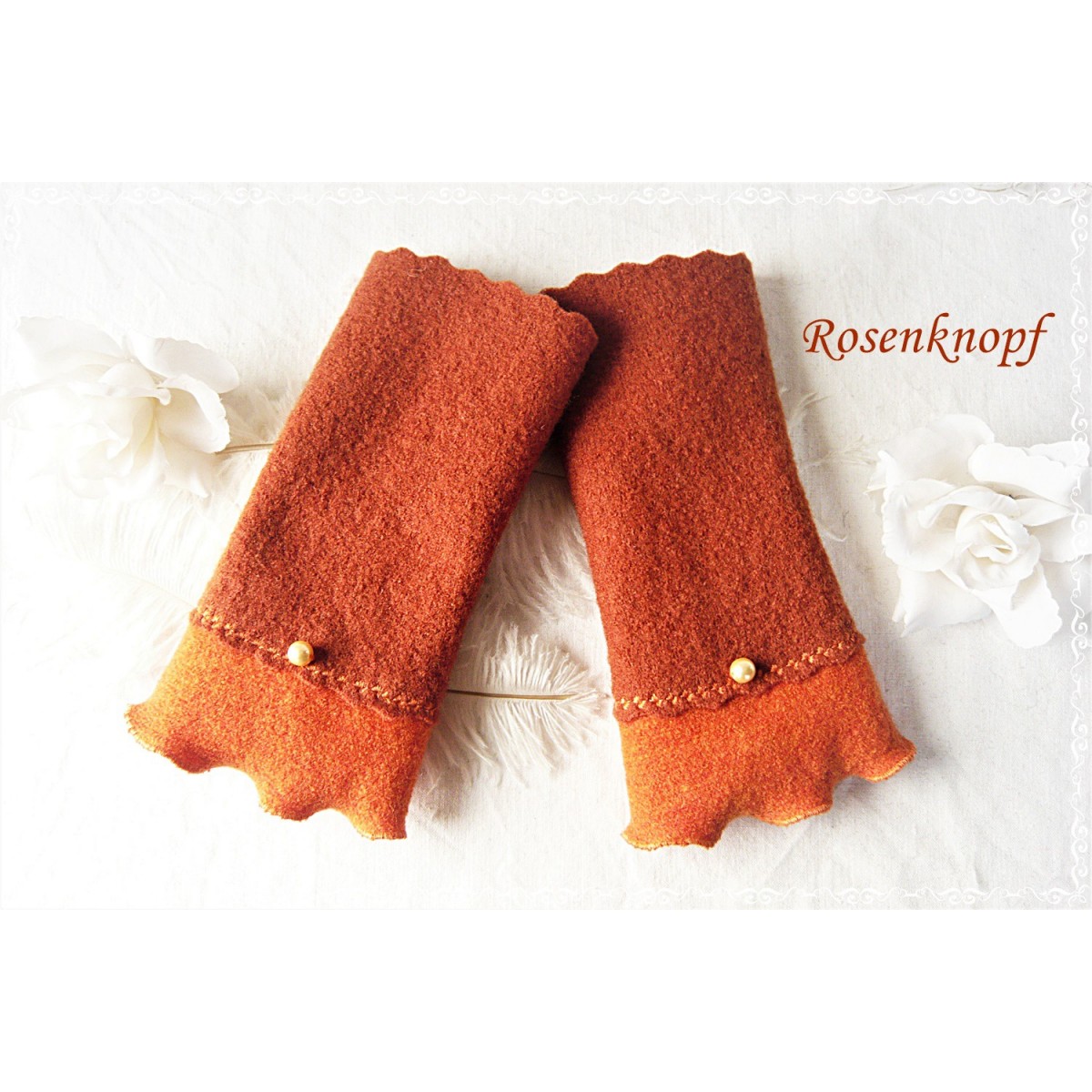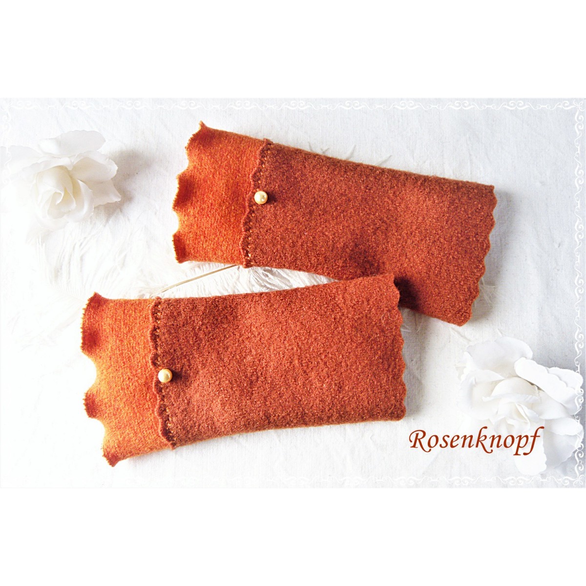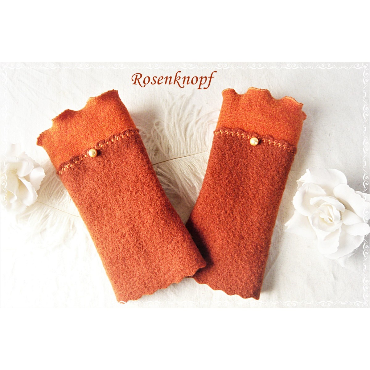 Zeitlose und wärmende Walkstulpen für kühle Tage aus hochwertigen, feinem Walk in in Rostbraun und Orange.