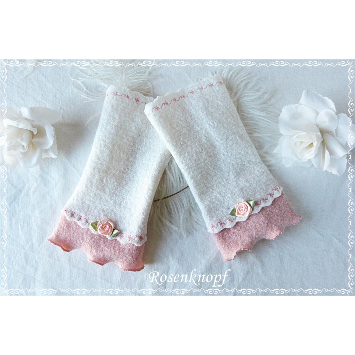 lll➤ Armstulpen, Pulswärmer aus Walk in Ivory und Apricot zur Hochzeit.