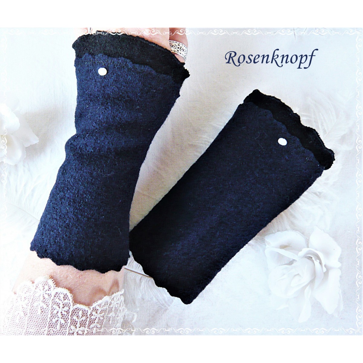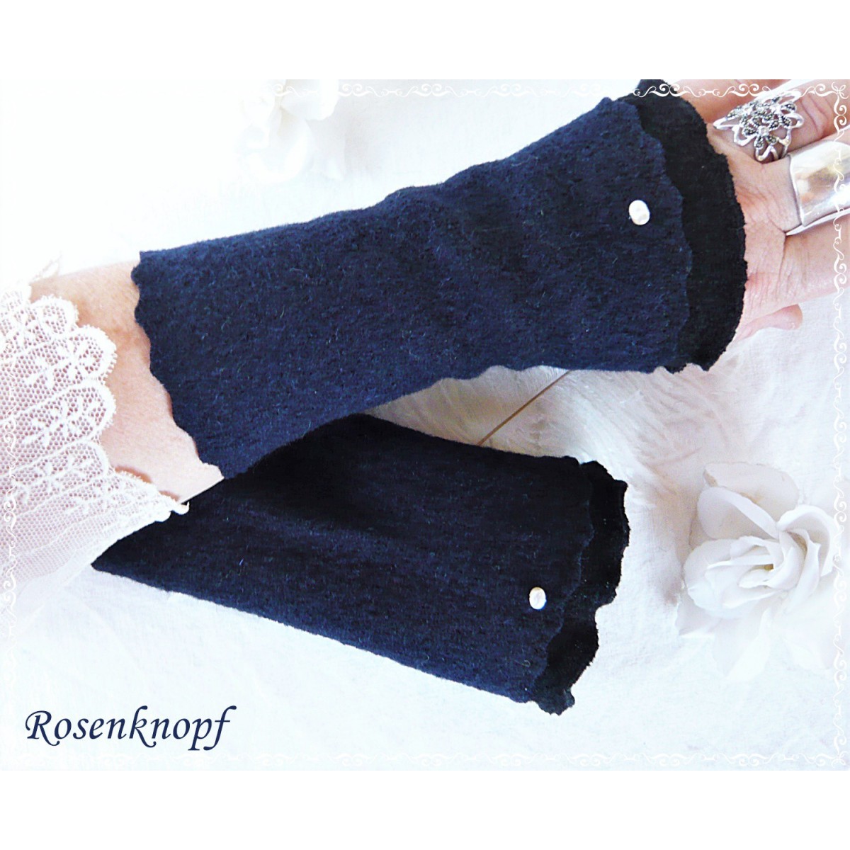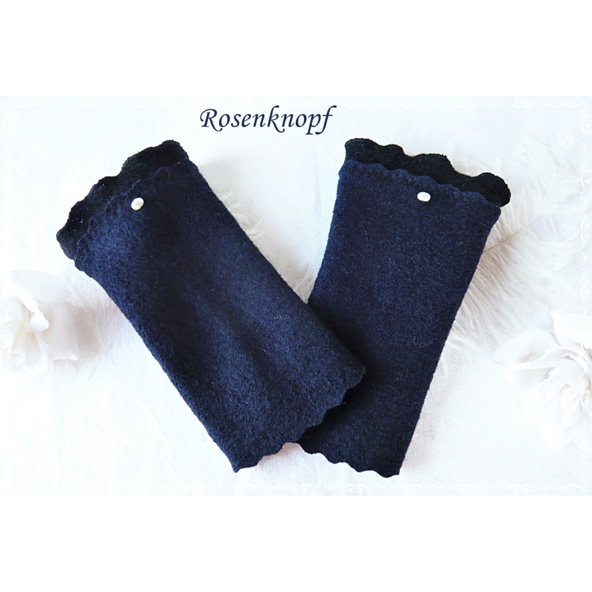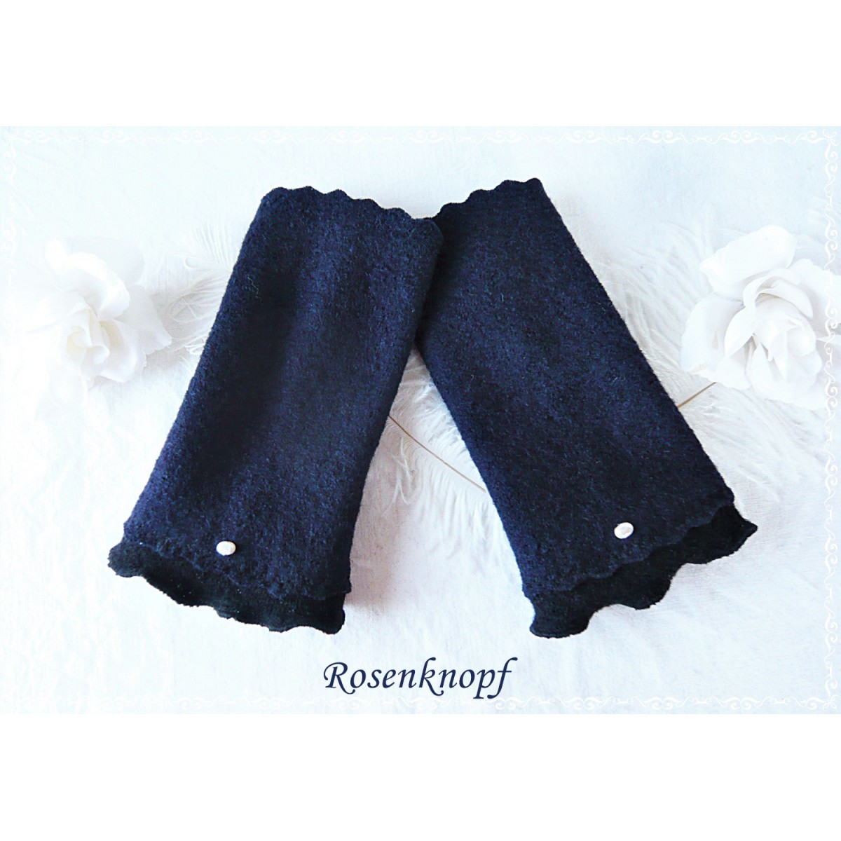 Elegante und zeitlose Walkstulpen für kühle Tage die aus hochwertigem Walk in Nachtblau gefertigt wurden.