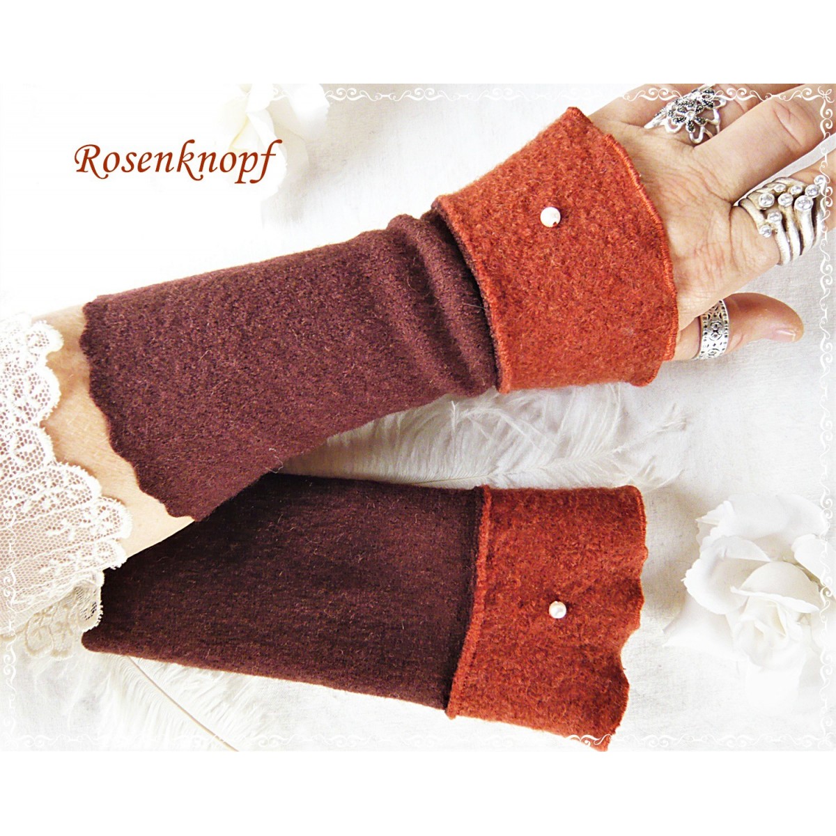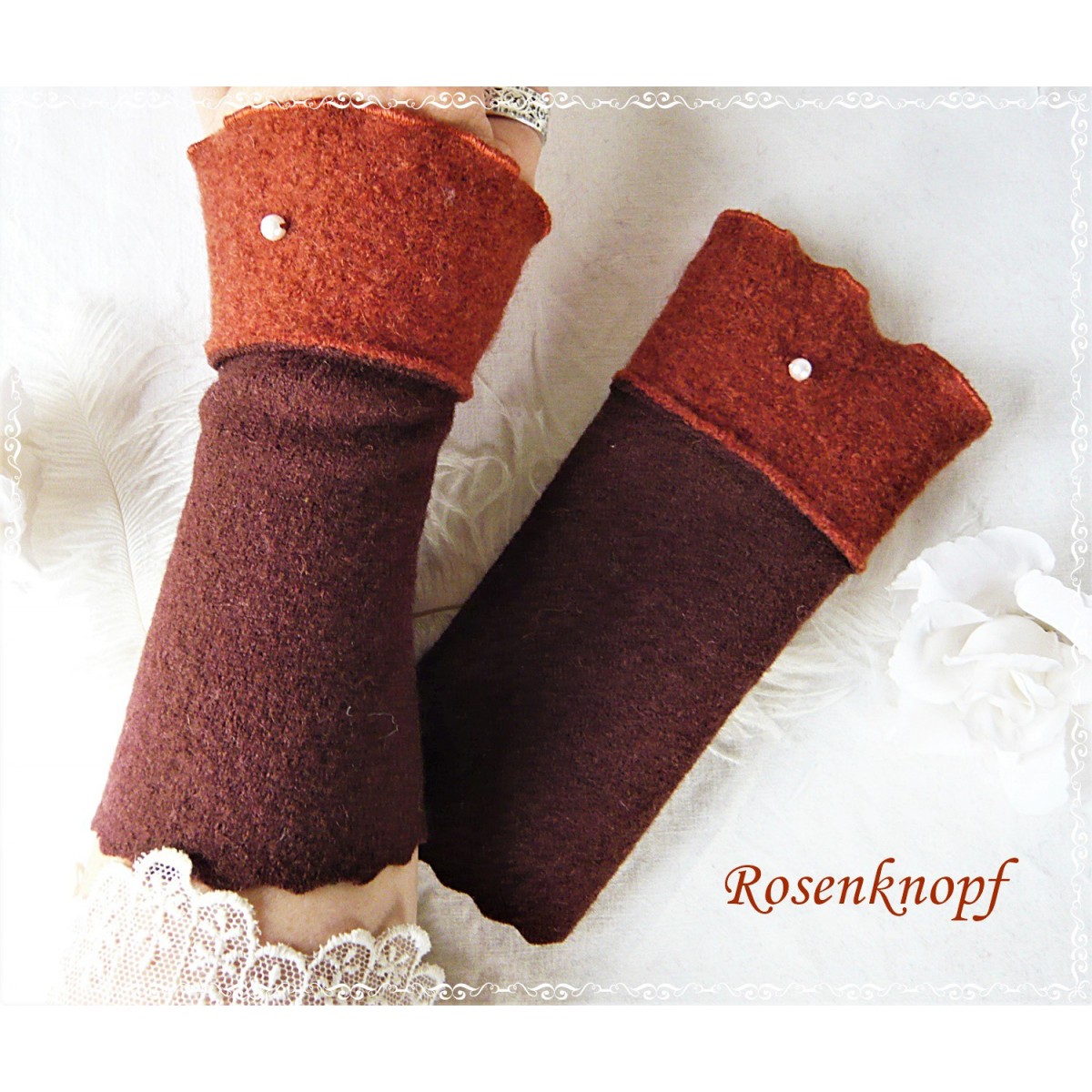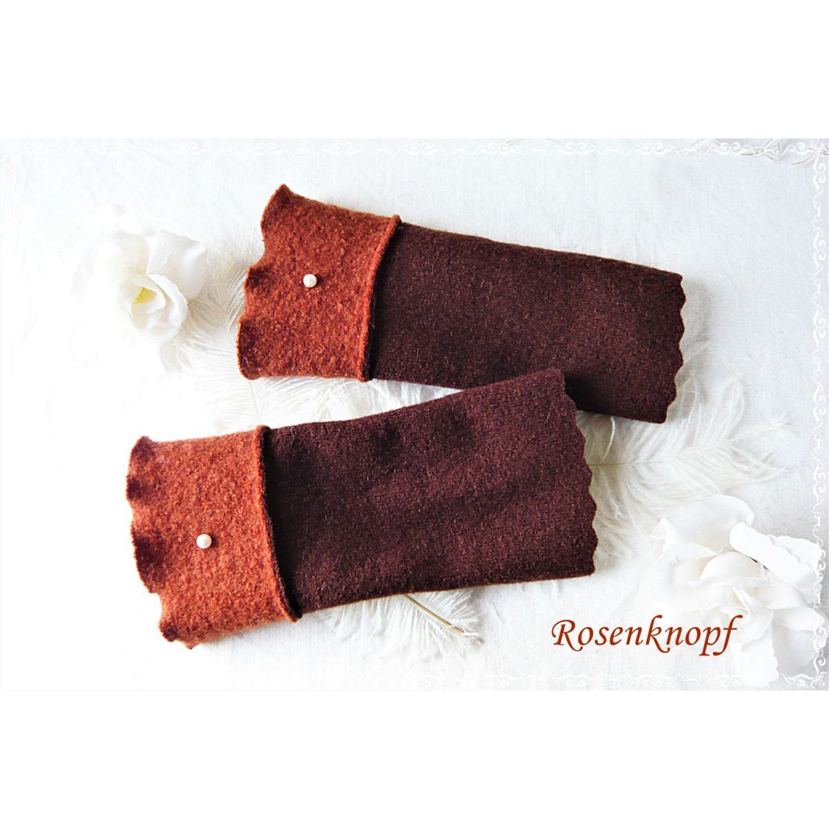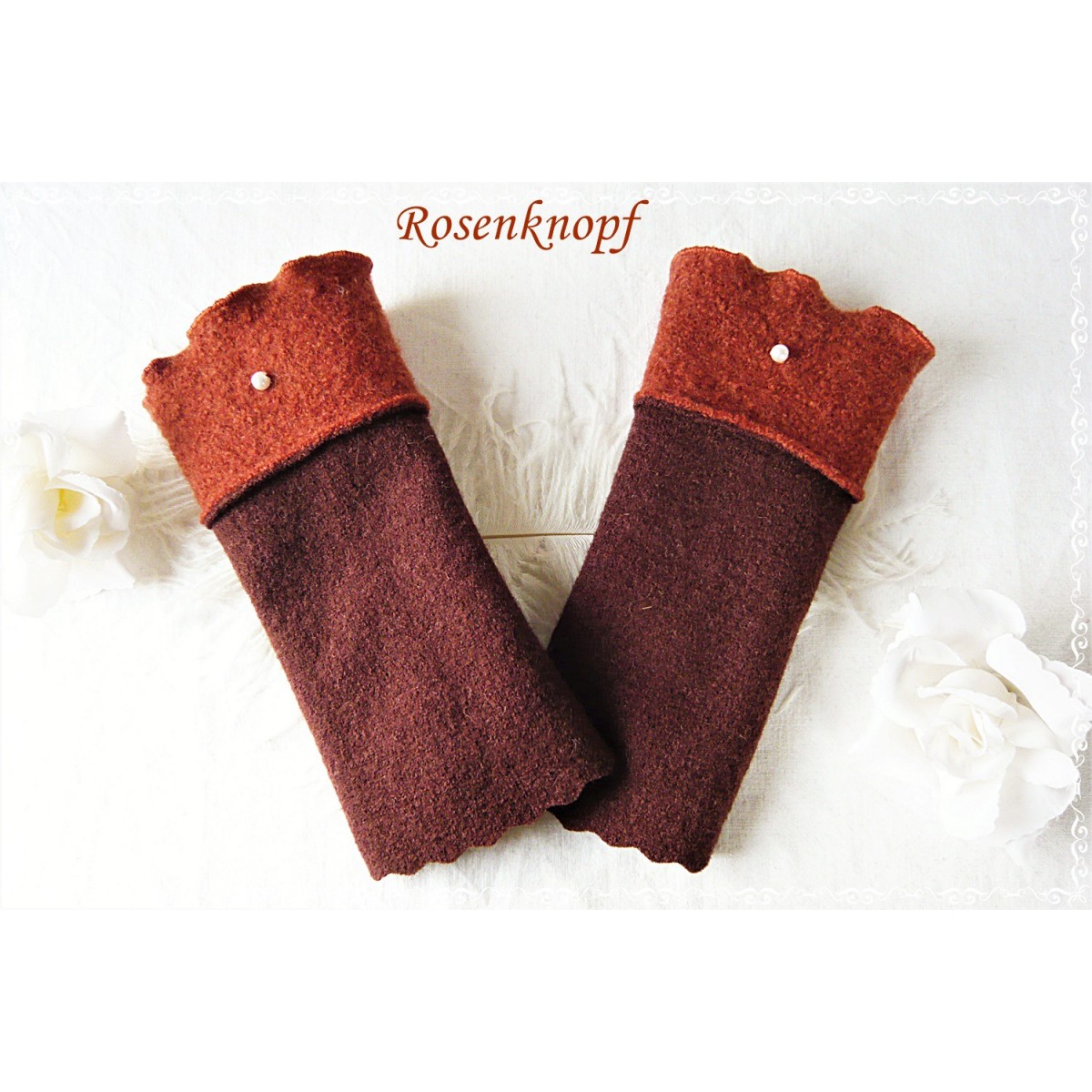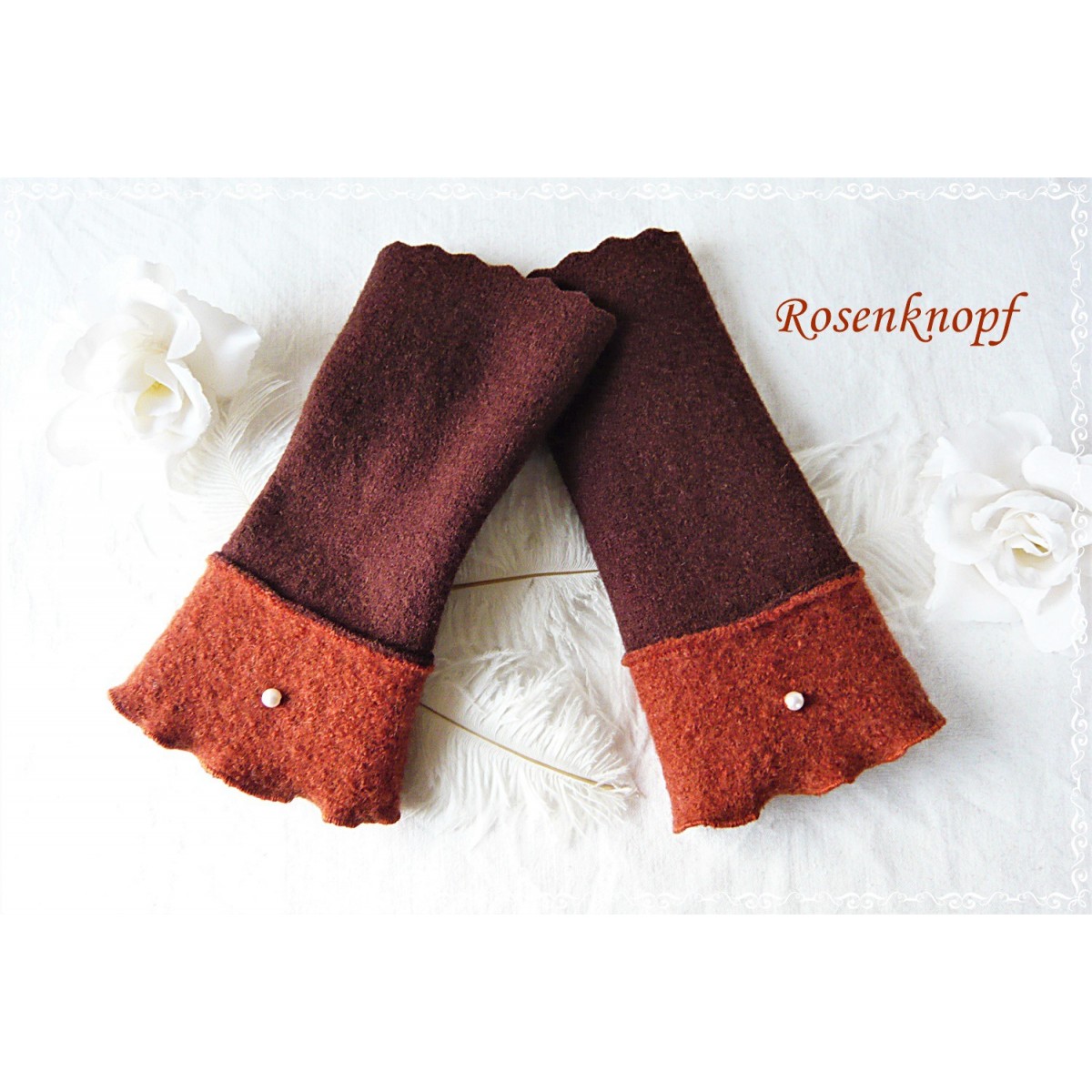 Elegante und wärmende Walkstulpen für kühle Tage die aus hochwertigem Wollwalk in Braun gefertigt wurden.