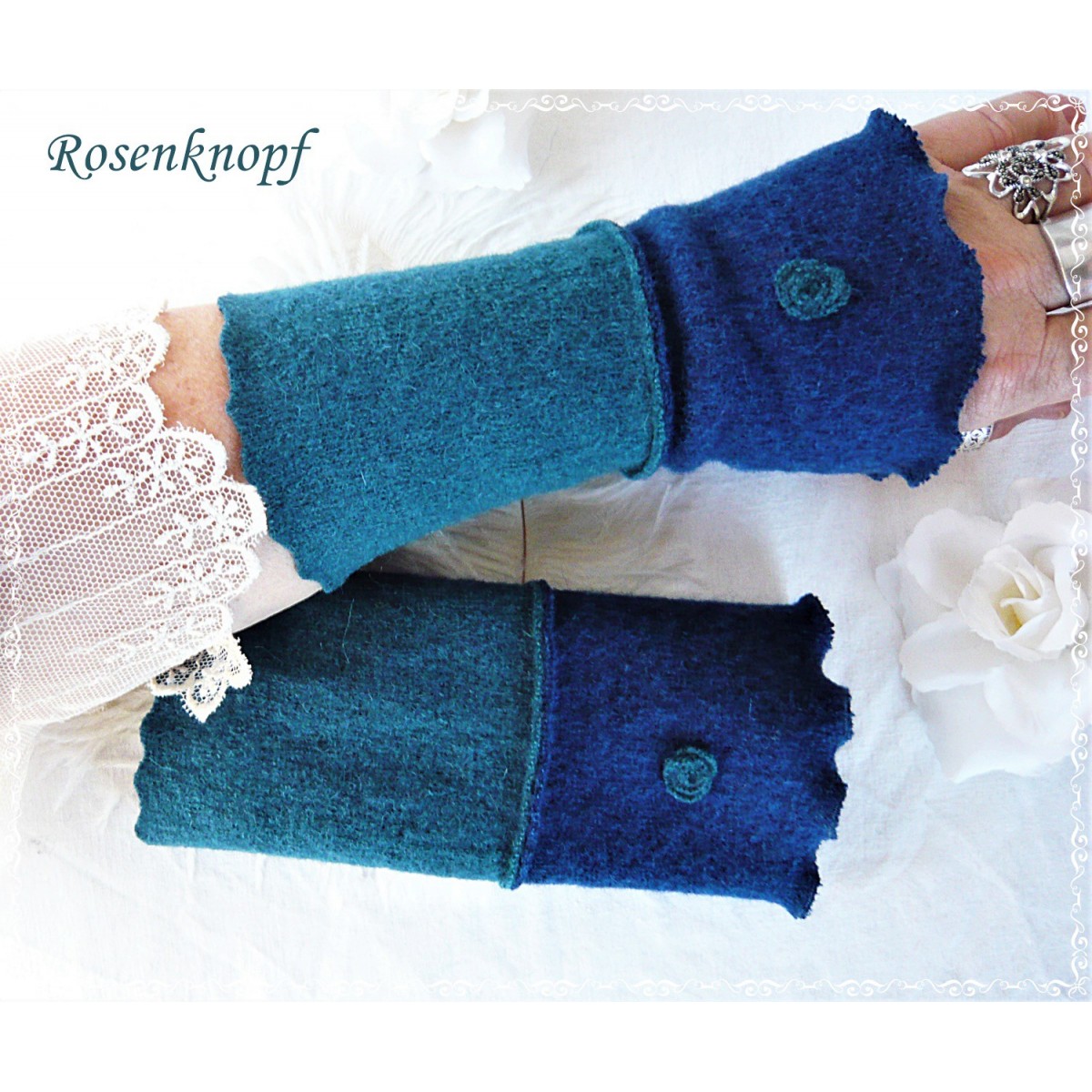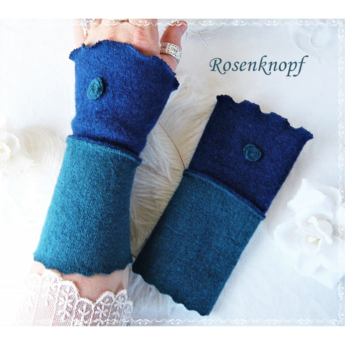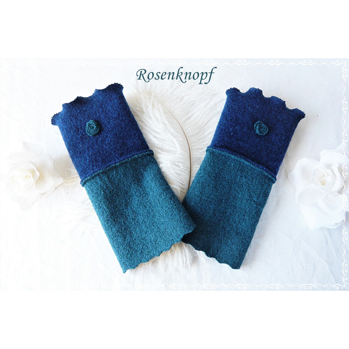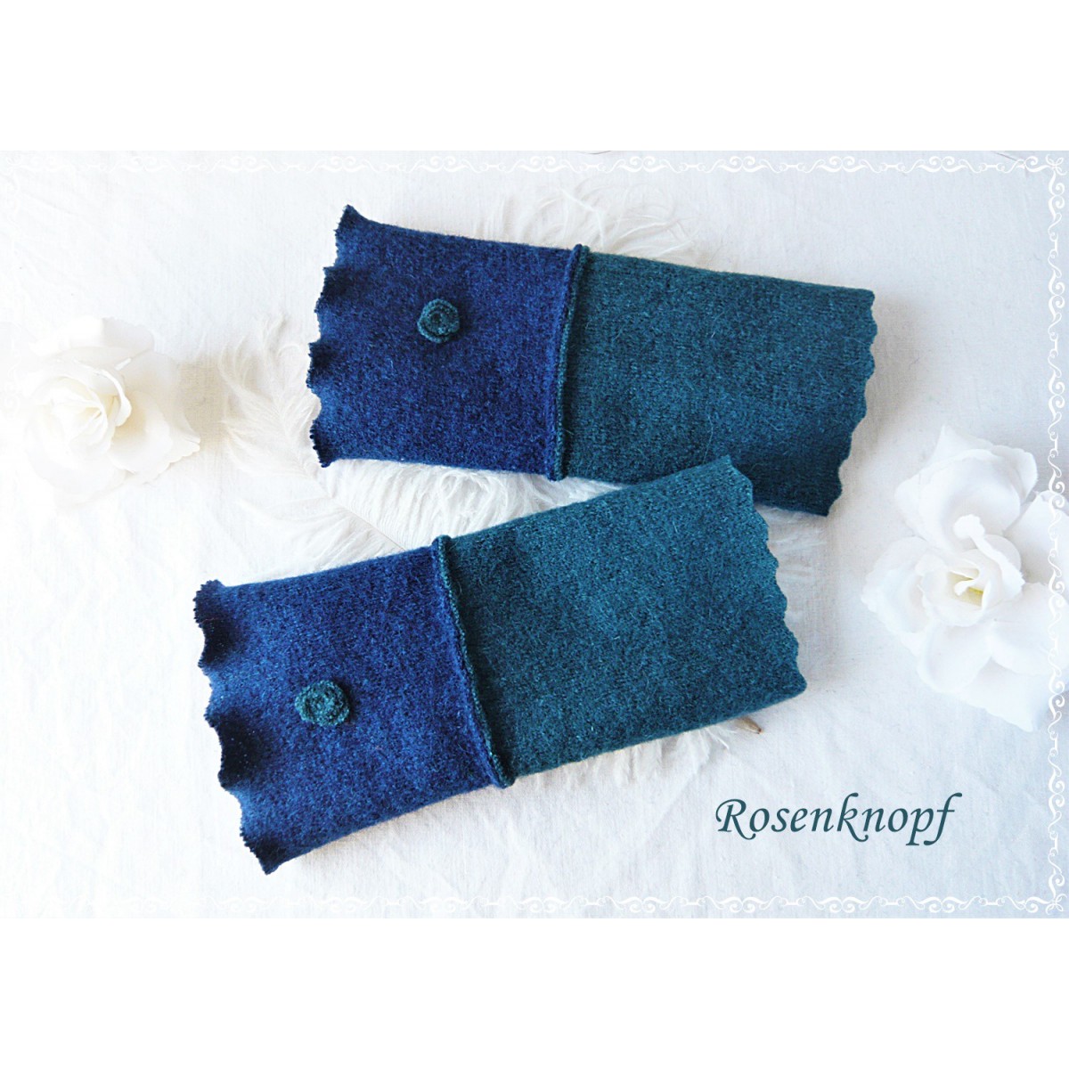 Alltagstaugliche Walkstulpen für kühle Tage aus hochwertigem Walk in Dunkelblau und Petrol.