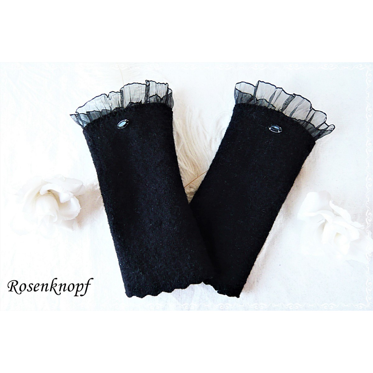 Elegante Walkstulpen für kühle Tage aus hochwertigem Walk in Schwarz.