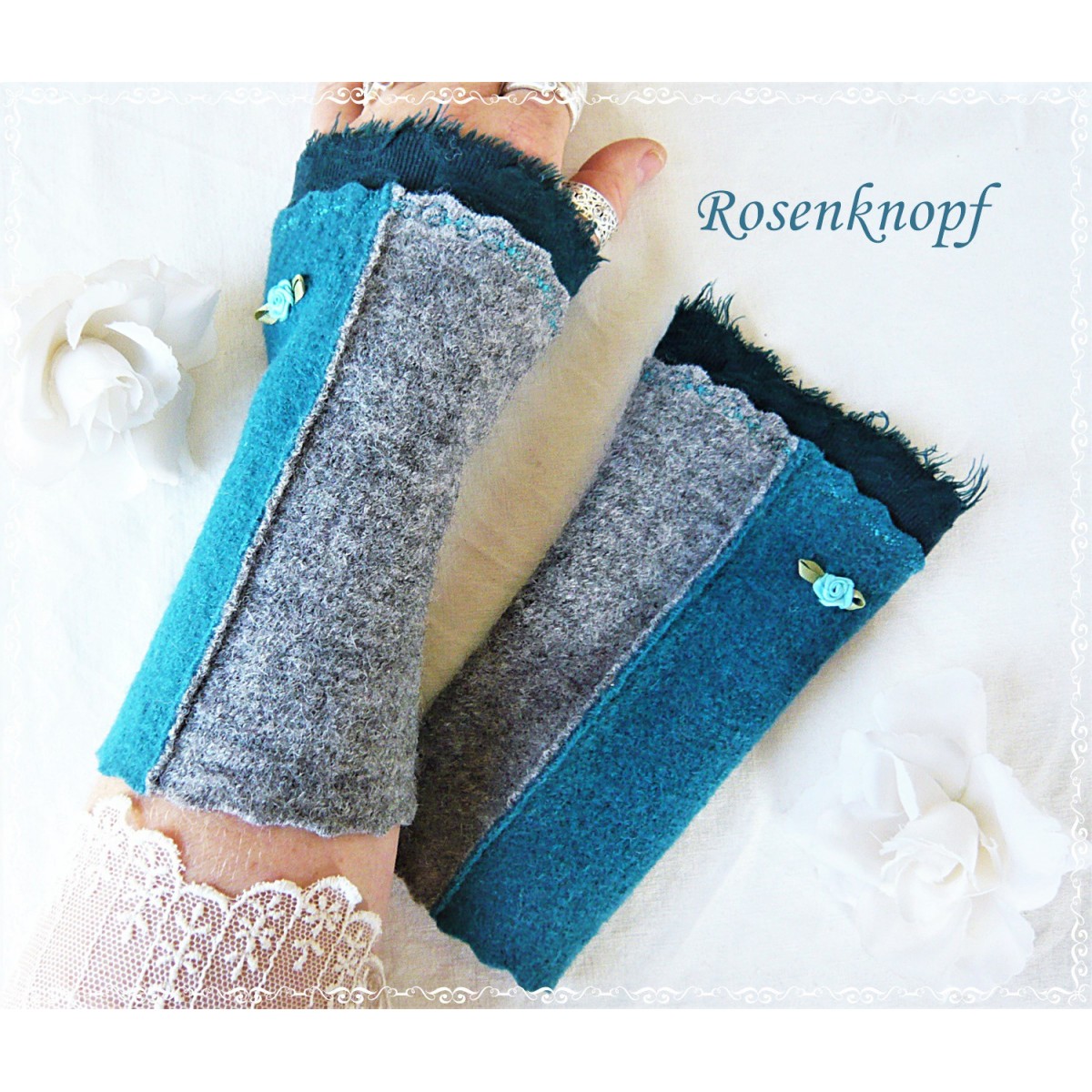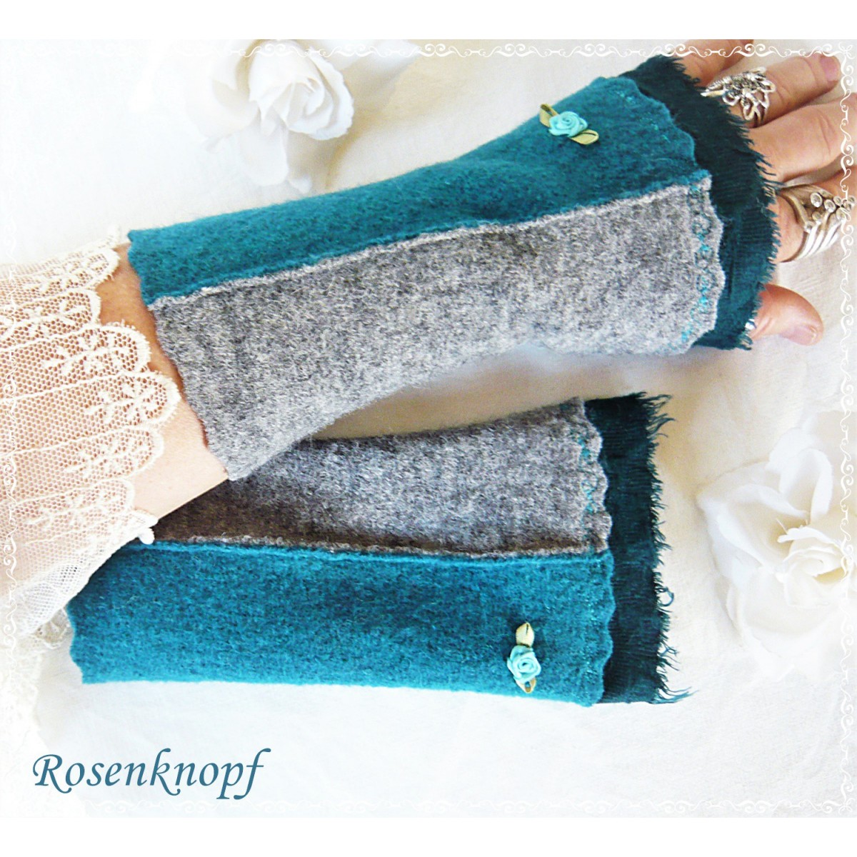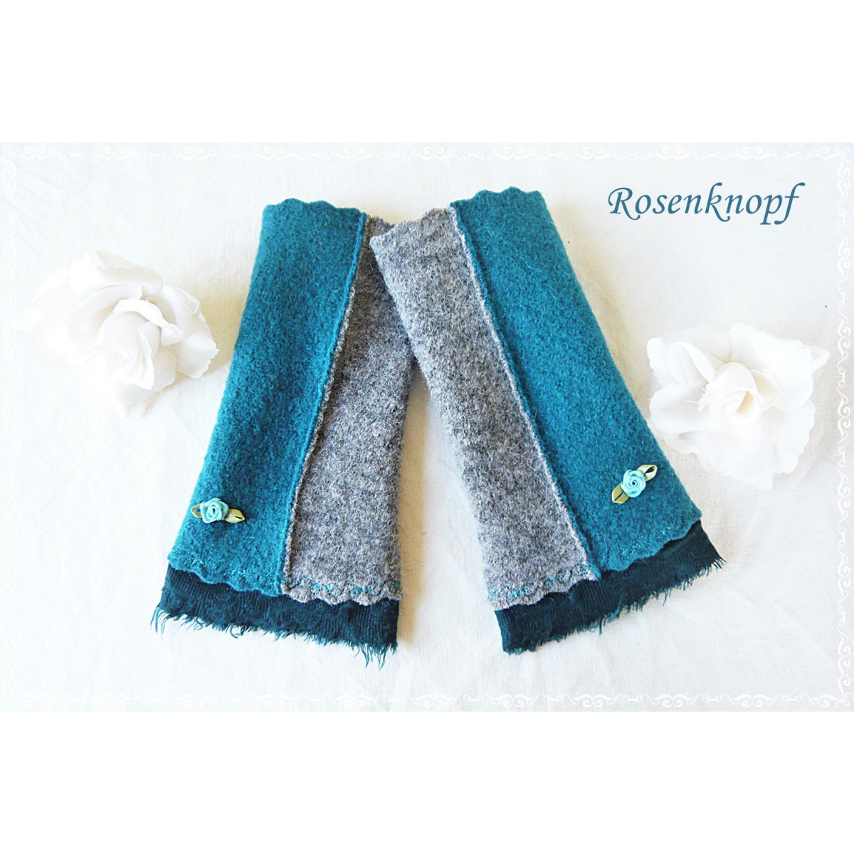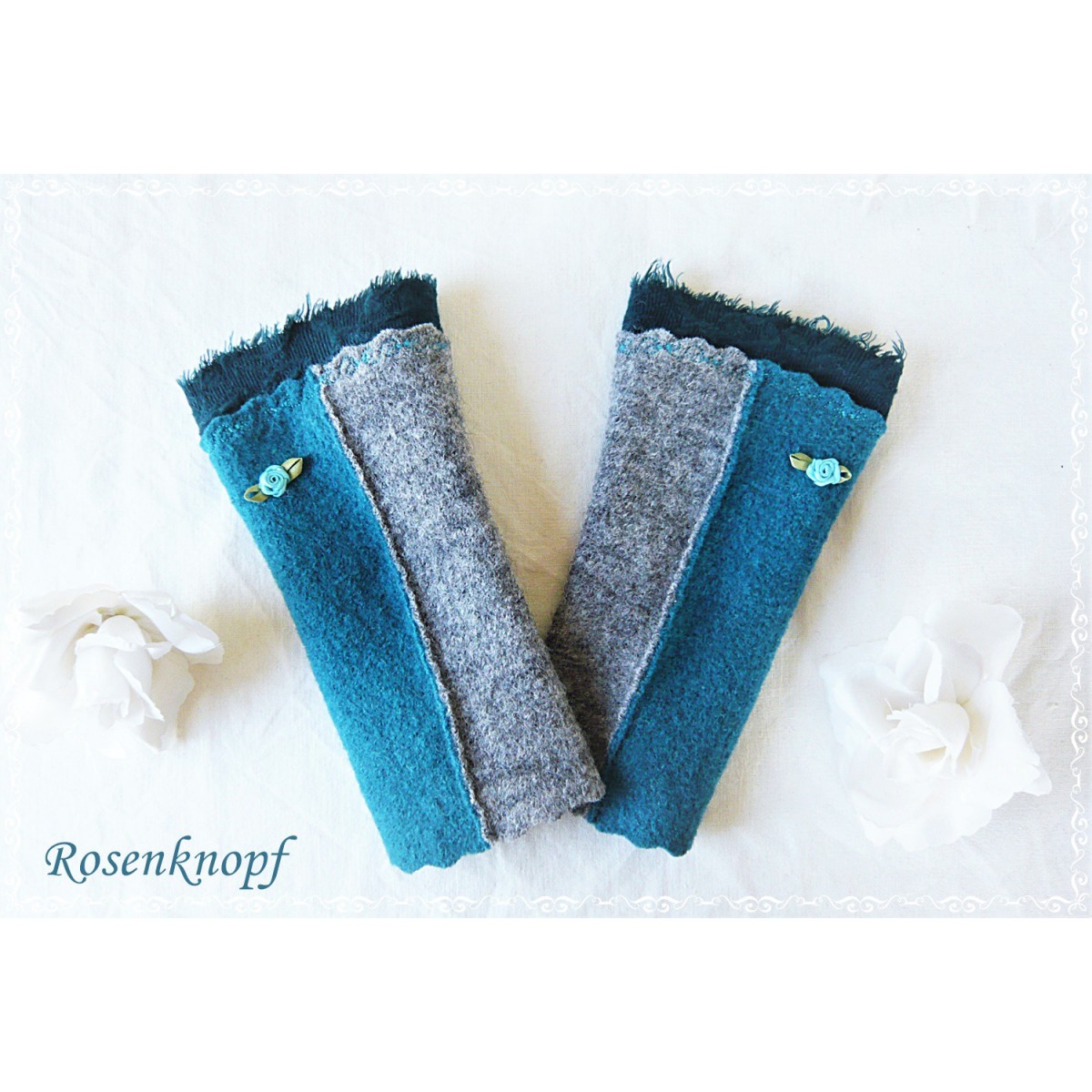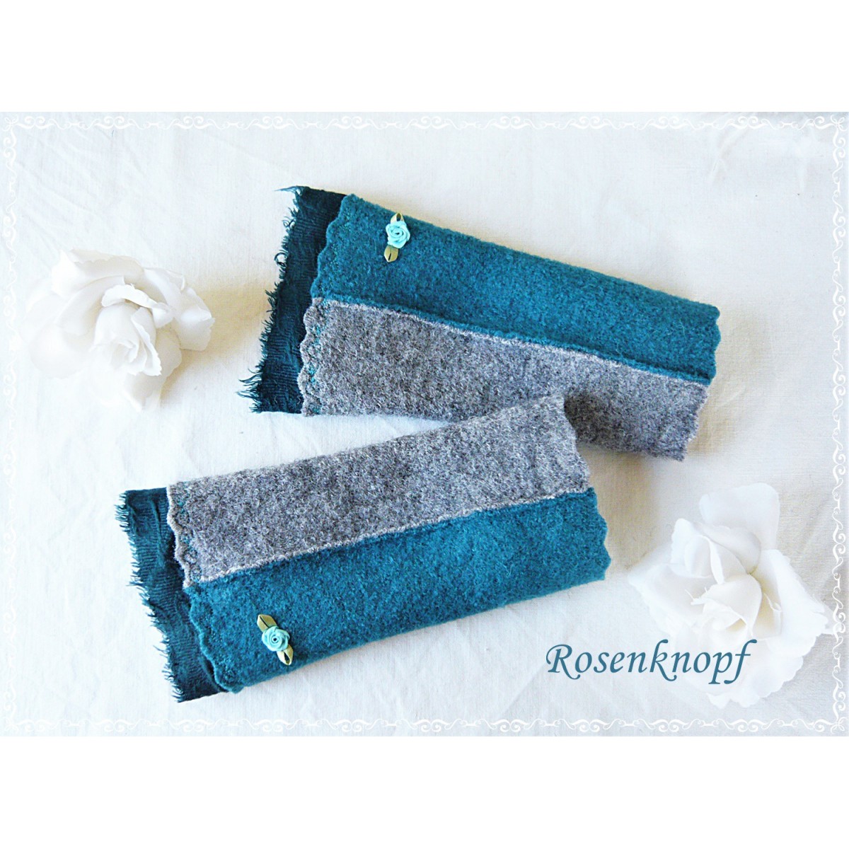 Außergewöhnliche Walkstulpen für kühle Tage aus hochwertigem Walk in Grau und dunklem Türkis.