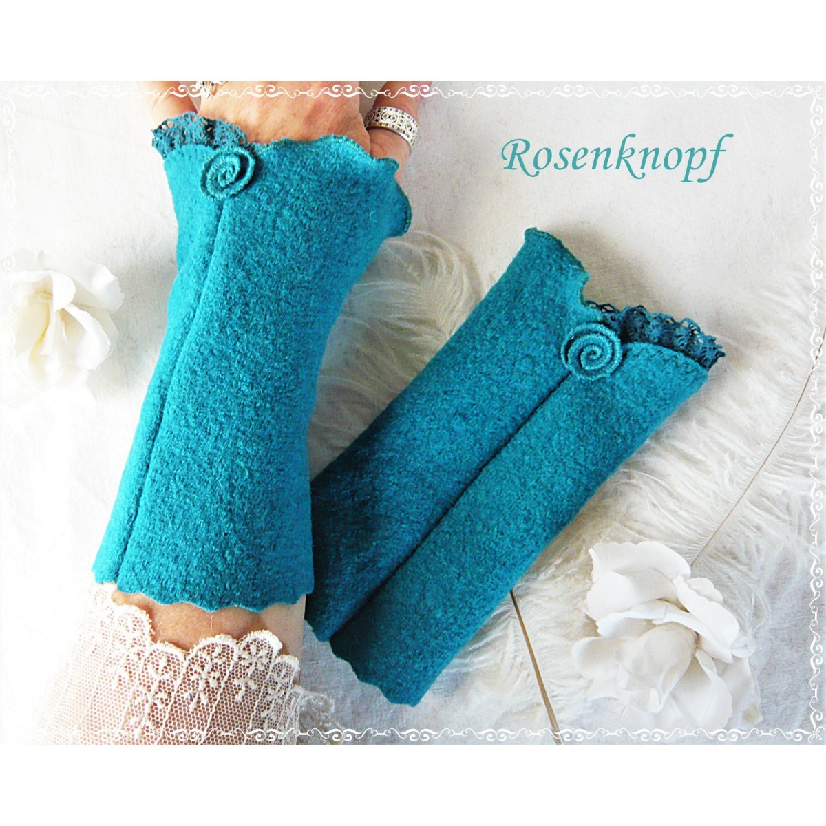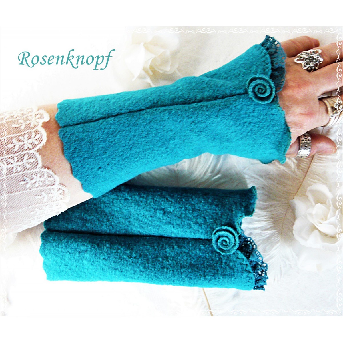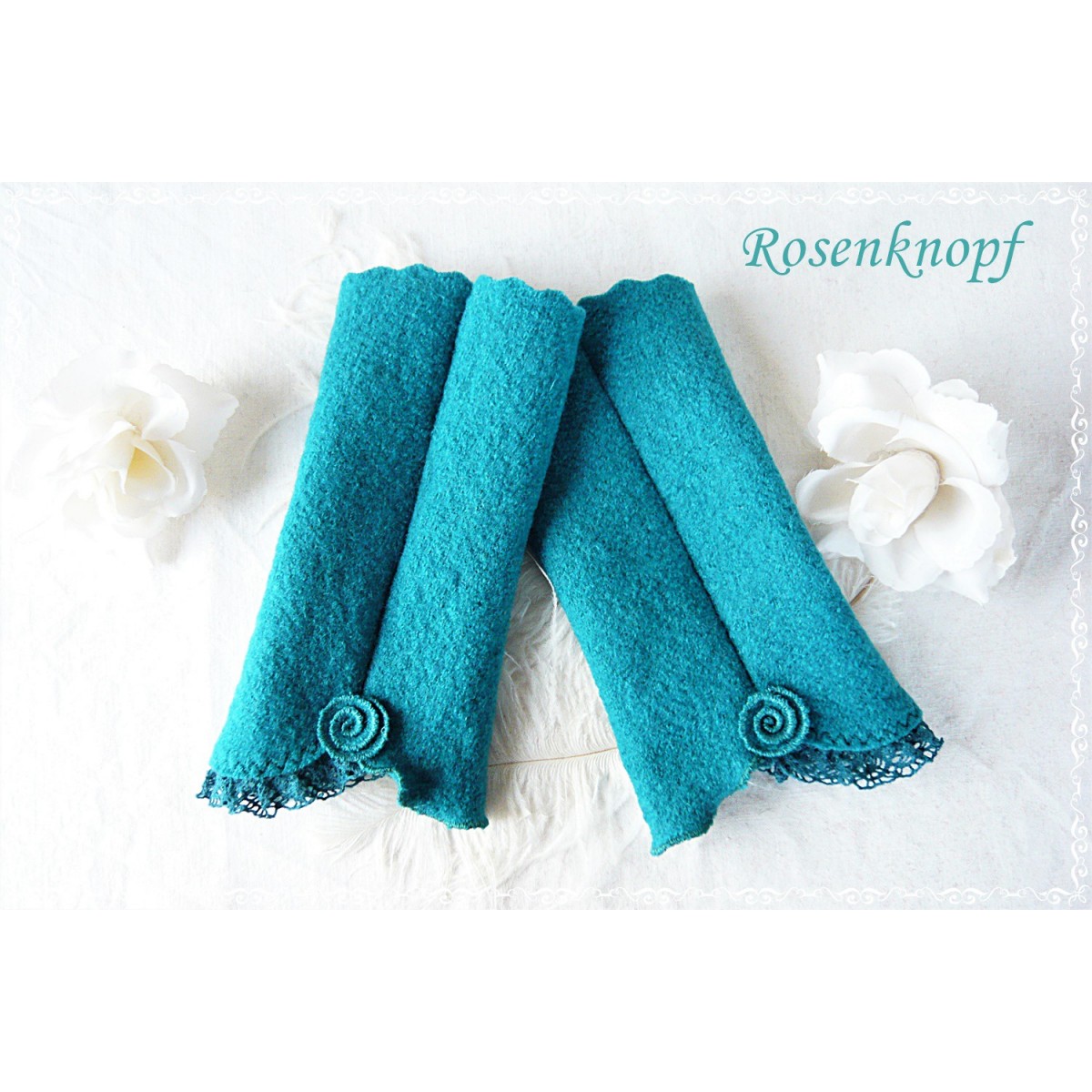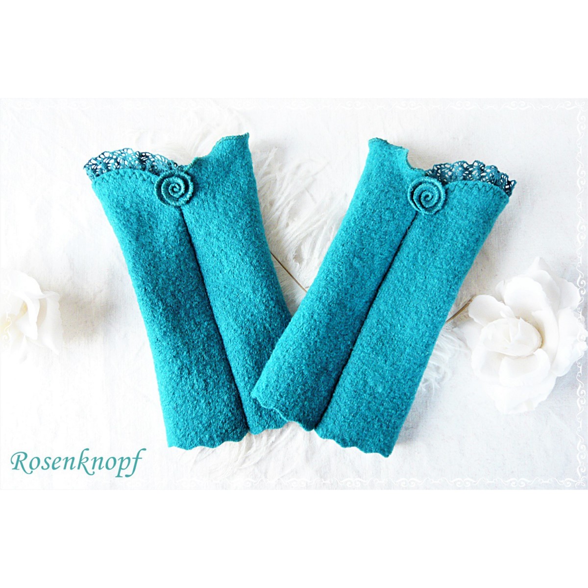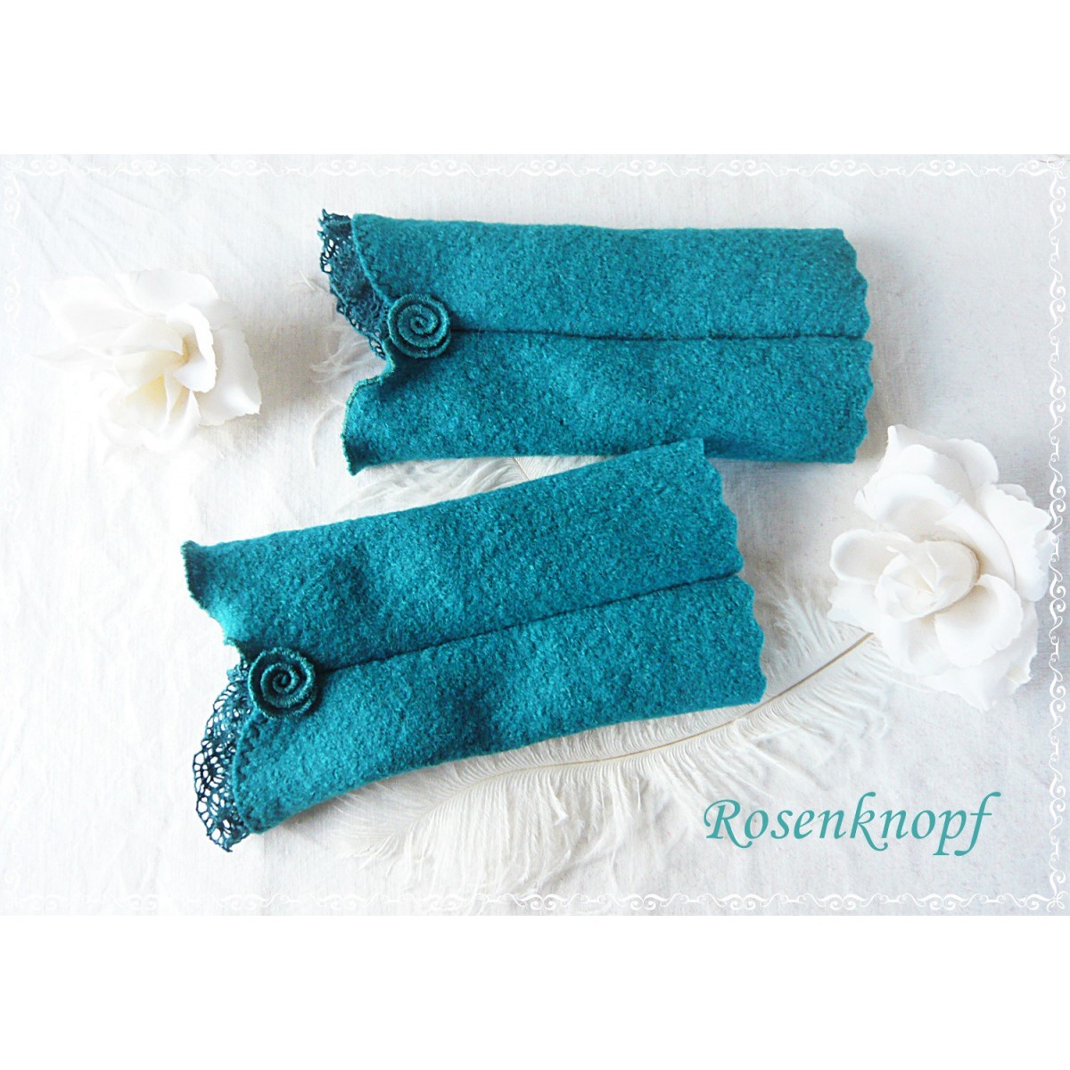 Elegante und weiche Walkstulpen für kühle Tage aus hochwertigem Walk in Türkis.