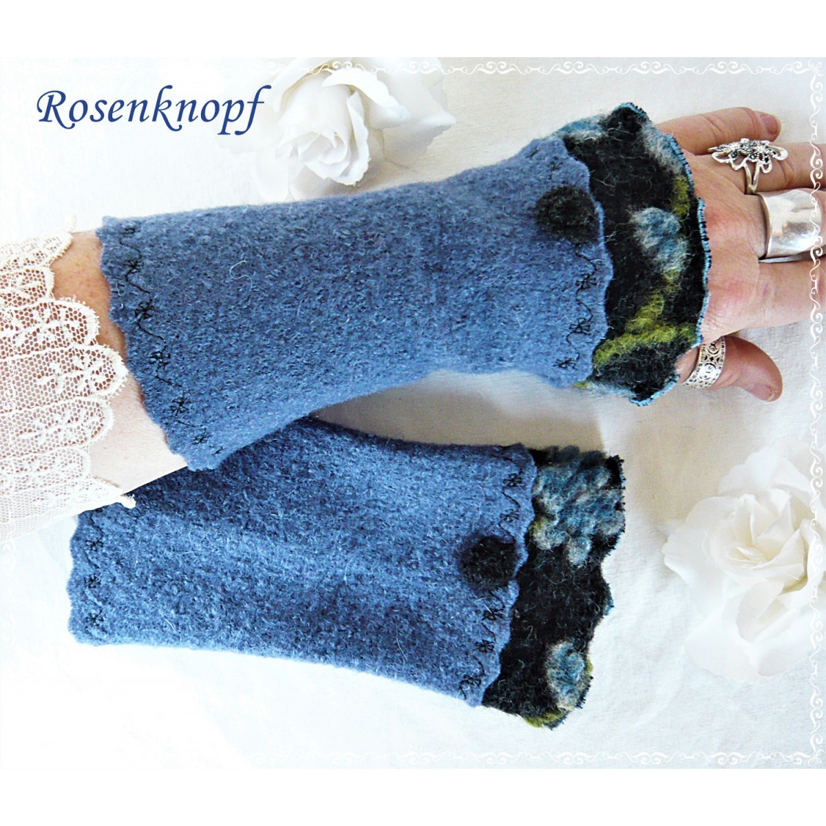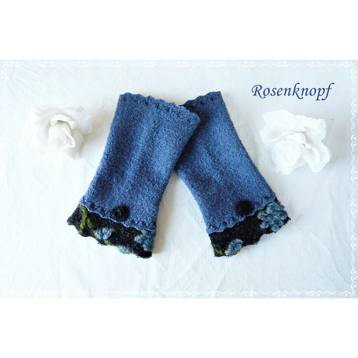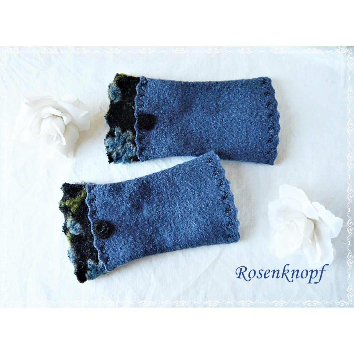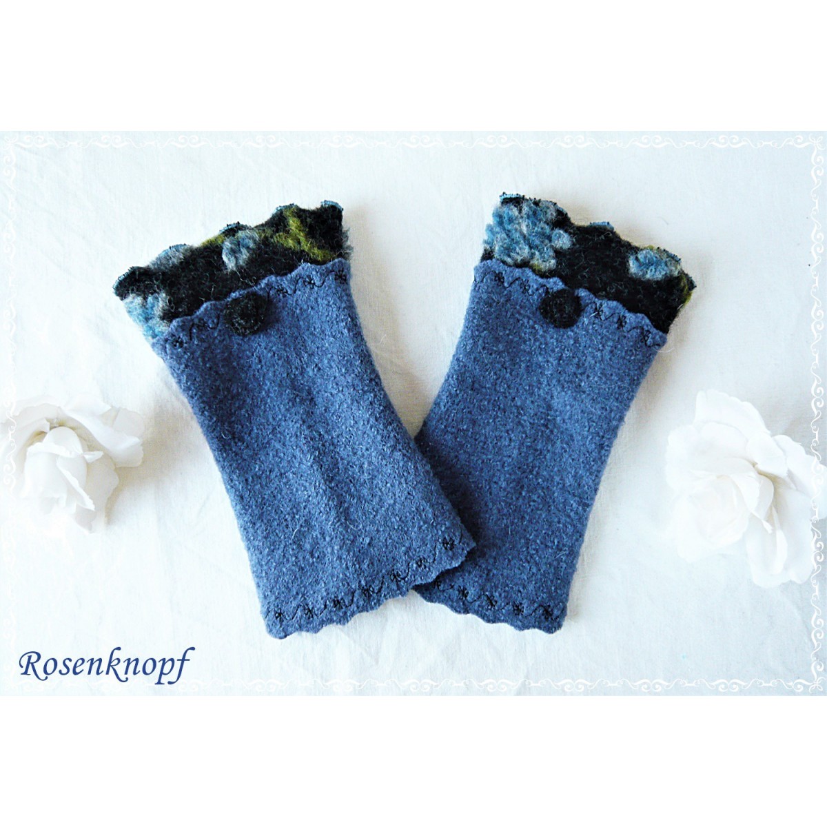Alltagstaugliche und wärmende Walkstulpen die aus hochwertigem Walk in Jeansblau gefertigt wurden.