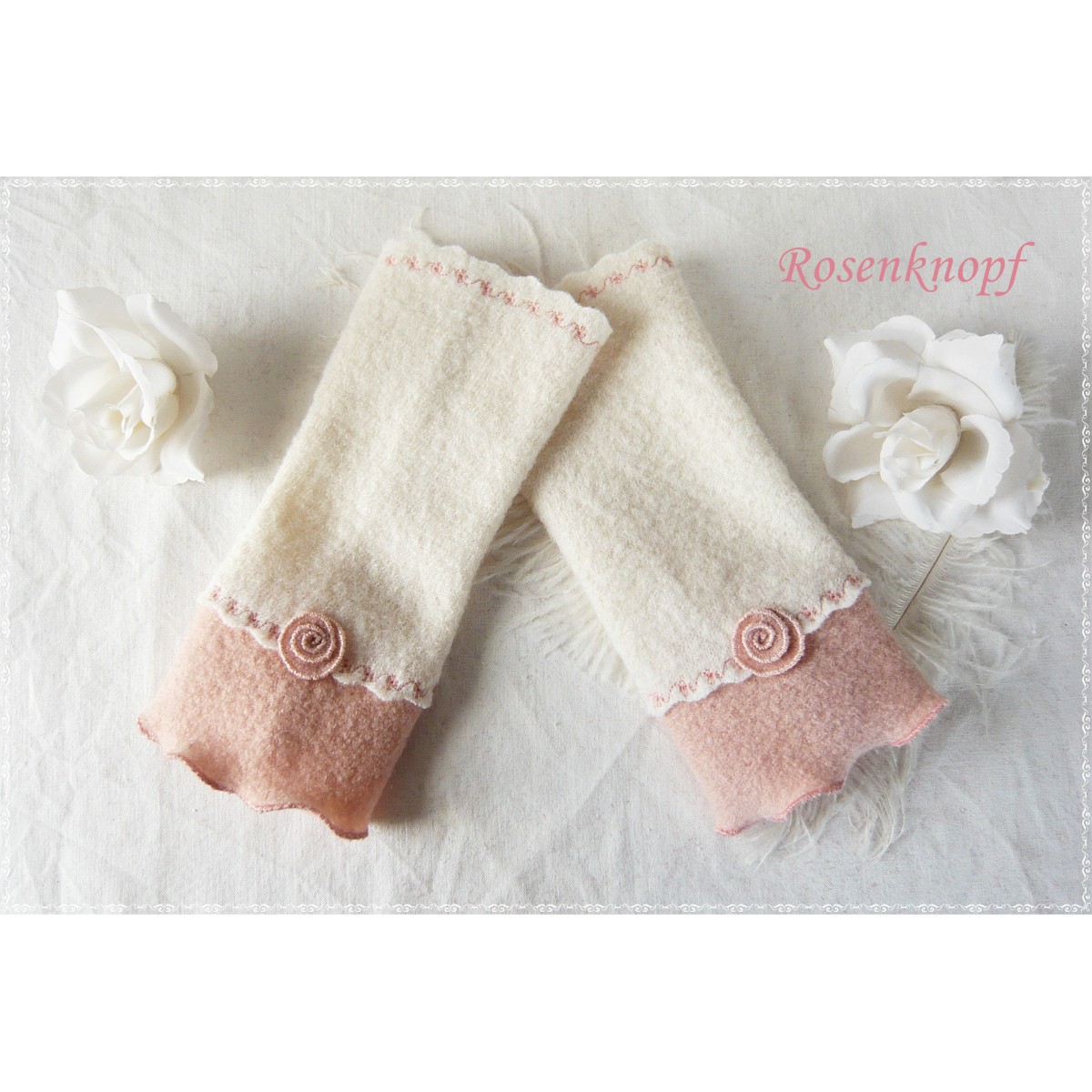 Die Stulpen ziert eine von mir gefertigte Walkrose.