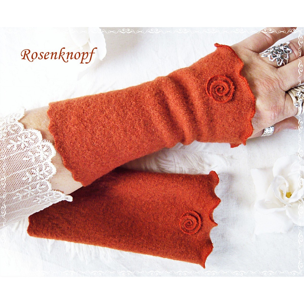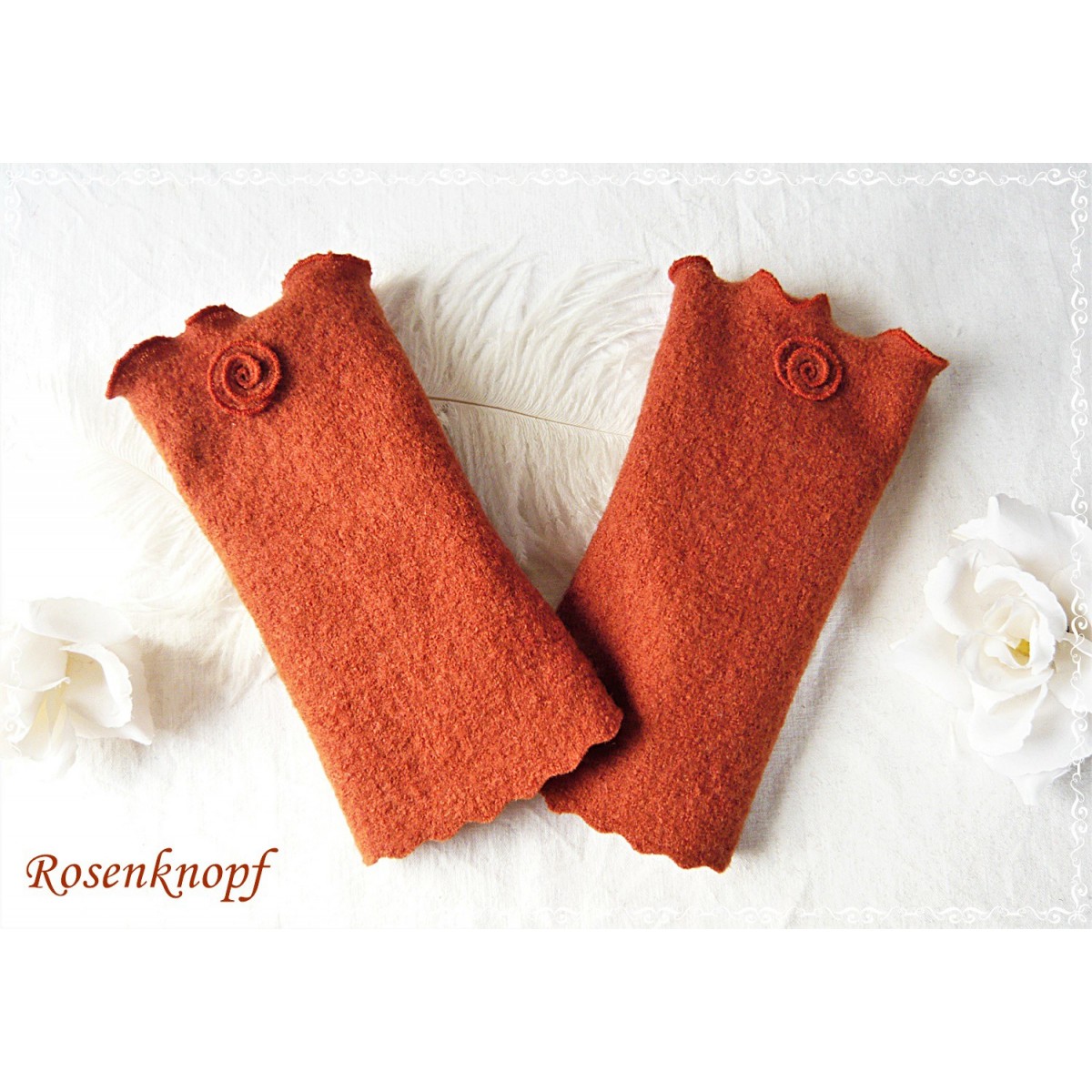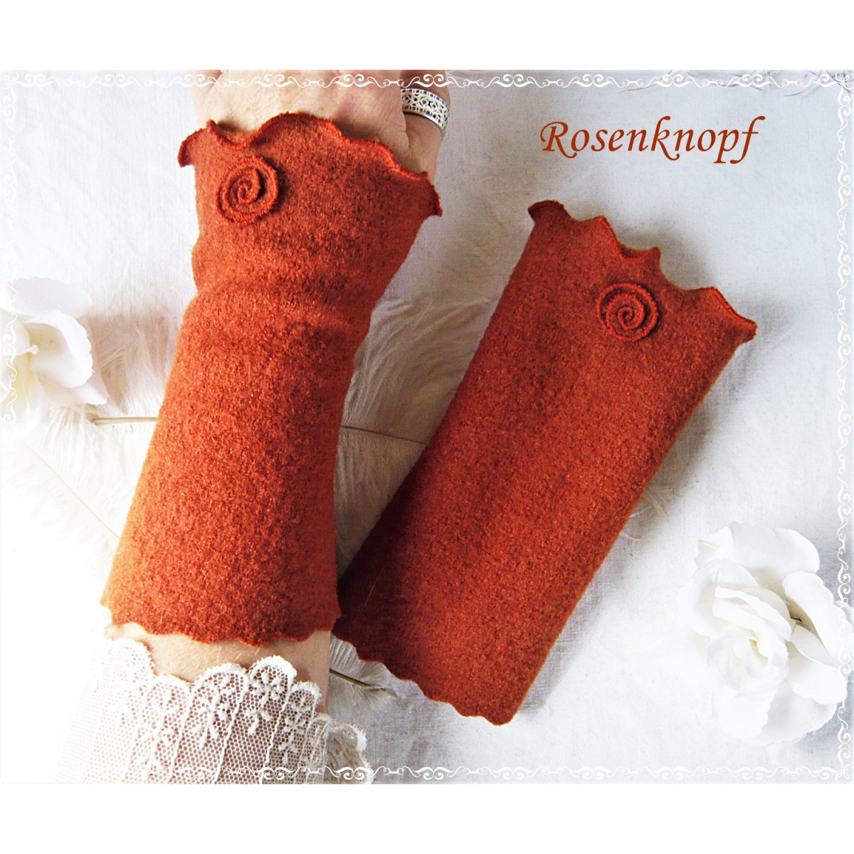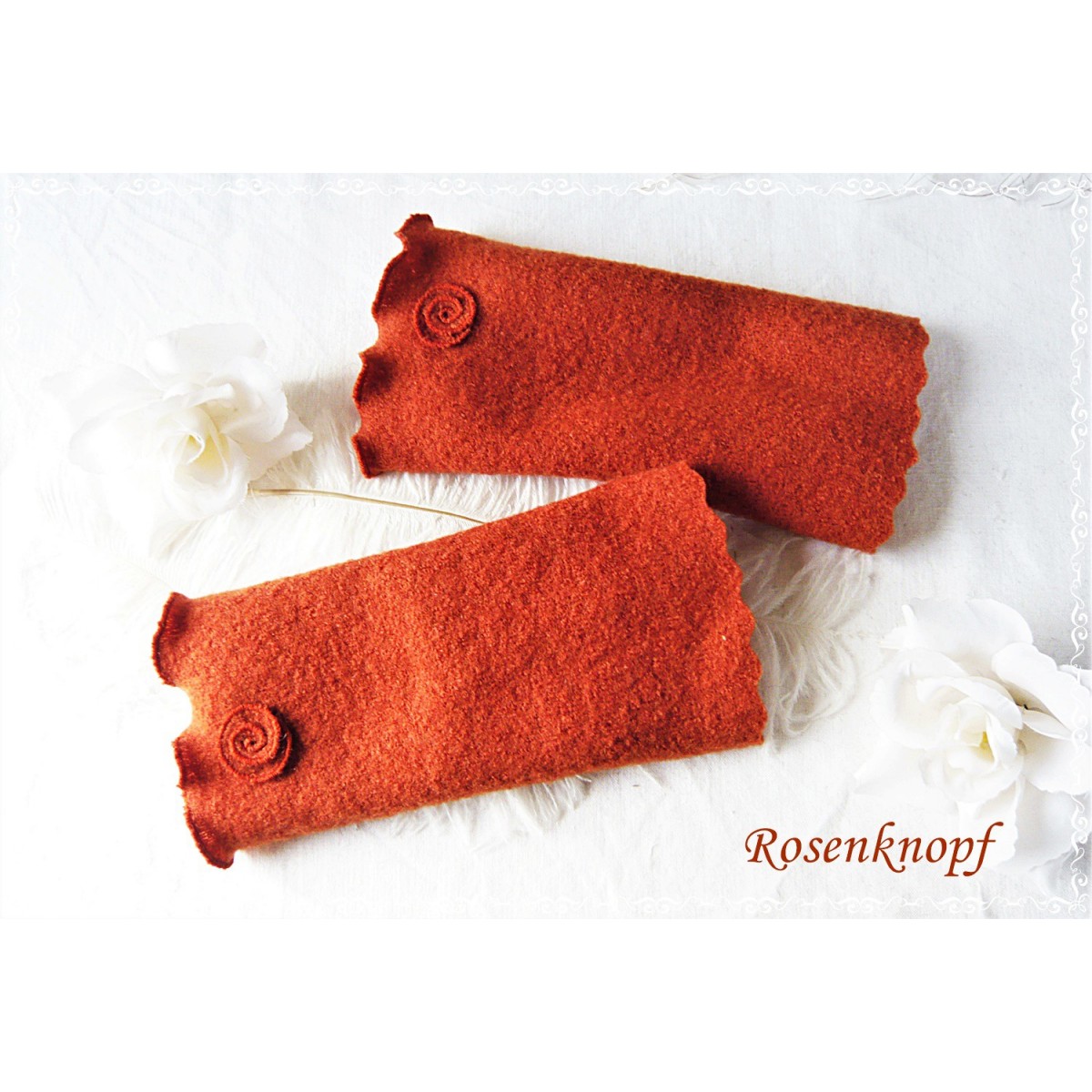 Wunderschöne und elegante Walkstulpen für kühle Tage die aus hochwertigem Walk in Rostorange gefertigt wurden.