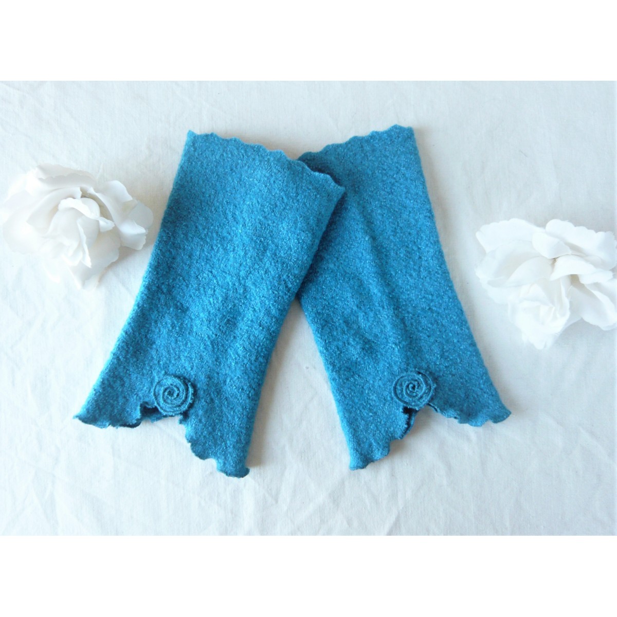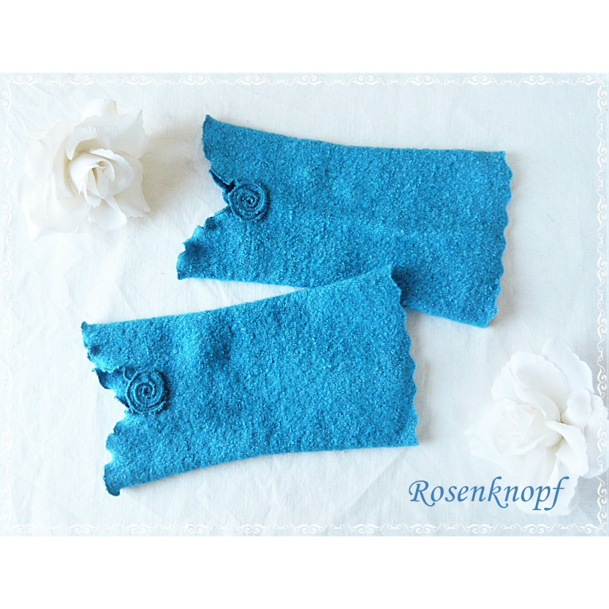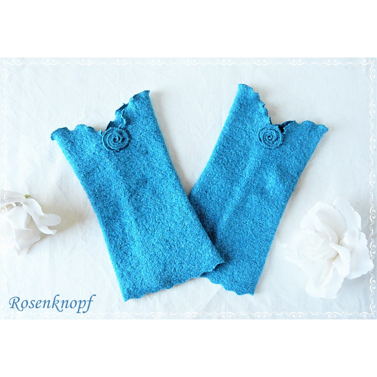 Elegante und weiche Walkstulpen für kühle Tage aus hochwertigem Walk in Azur.