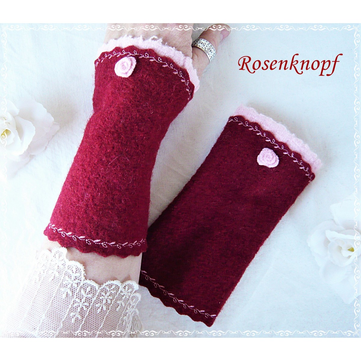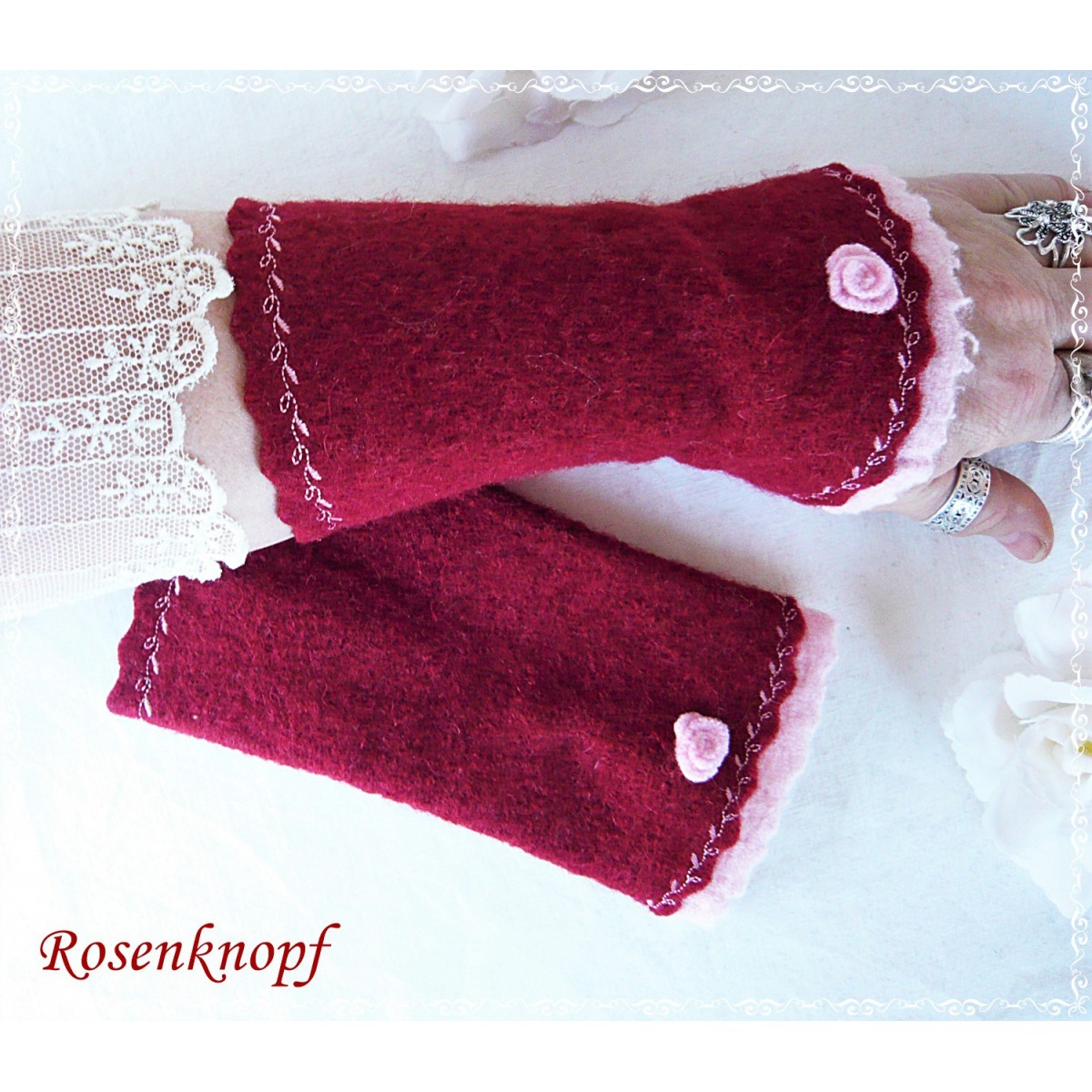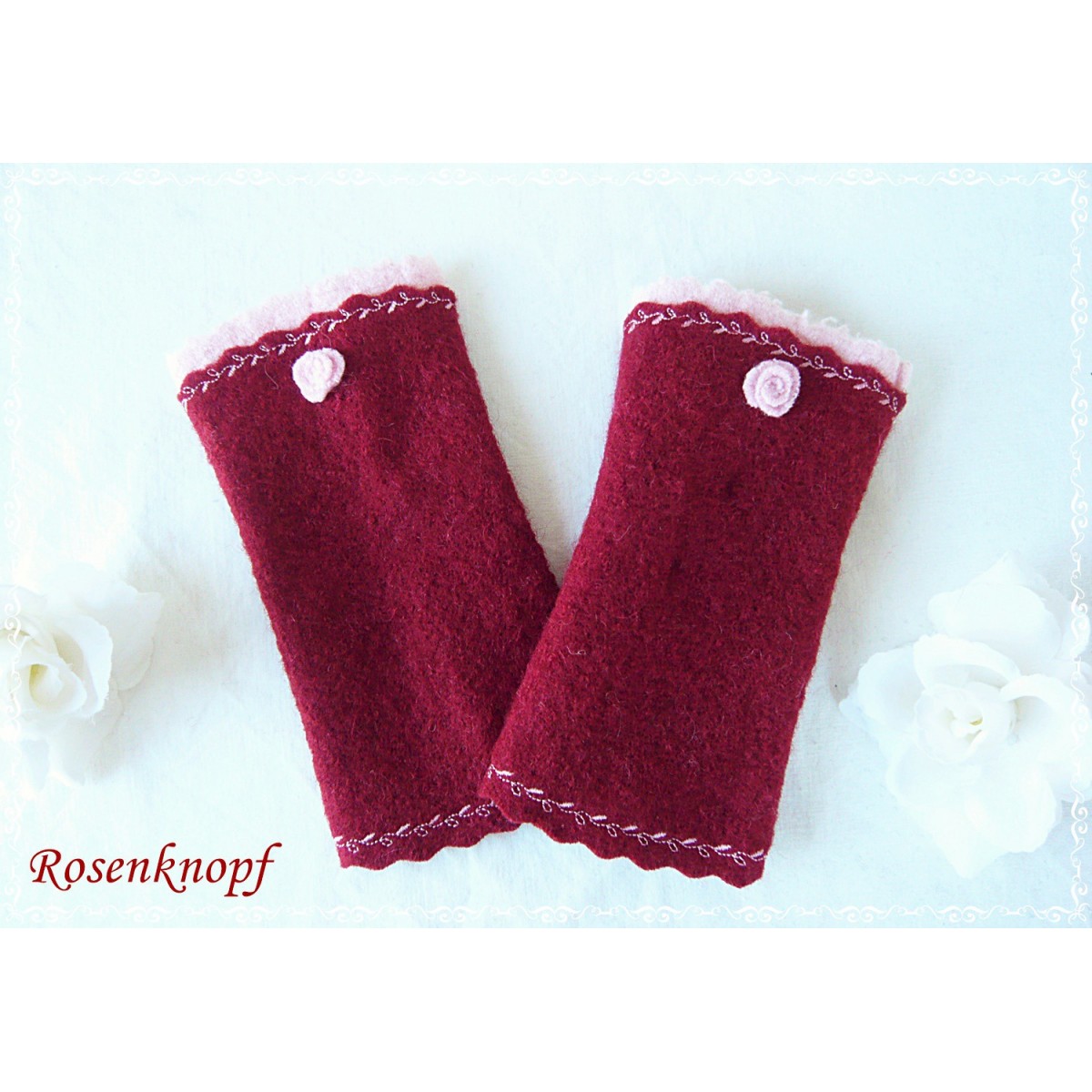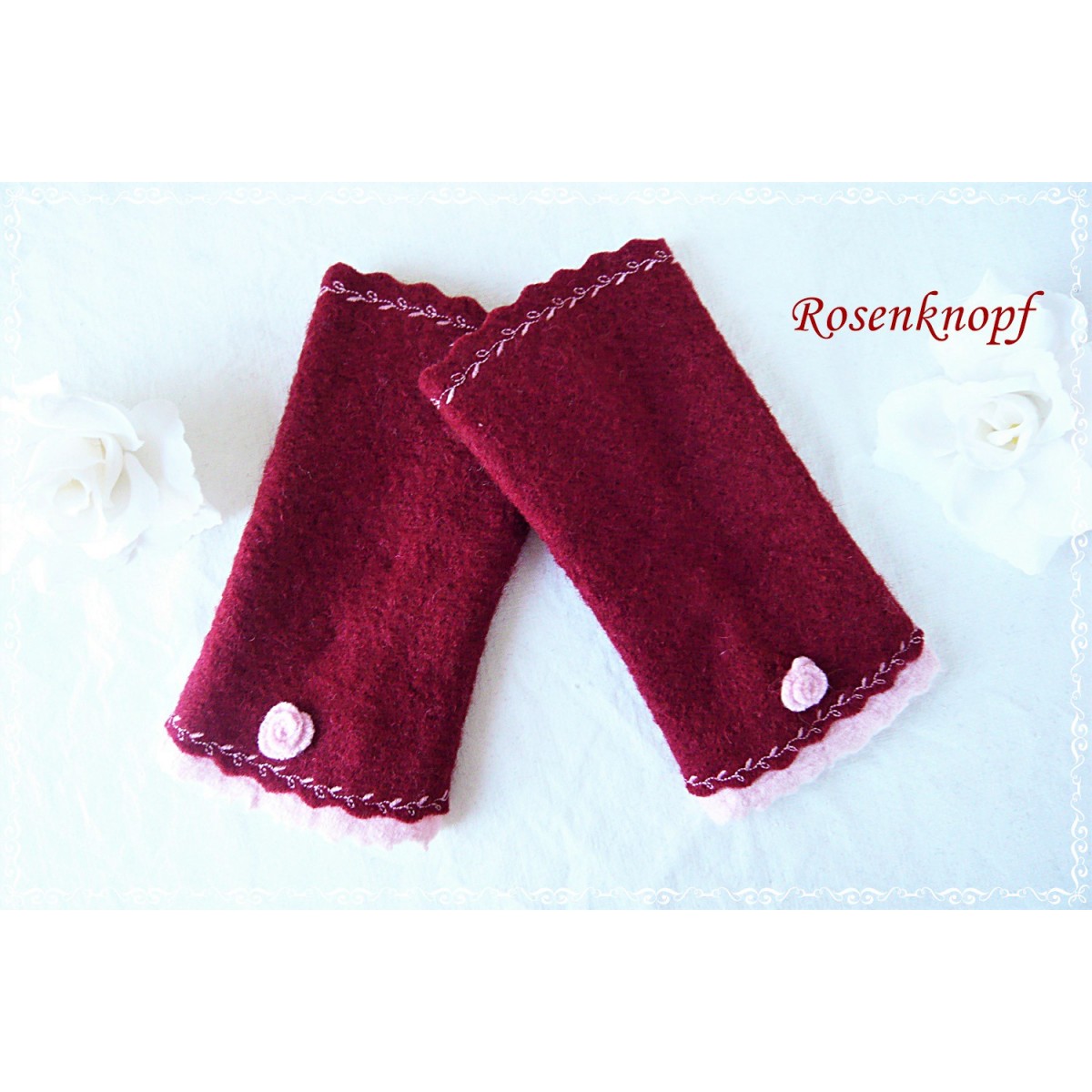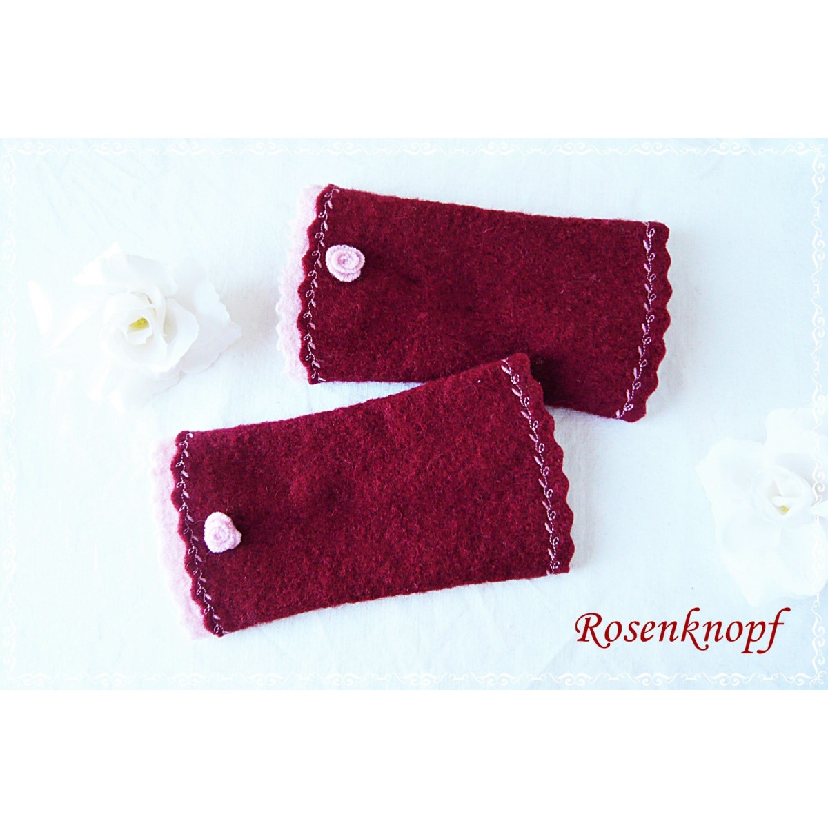Elegante Walkstulpen aus hochwertigem Wollwalk in Dunkelrot.
