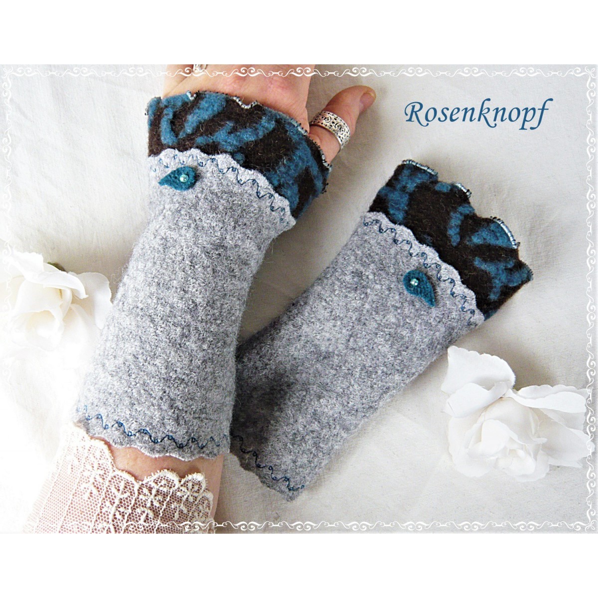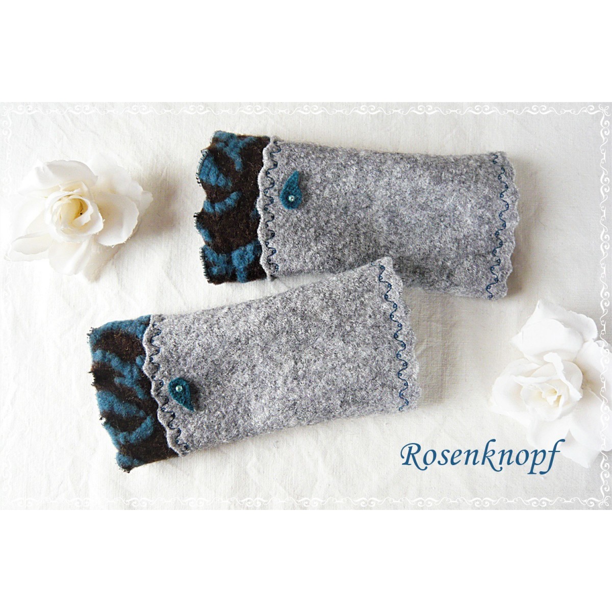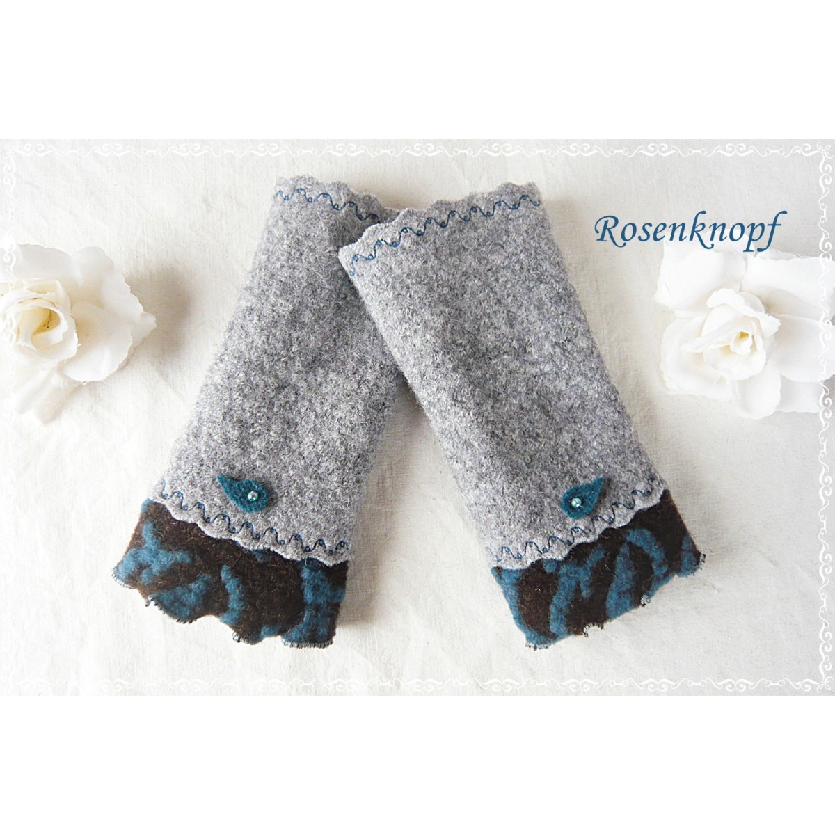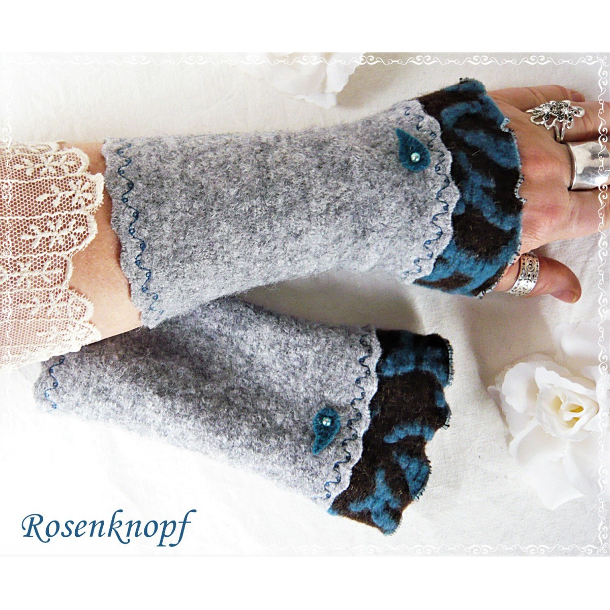Zauberhaft romantische und kuschelwarme Walkstulpen für kühle Tage die aus hochwertigem Walk in Grau gefertigt wurden.