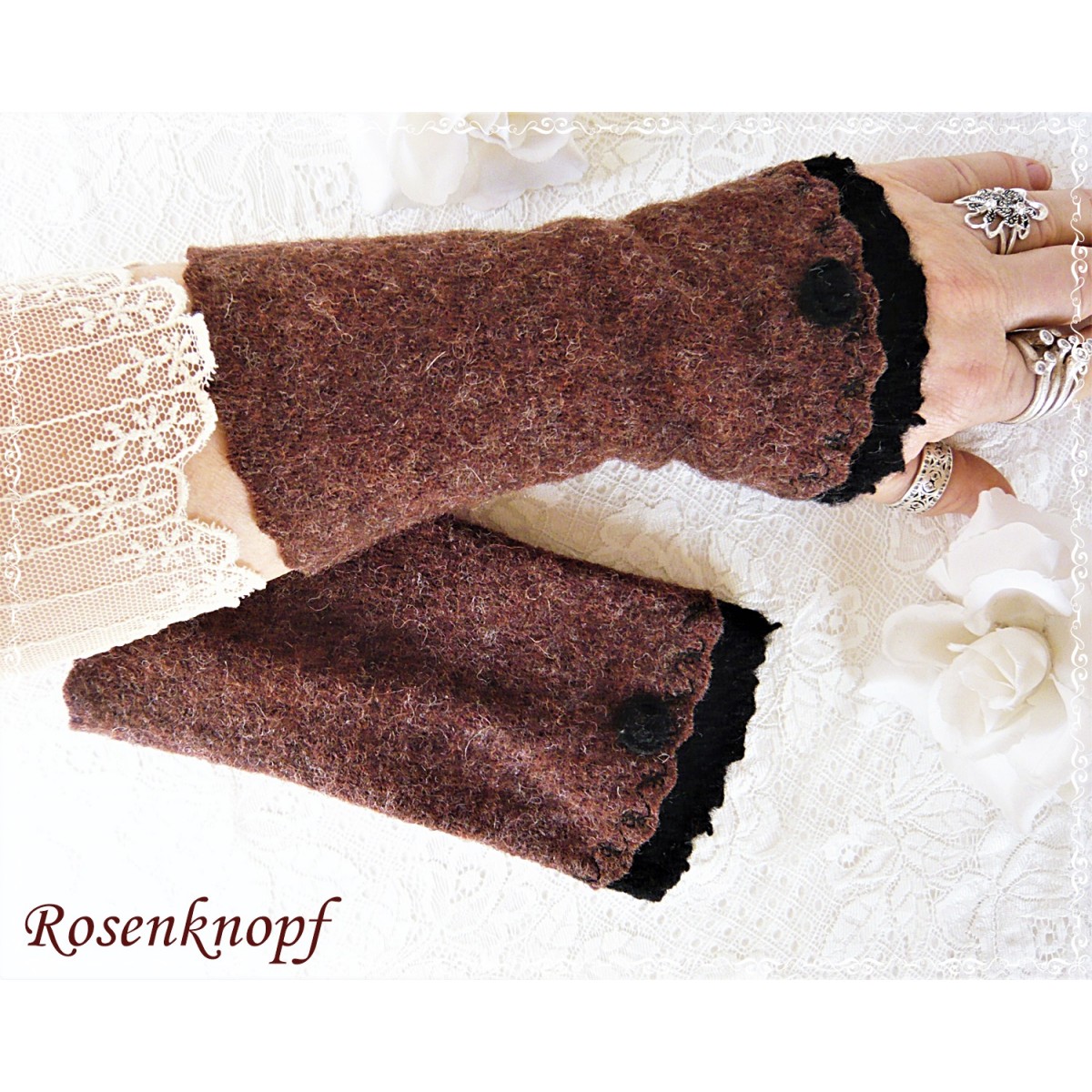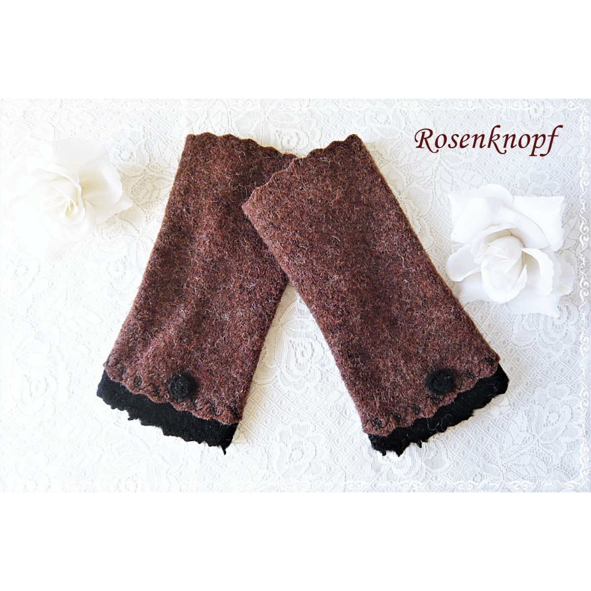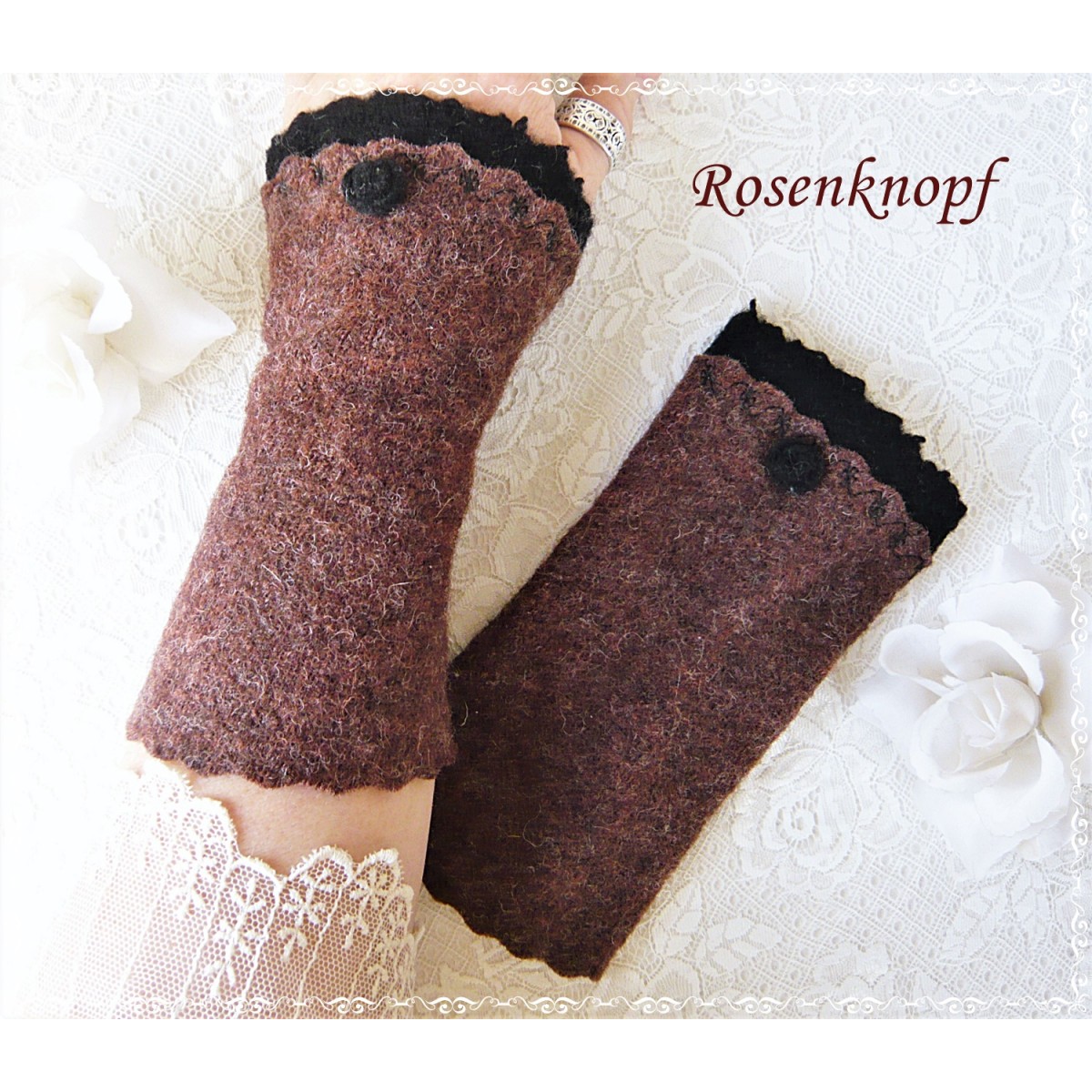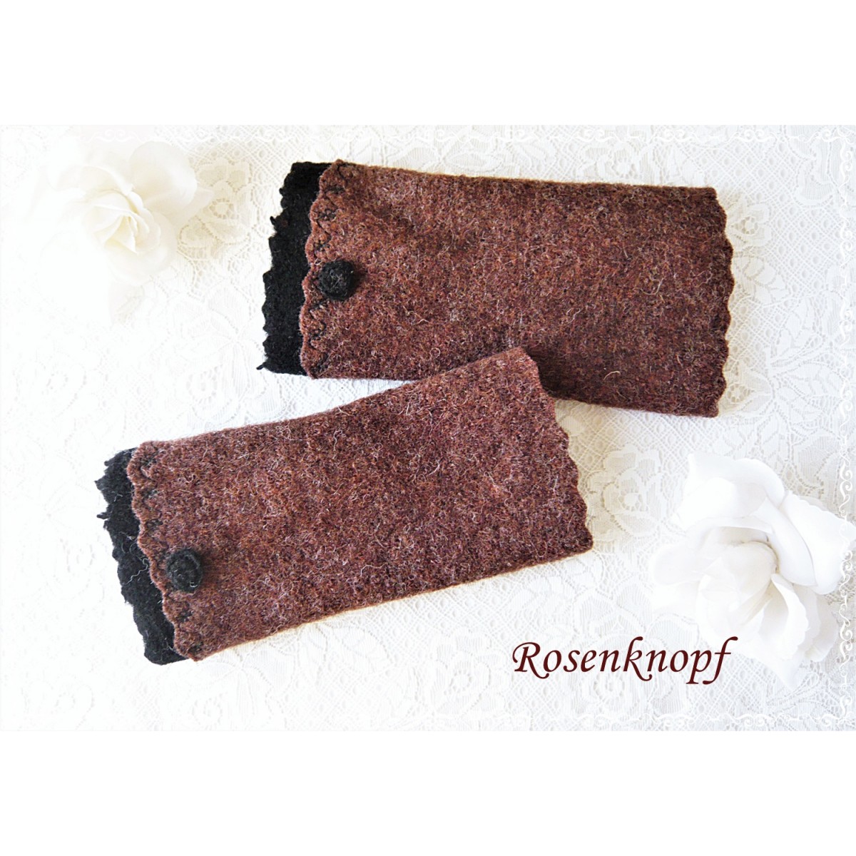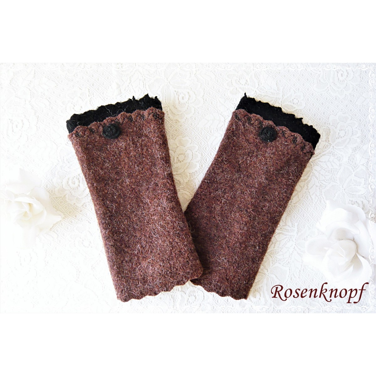 Armstulpen, Pulswärmer aus Walk in Braun.