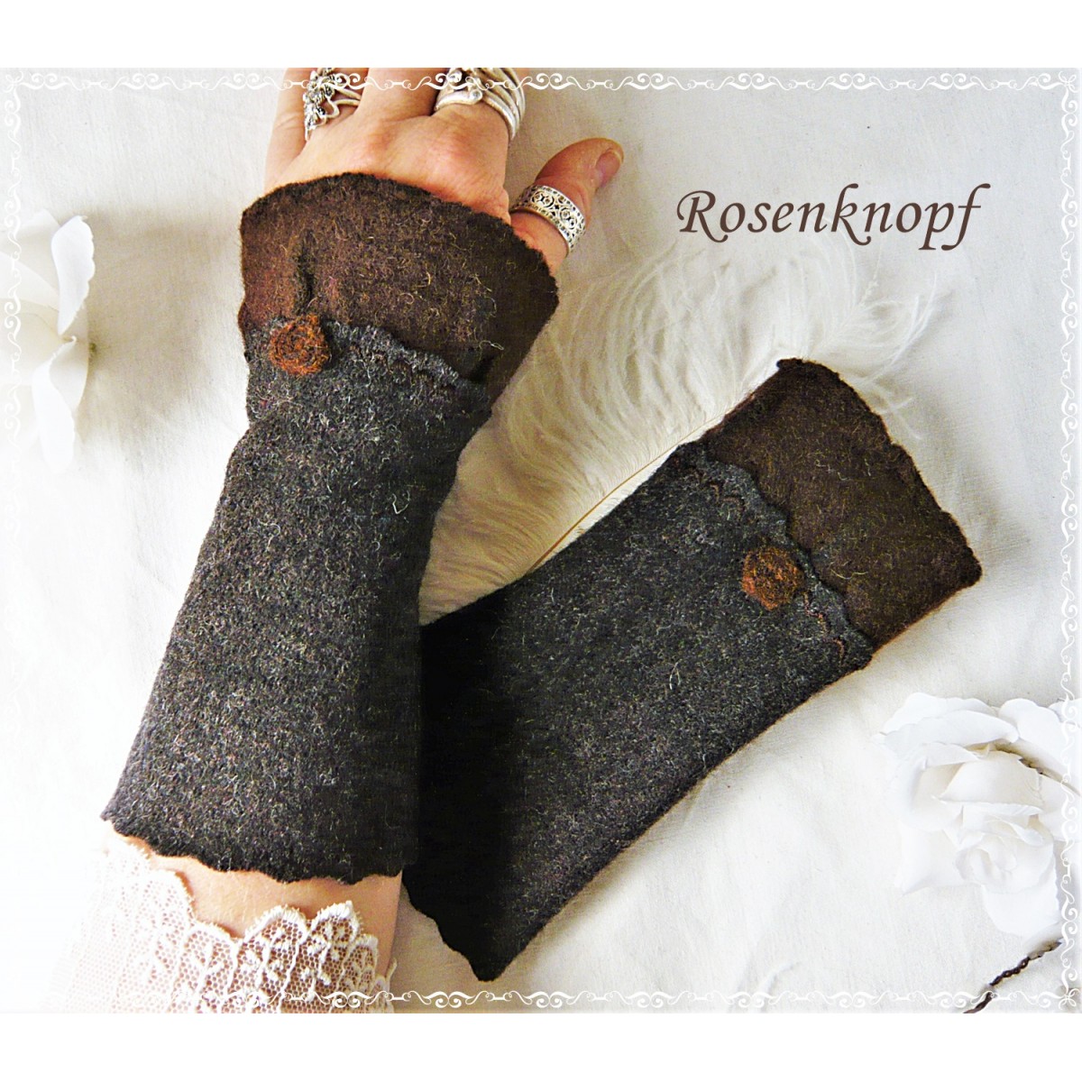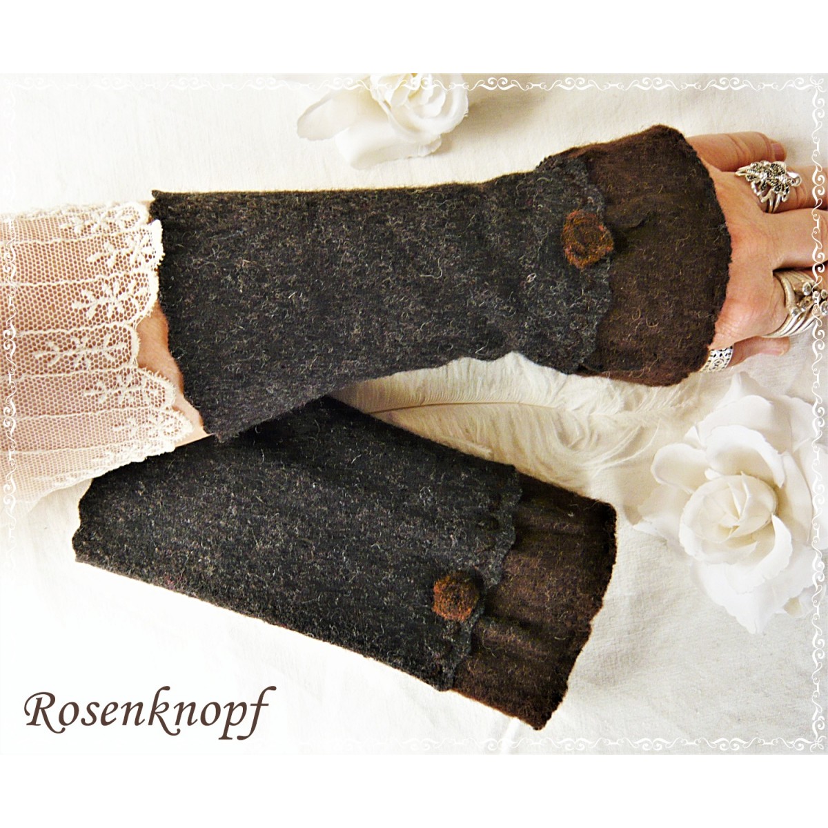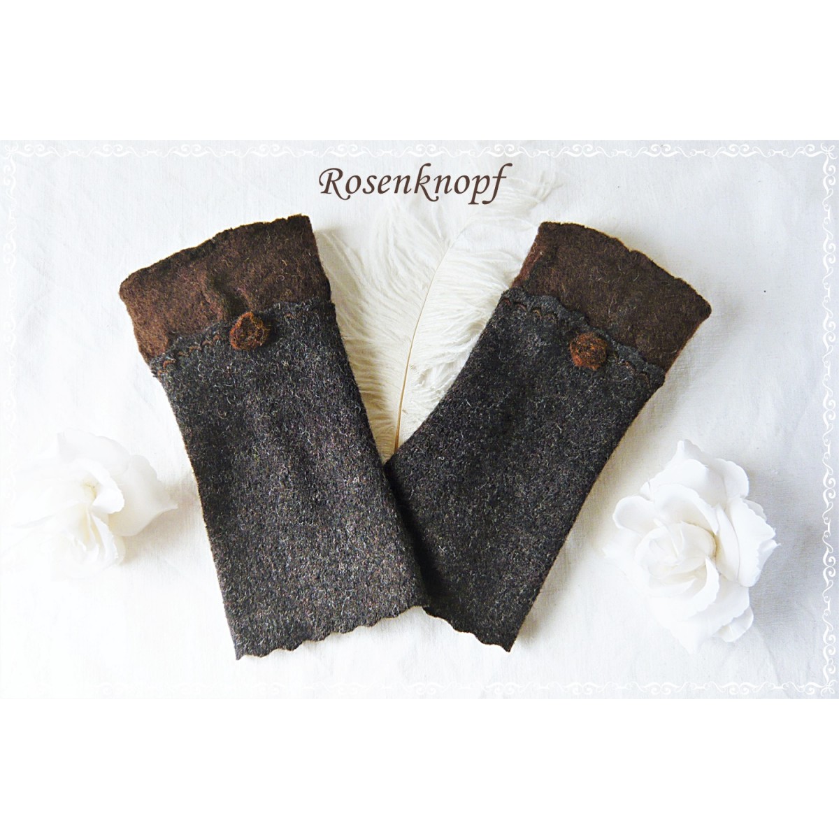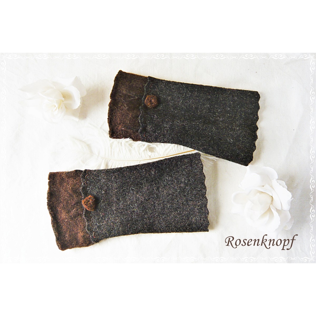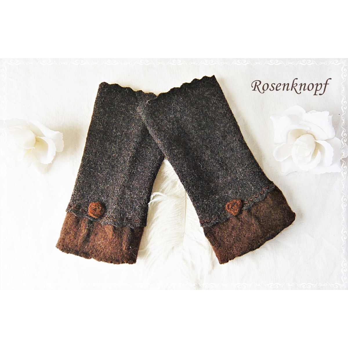 Armstulpen, Pulswärmer aus Walk in Dunkelbraun.