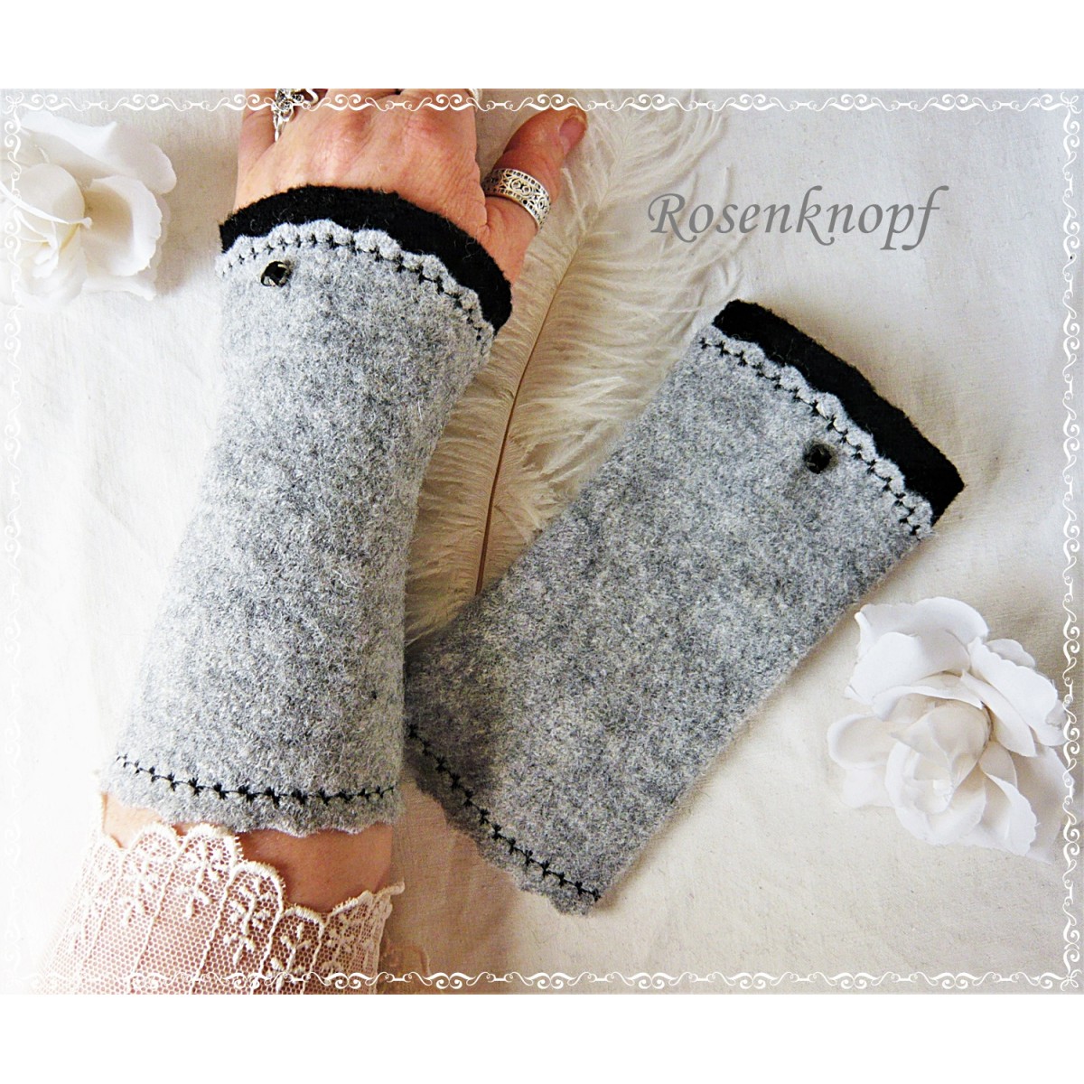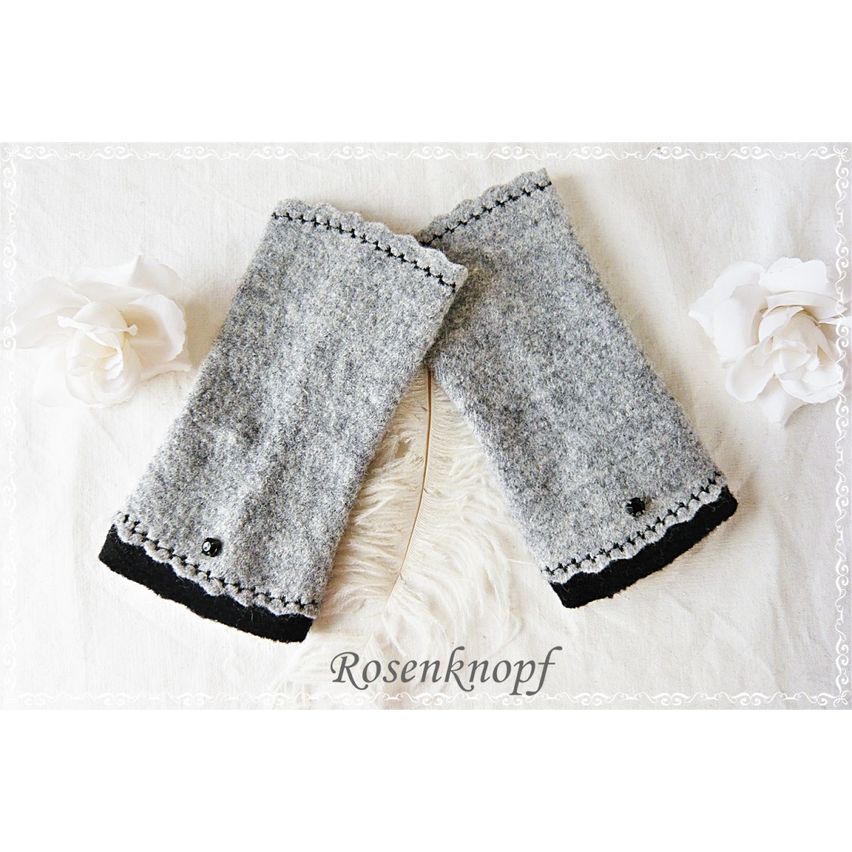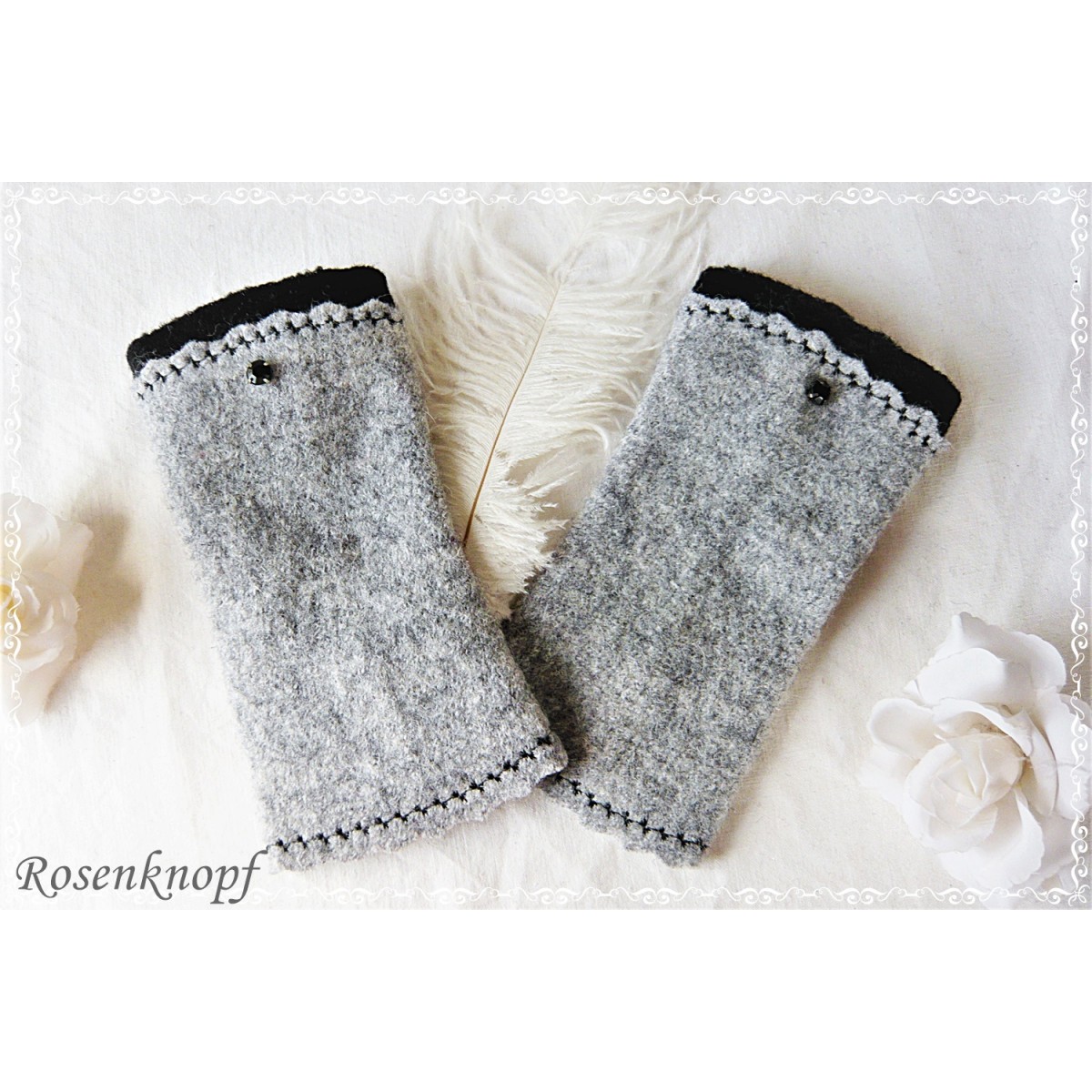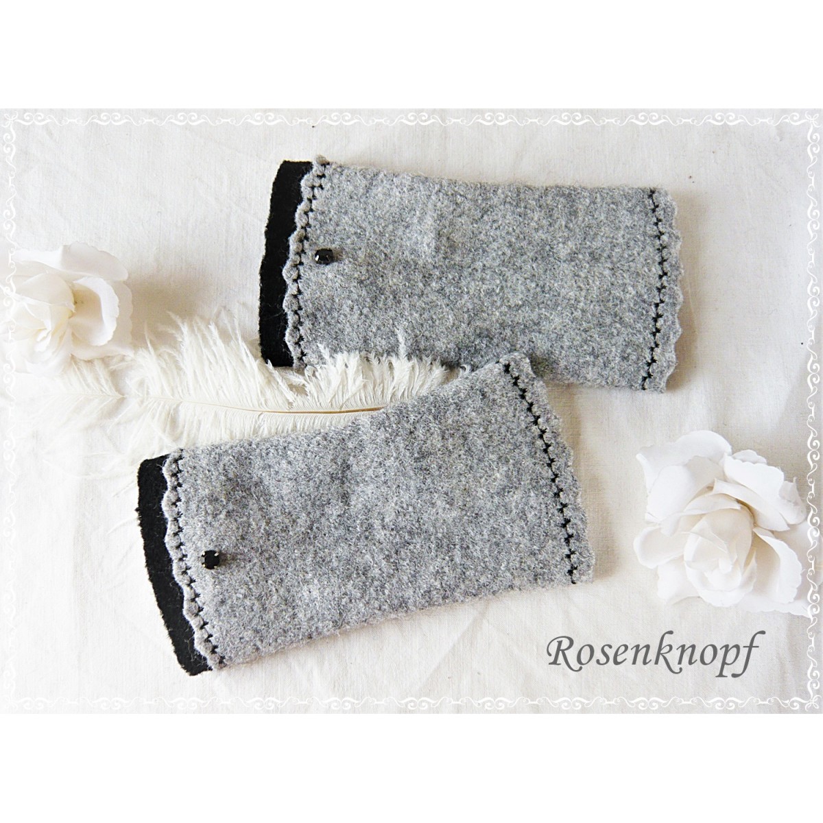 Zauberhaft romantische und kuschelwarme Walkstulpen die aus hochwertigem Walk in Grau gefertigt wurden.