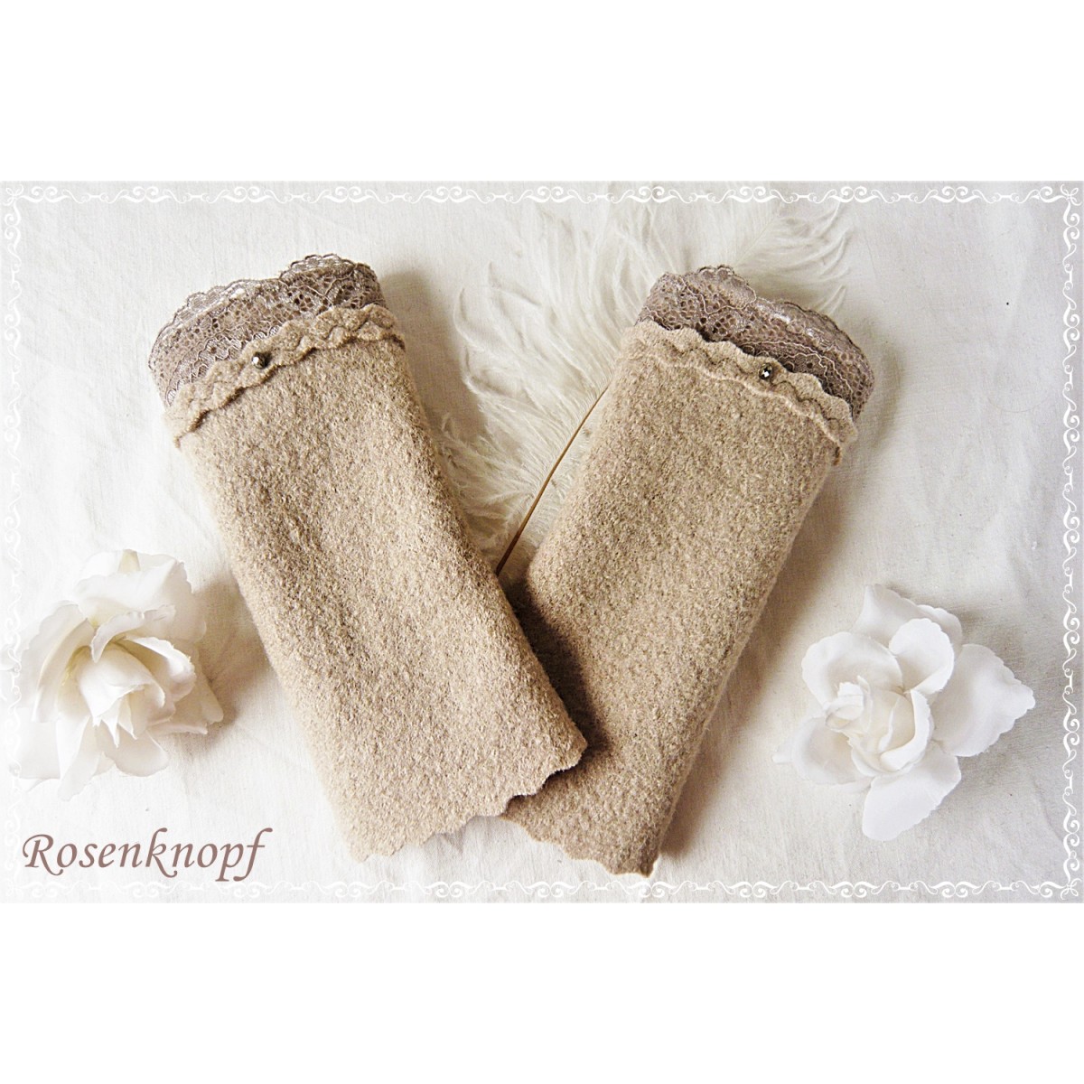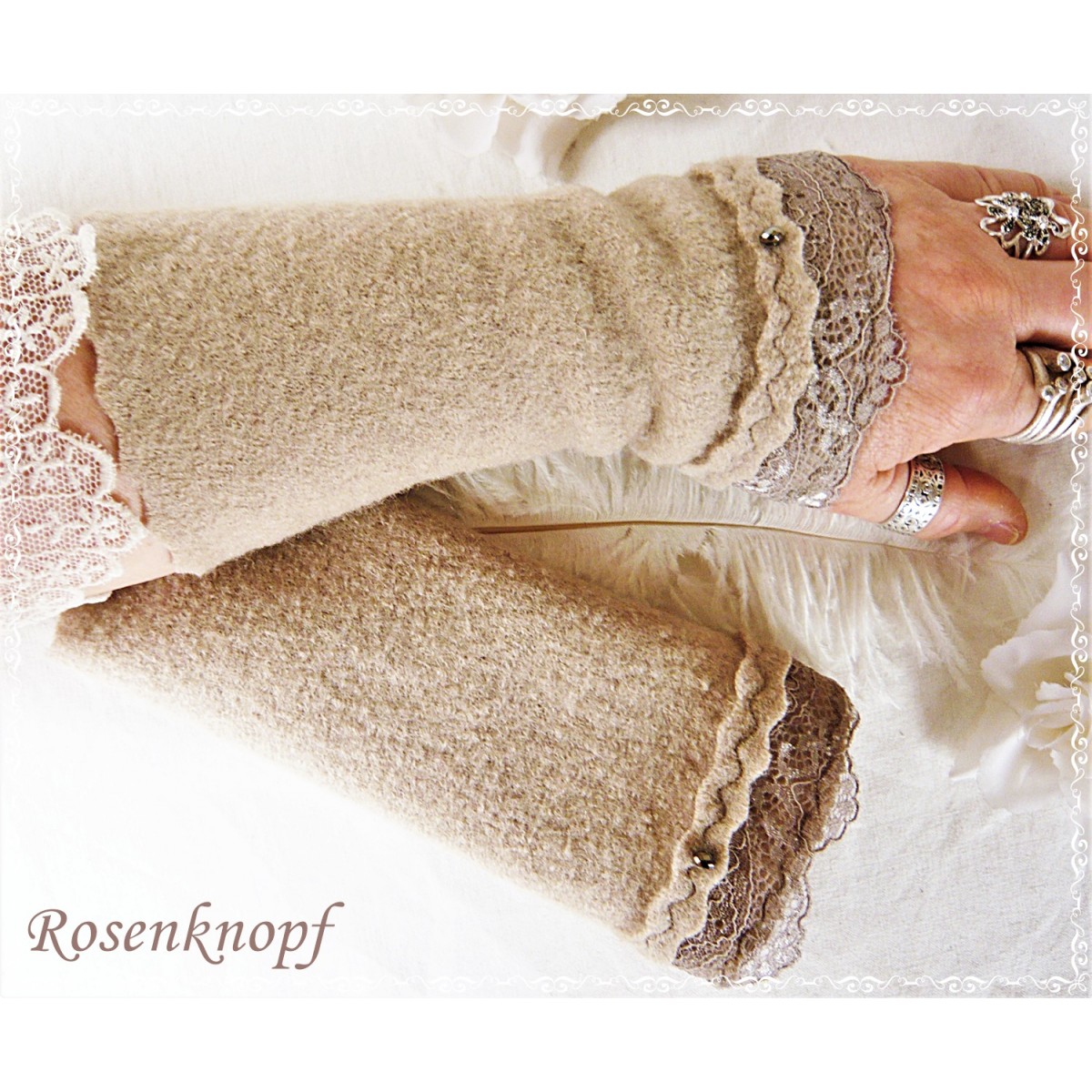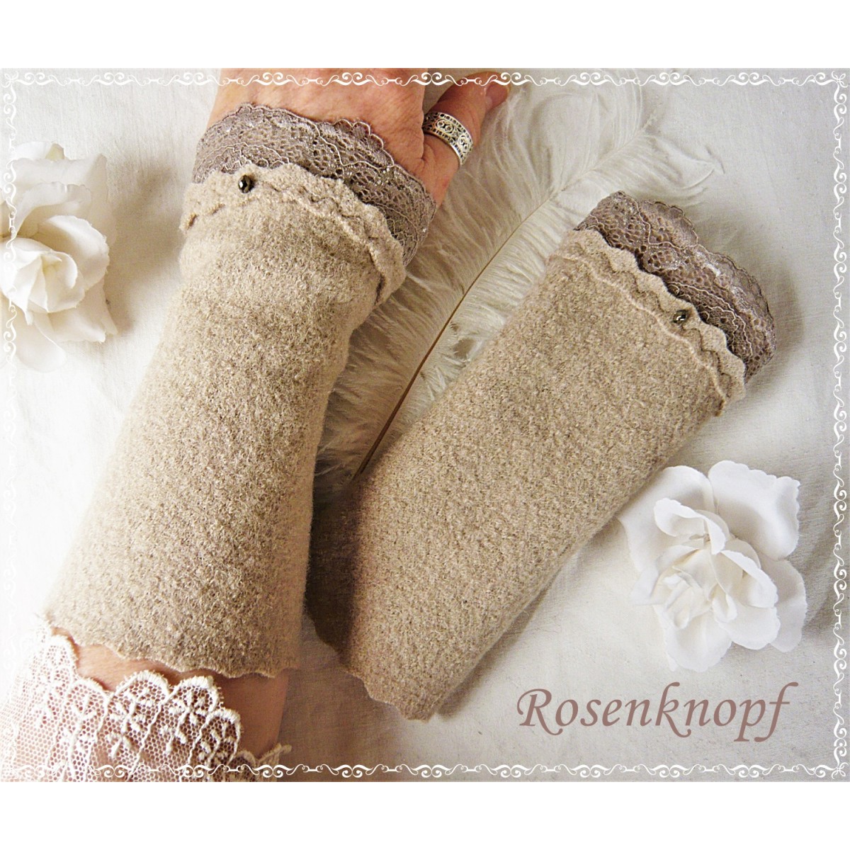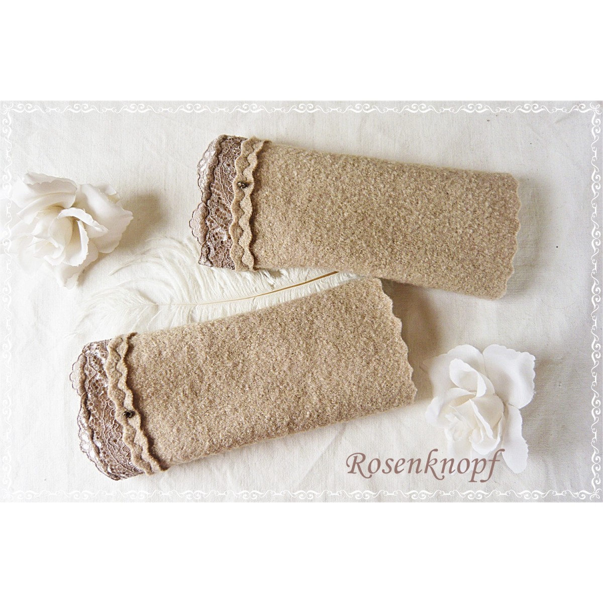 Armstulpen, Pulswärmer aus Walk in Sand/Beige zB. zur Hochzeit.