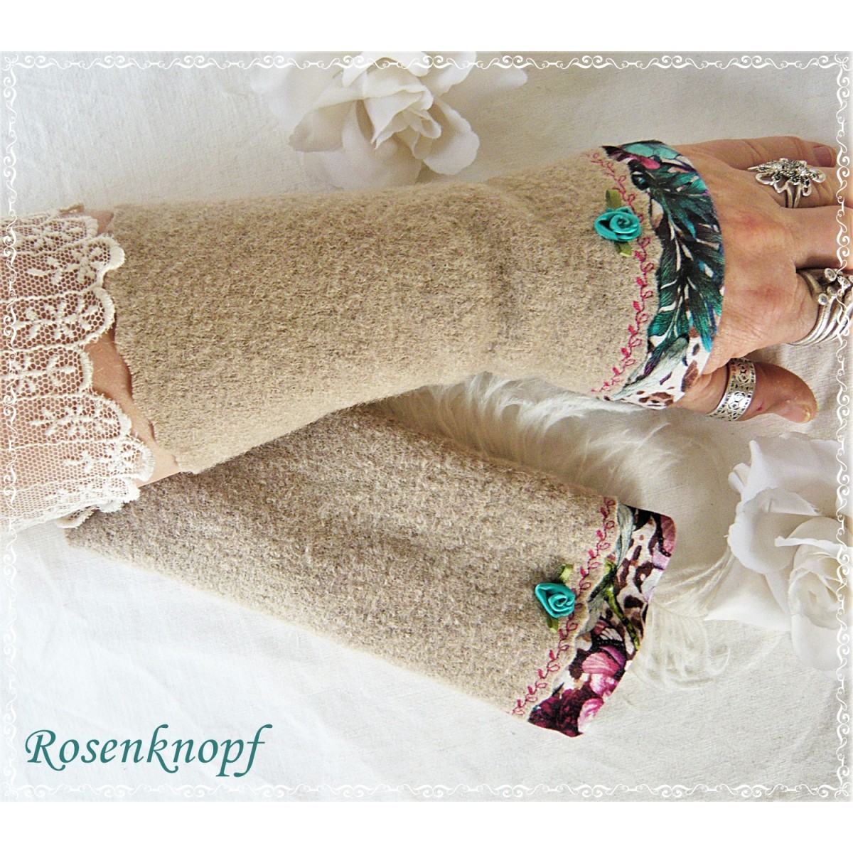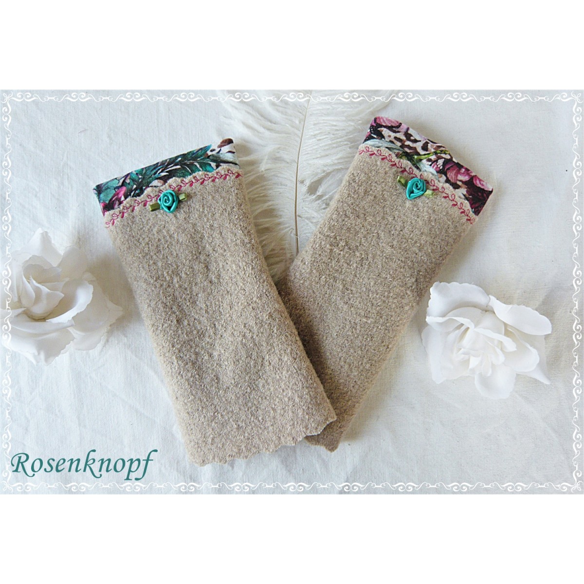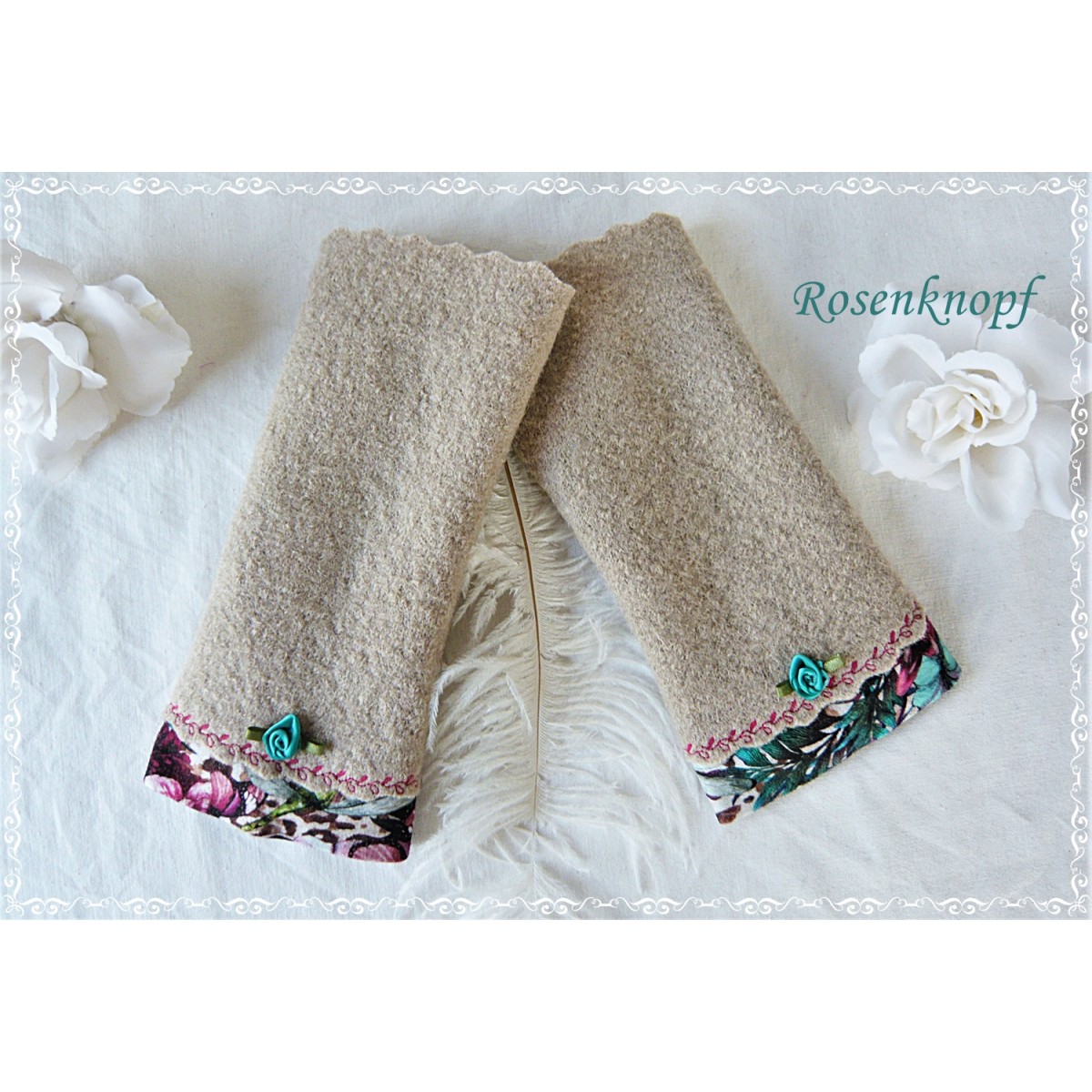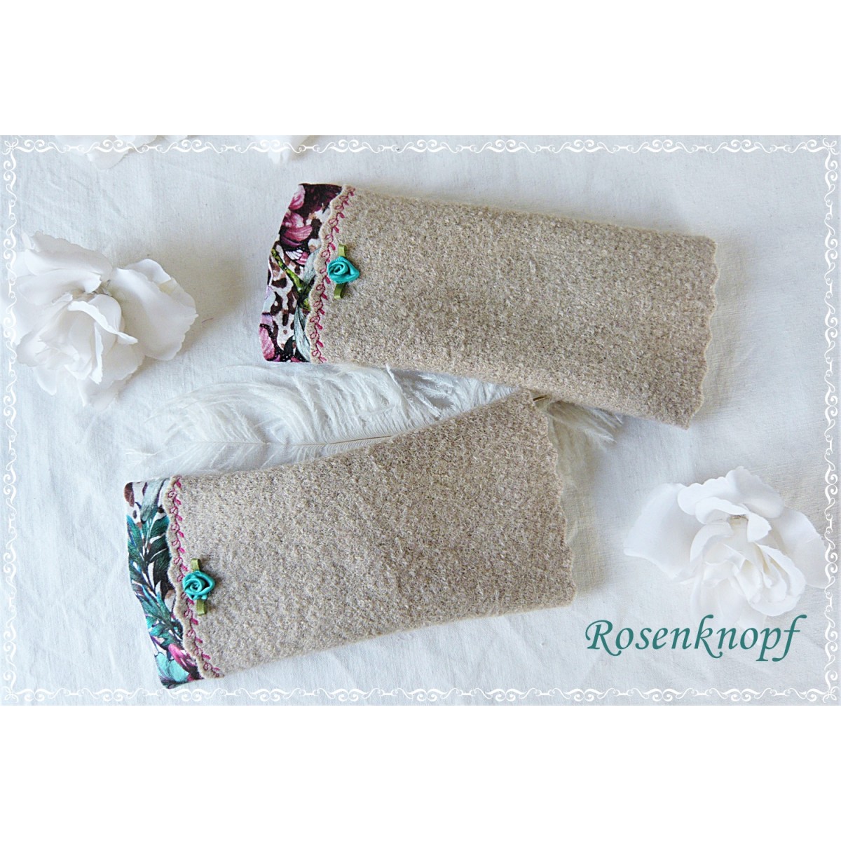 Zauberhaft romantische und kuschelwarme Walkstulpen die aus hochwertigem Walk in Sand/Beige gefertigt wurden.