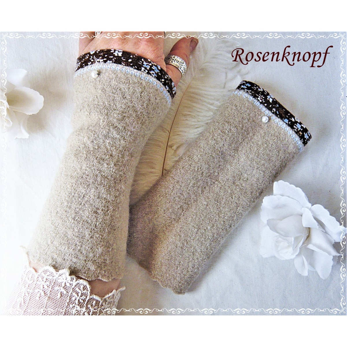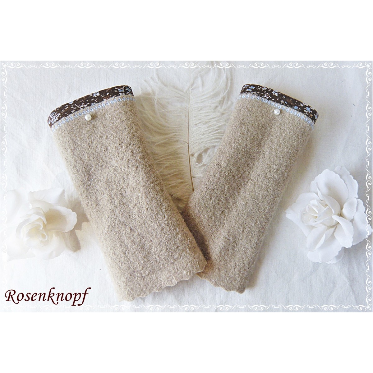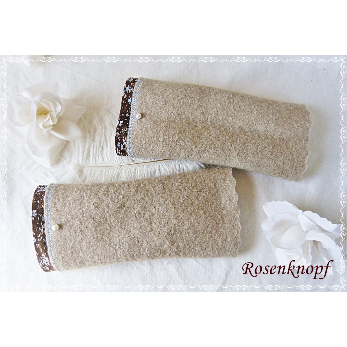lll➤ Armstulpen, Pulswärmer aus Walk in Beige/Sand.