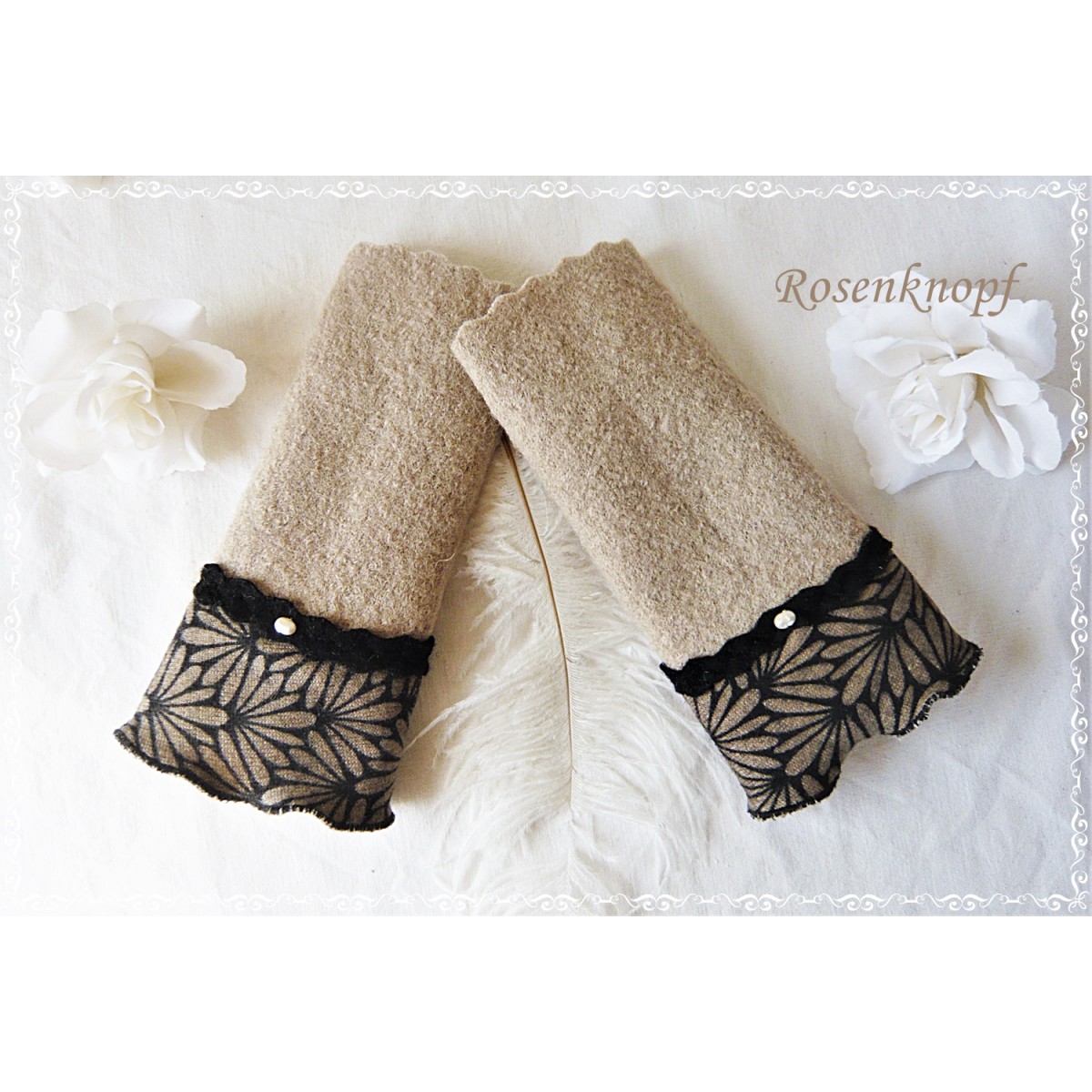 Zauberhaft romantische und kuschelwarme Walkstulpen die aus hochwertigem Walk in Sand/Beige gefertigt wurden.