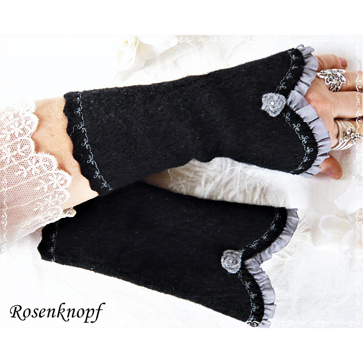 lll➤ Armstulpen, Pulswärmer aus Walk in Schwarz.