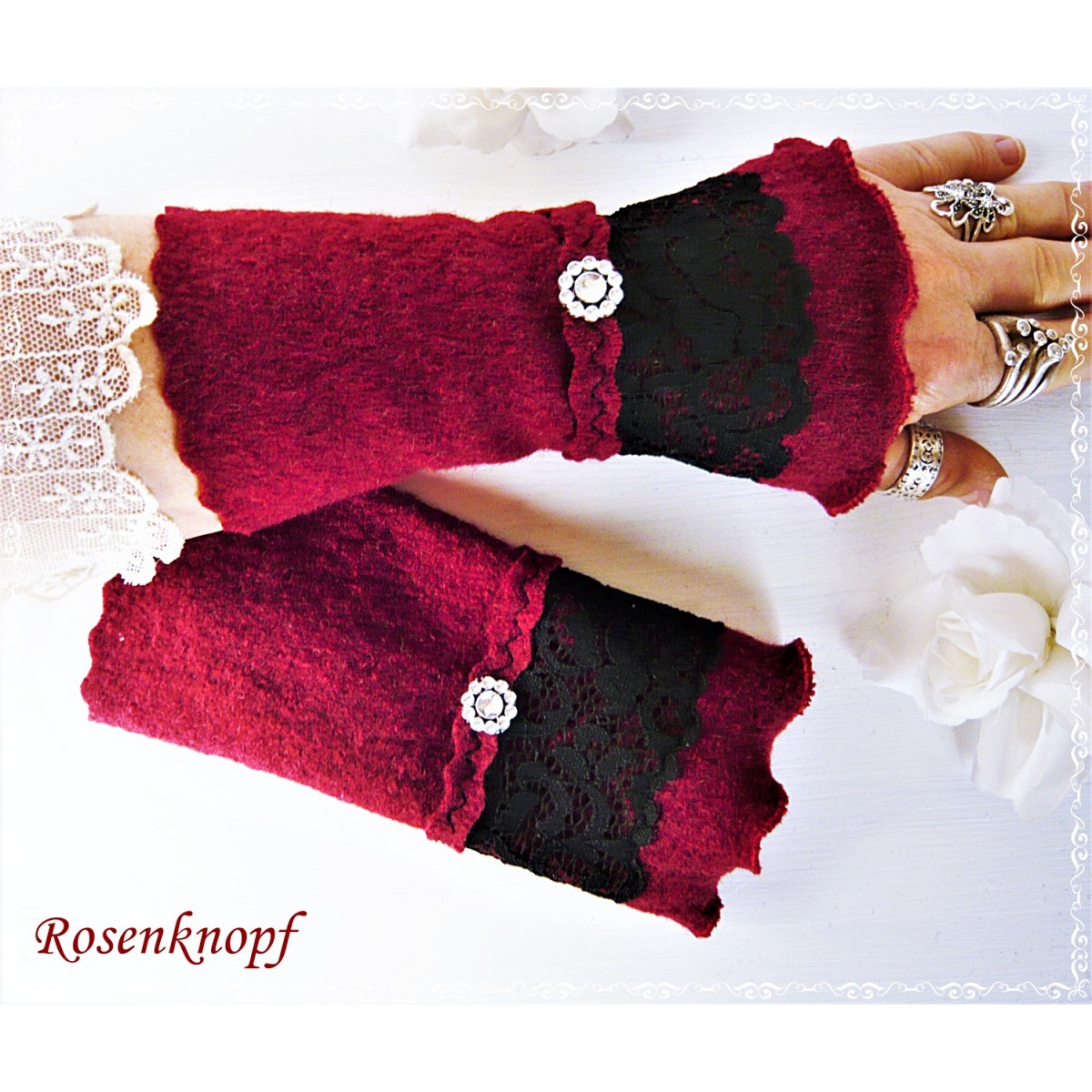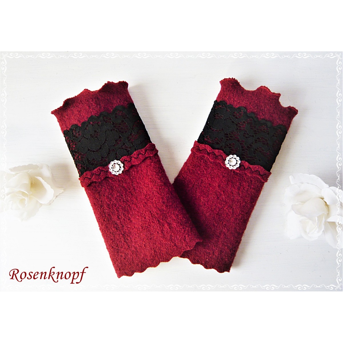 lll➤ Armstulpen/Pulswärmer aus Walk in Weinrot.