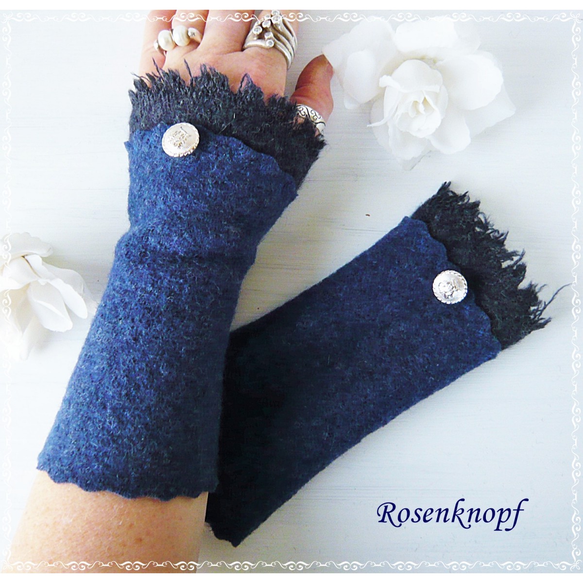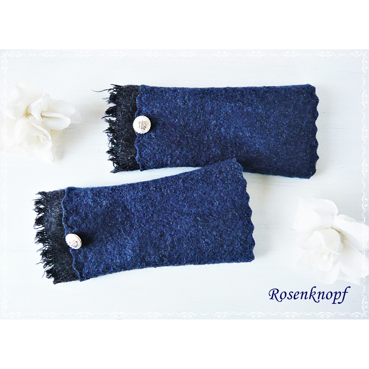 lll➤ Armstulpen /Pulswärmer aus Walk in Blau kombiniert mit Wollstoff in Nachtblau zu einer Hochzeit oder ein Fest.