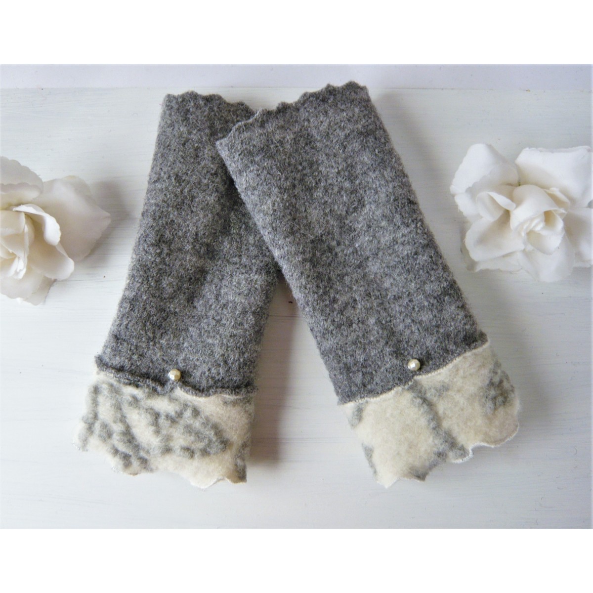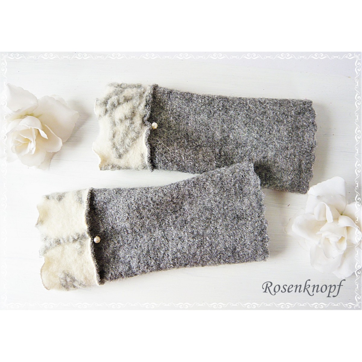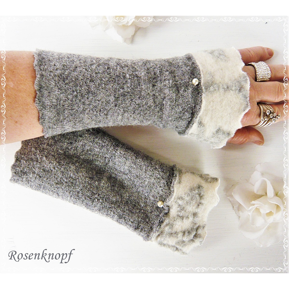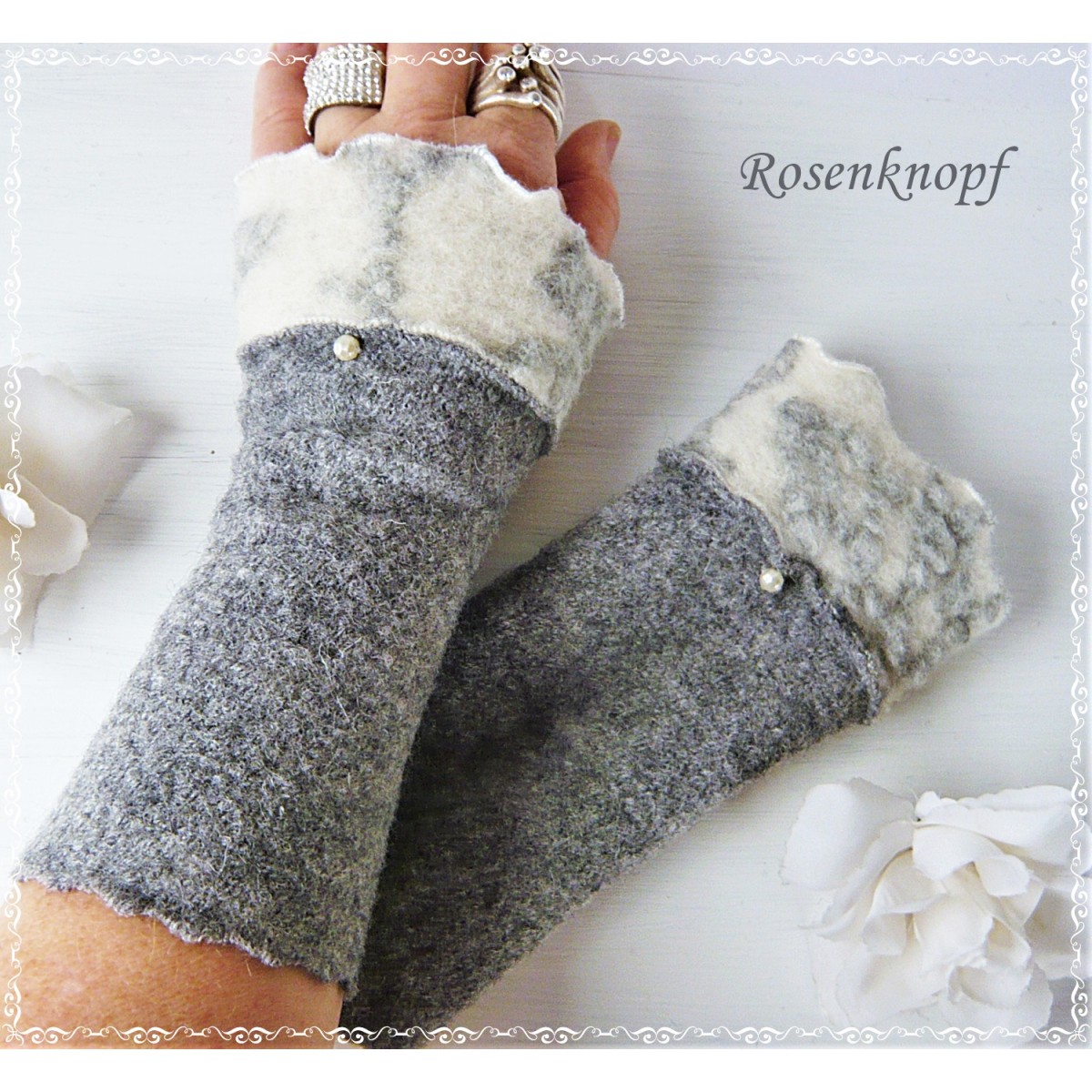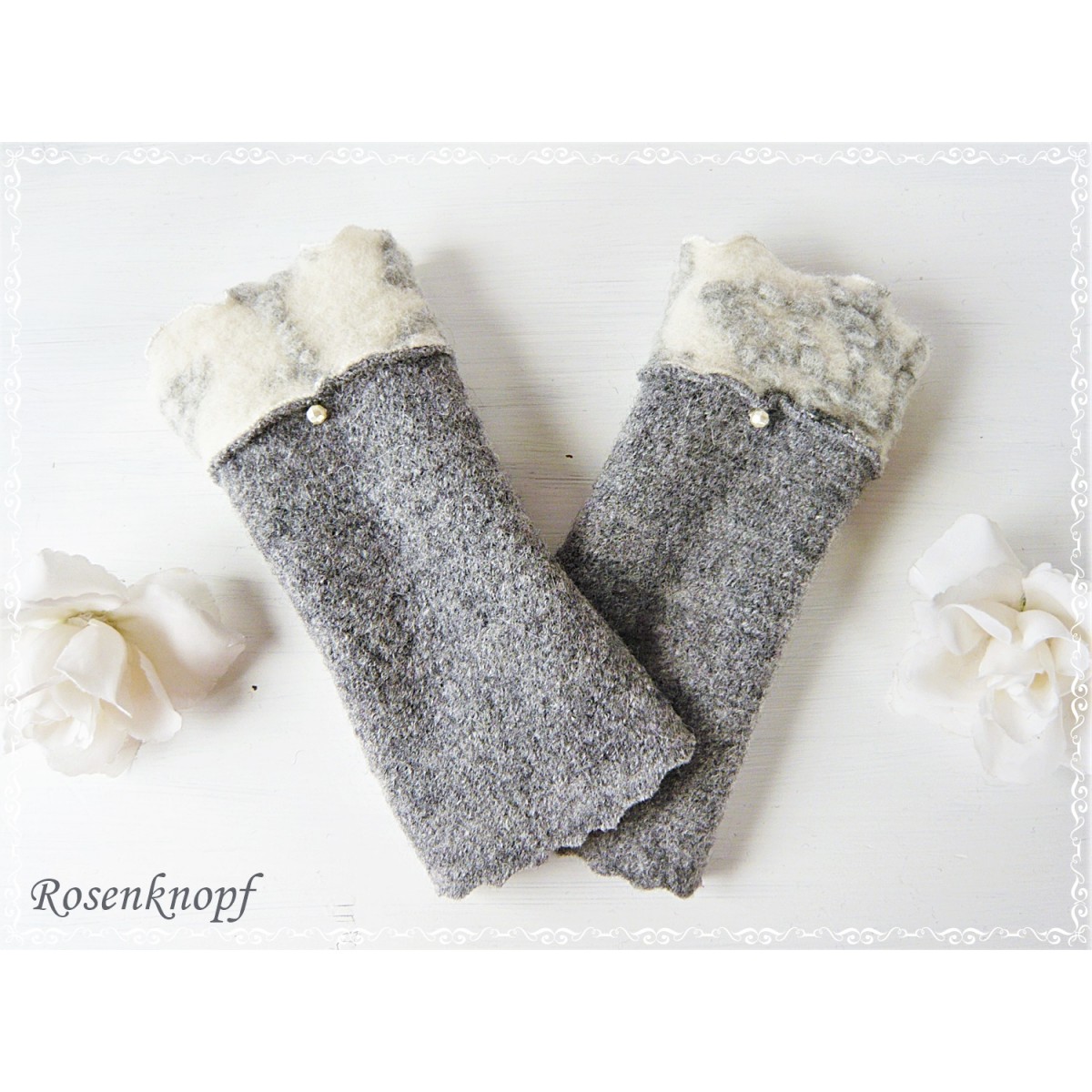 lll➤ Armstulpen, Pulswärmer aus Walk in Grau.