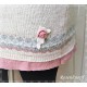 Das Strickmuster ist in den Farben Rosa und Grau gearbeitet und teilweise läuft ein silberfarbener Faden mit.