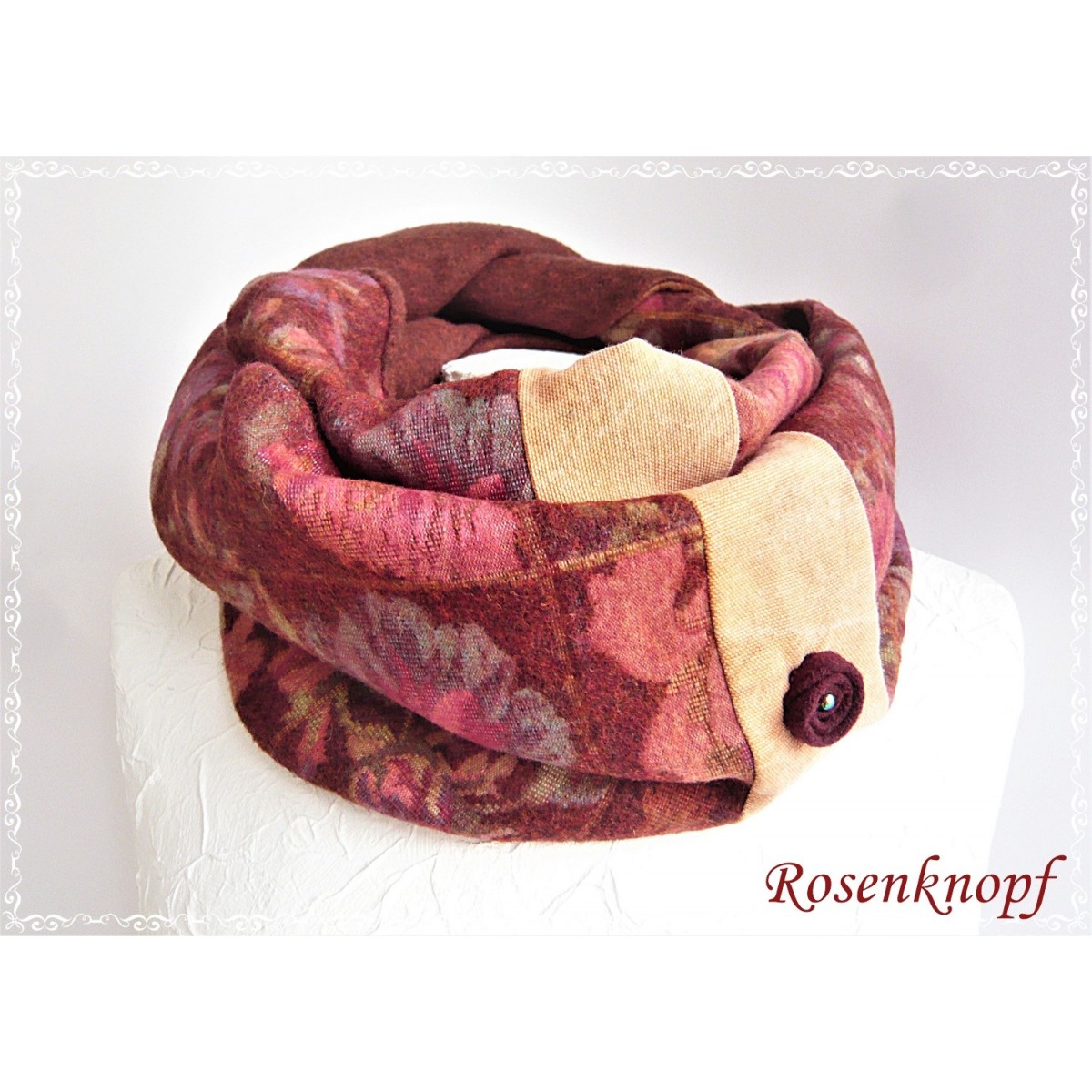Zeitloser Loopschal aus warmen Woll-Mischgewebe in tollen herbstlichen Farbtönen in Weinrot, Rotbraun, Rostorange und Braun.