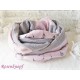 lll➤ Loop/Schal aus Double-Gaze Musselin in Alrosa und Grau mit Muster.
