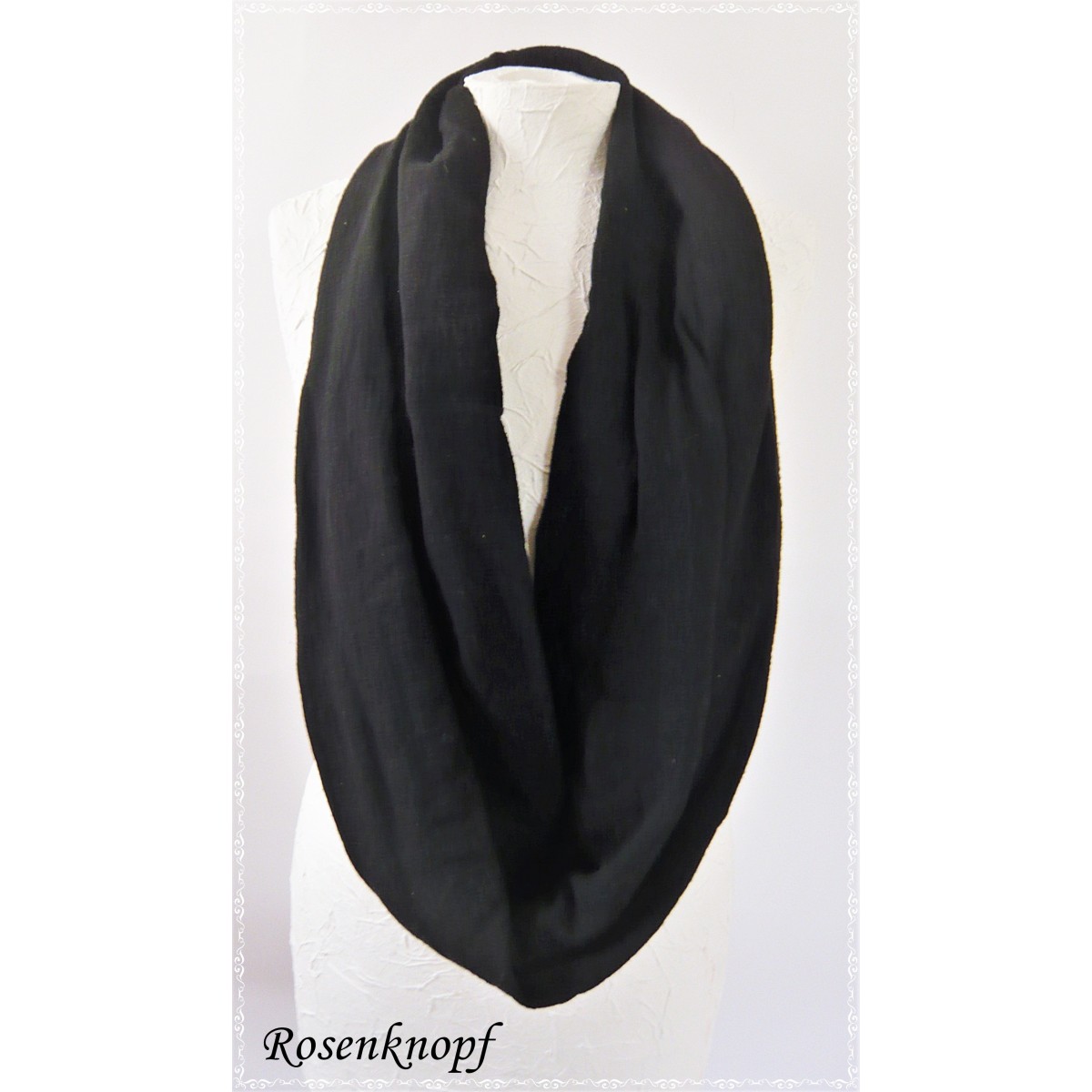 Zeitloser Loopschal der aus Double Gaze Musselin in Schwarz gefertigt wurde.