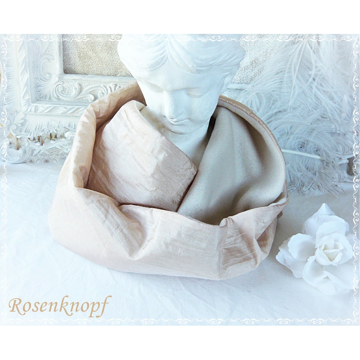 "LORENA" ist ein einzigartiger und eleganter Loopschal aus seidenglänzendem Gewebe.