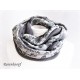 Dieser Rundschal ist zum Kreis geschlossen und so lang, dass er zweimal um den Hals geschlungen werden kann wodurch sich ein schöner Mustereffekt ergibt.