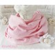 Einzigartiger und zeitloser Loopschal der aus Double Gaze Musselin in zartem Rosa mit feinem Kringelmuster in Weiß gefertigt wurde.
