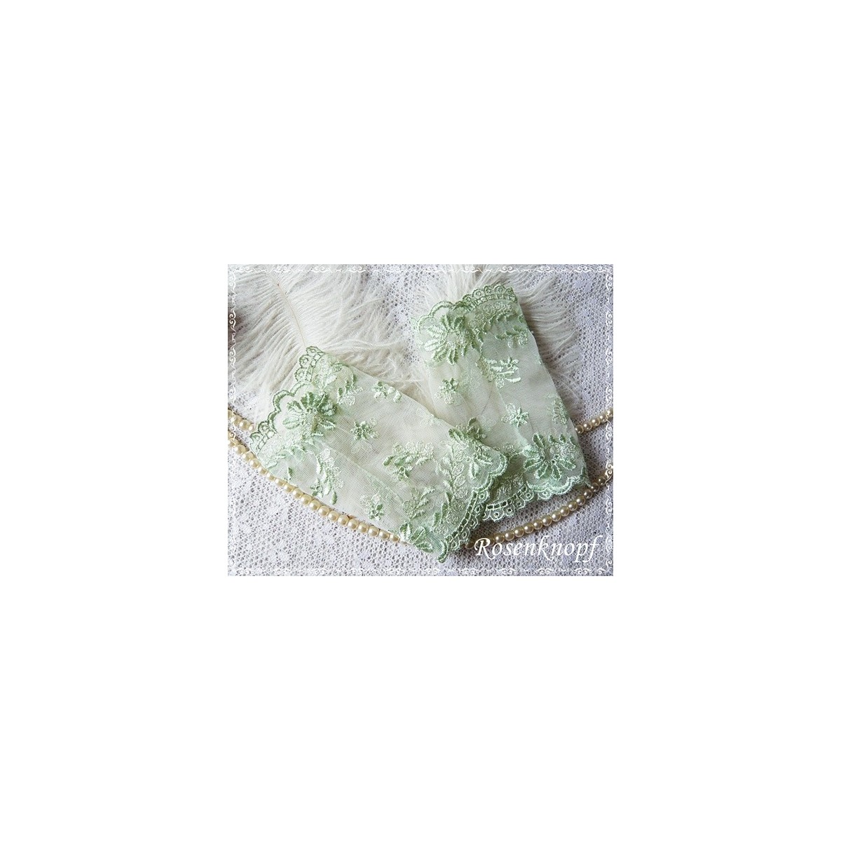 Elegante und feine Armstulpen/Spitzenstulpen aus elastischer Spitze in zartem Mint/Lindgrün.