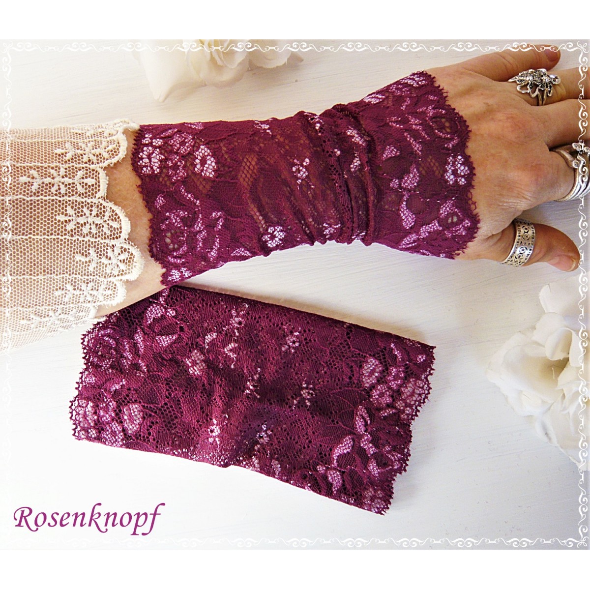 lll➤ Armstulpen/Pulswärmer in Bordeaux für eine Hochzeit, Standesamt oder ein Fest.
