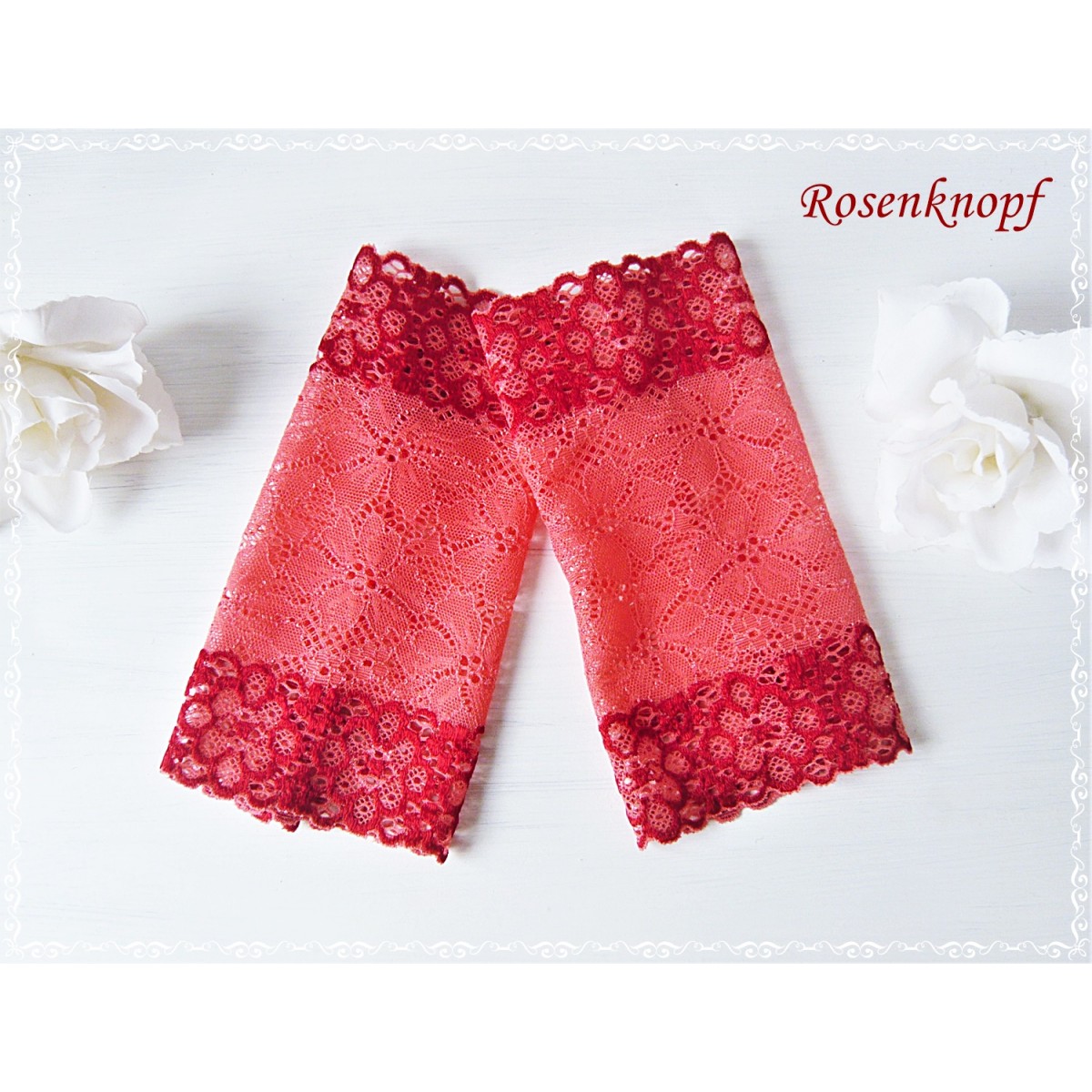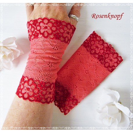 lll➤ Armstulpen/Pulswärmer aus Spitze in Koralle/Rrot zu einer Hochzeit, Standesamt oder ein Fest.