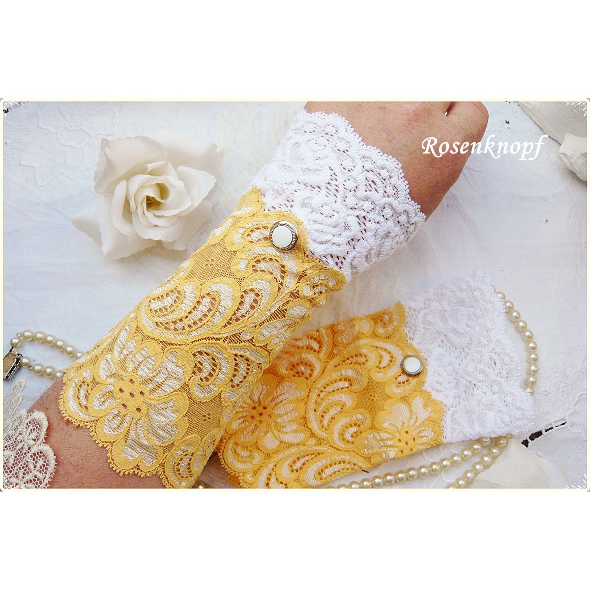 Sehr elegante, feine und einzigartige Spitzenstulpen in einer zarten und frischen Farbkombination.