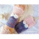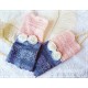 Verspielte Akzente erhalten die zweifarbigen Stulpen durch zwei aufgenähte weiße Tüllröschen mit rosa Wachsperlen in ihrer Mitte und durch Bogenkanten auf beiden Seiten.