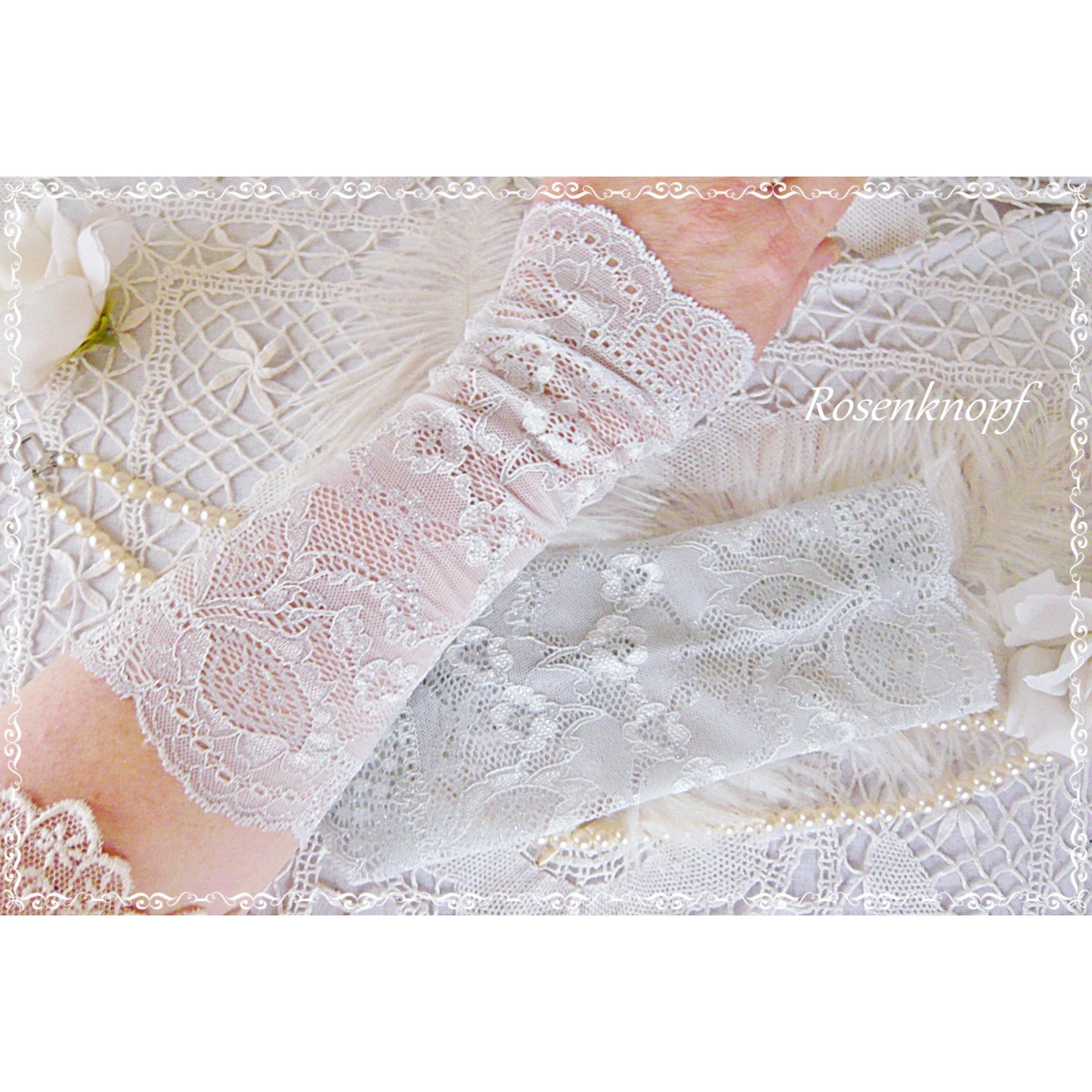 Akzente erhalten die zeitlosen Stulpen aus floraler Spitze durch hübsche Bogenkanten auf beiden Seiten die Hand und Arm schmeicheln.