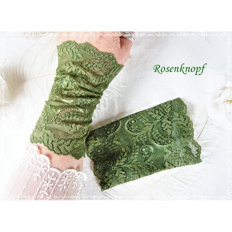 Elegante und feine Spitzenstulpen aus elastischer, grasgrüner Spitze.