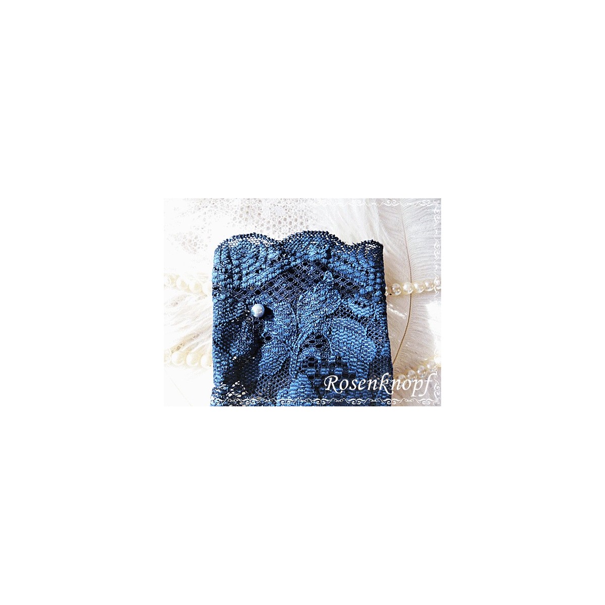 Feine, elastische Spitzenstulpen in Dunkelblau.