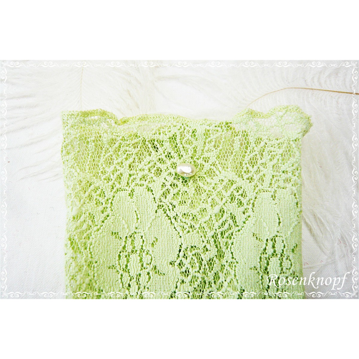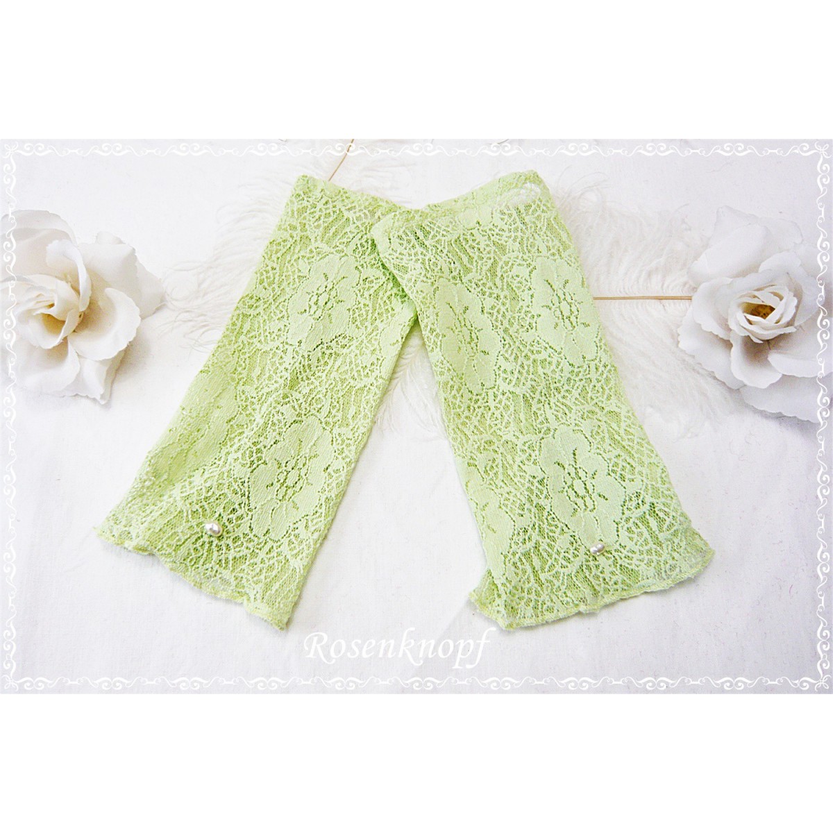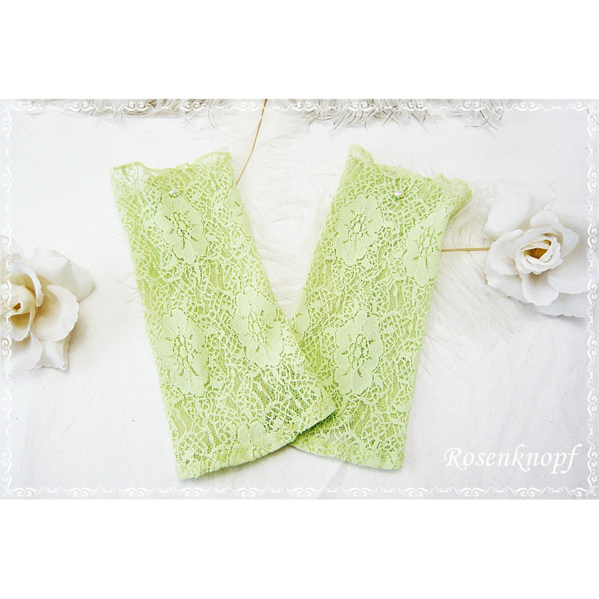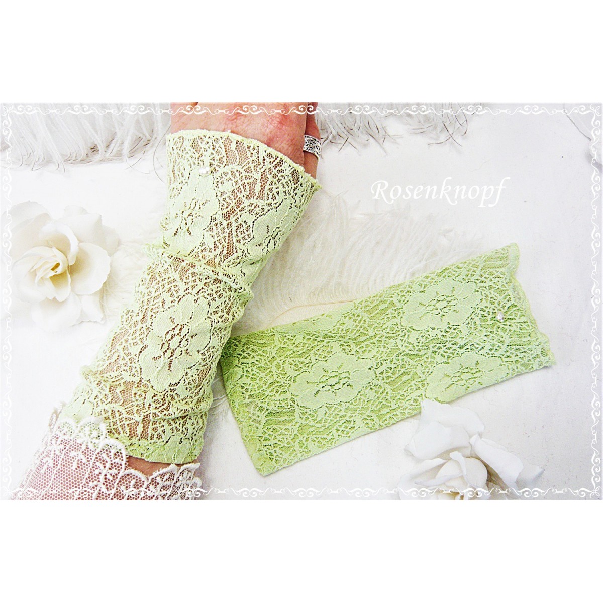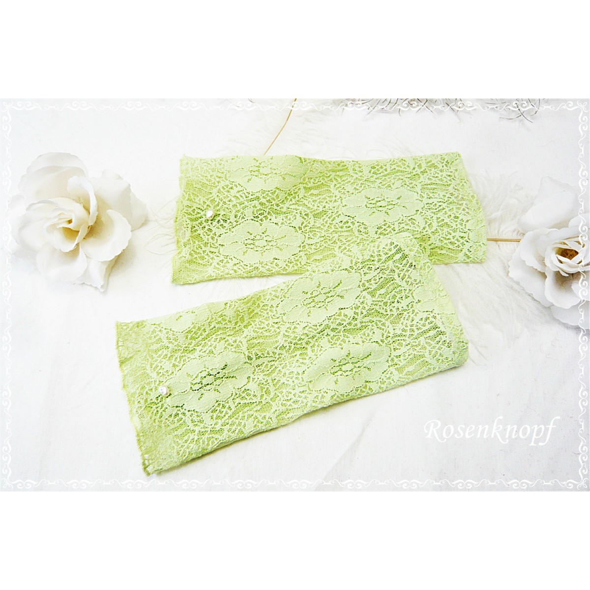 Einzigartige Spitzenstulpen aus elastischer Spitze mit floralem Muster in zartem Lindgrün.
