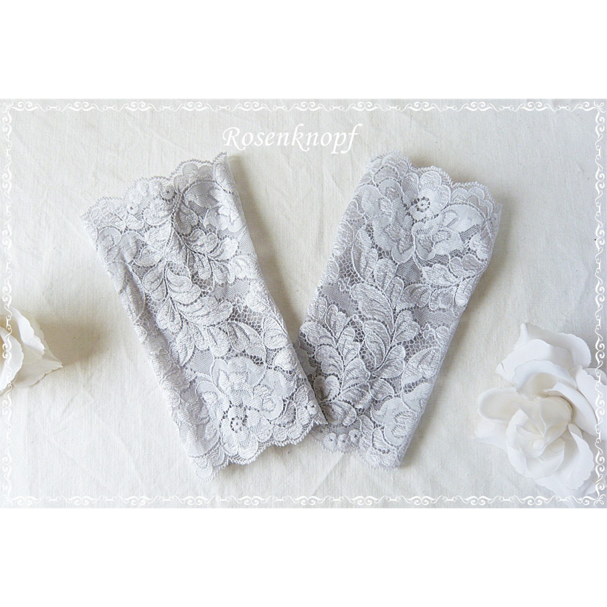 Lange und feine Spitzenstulpen aus elastischer, sehr eleganter Spitze in zartem Silbergrau.