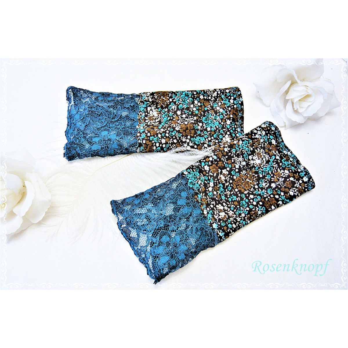 lll➤ Armstulpen/Pulswärmer aus Jersey in Braun, Blau und Ivory mit Blümchenprint zur Hochzeit, Standesamt oder ein Fest.